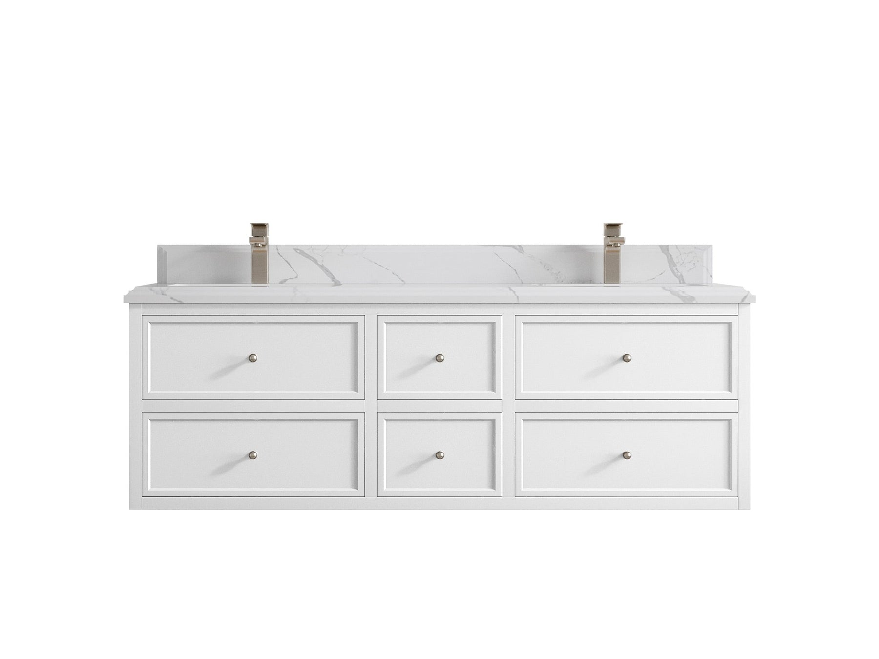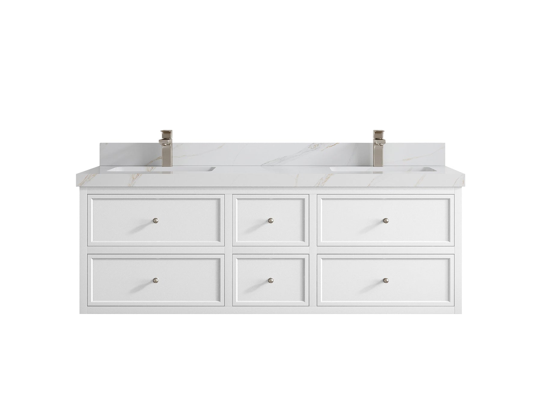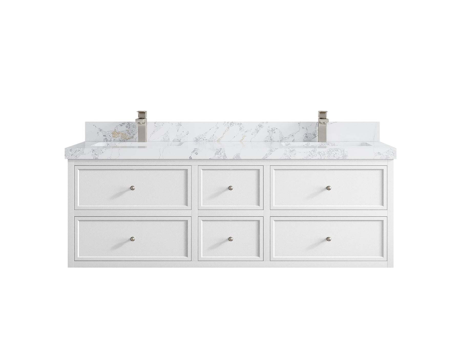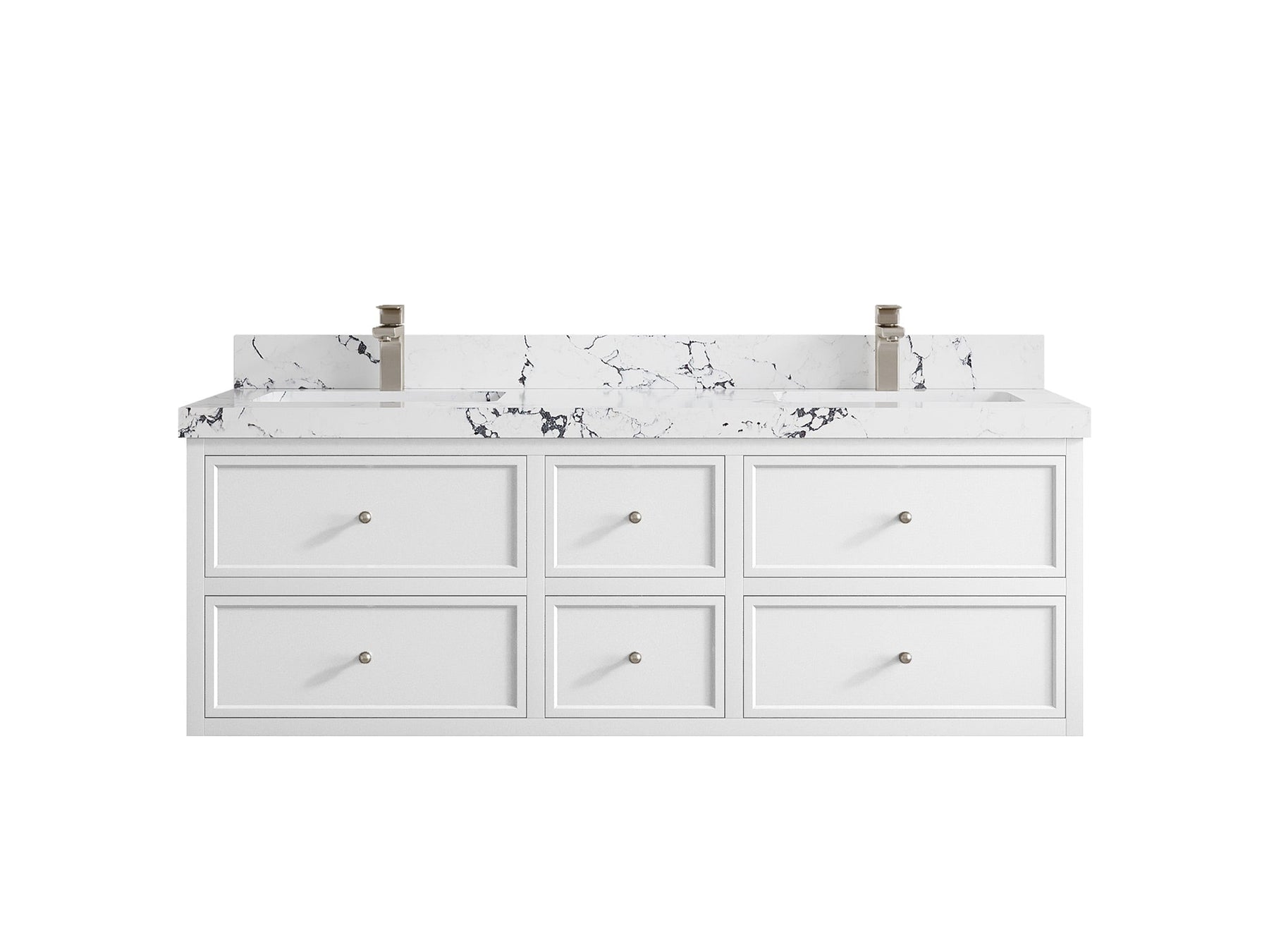 Faucet Hole(S): Comes with Single Faucet, 8 (in.) Widespread Faucet, Wall mount Faucets - Only Available for White Quartz and Carrara Quartz. (PLEASE ADD THIS CONFIGURATION UNDER COUNTERTOPS SECTION )