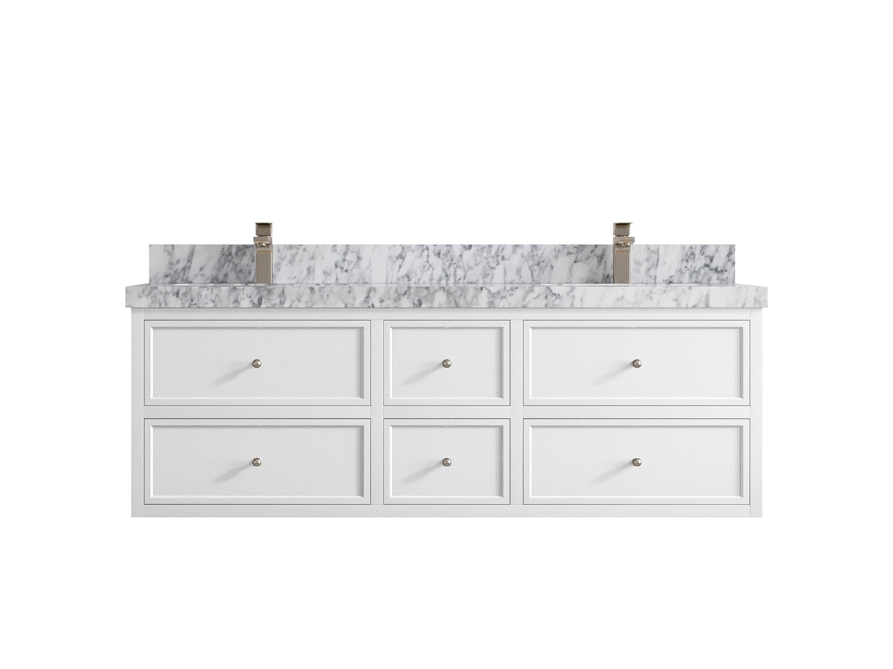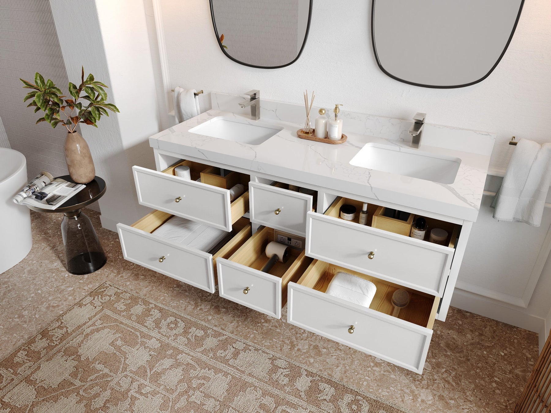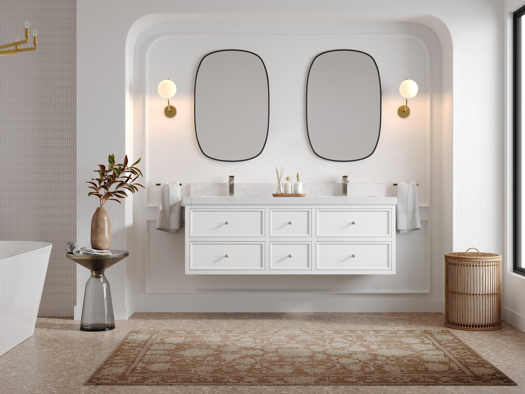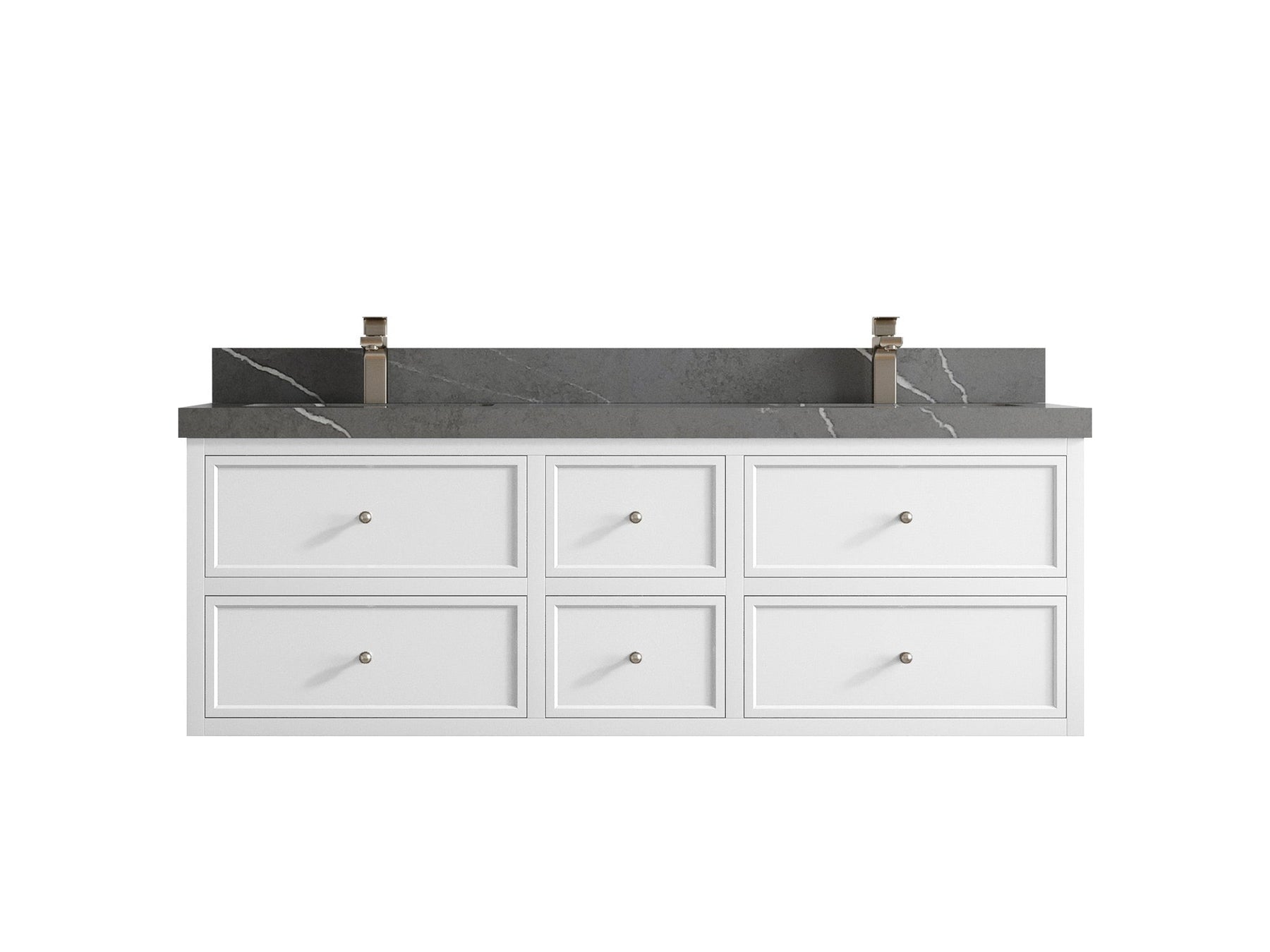 Vanity Countertops options: For Calacatta Laza Quartz, Empira White Quartz, Pure White Quartz we have 2 options Straight-Mitered Edge & Double Cove Edge, For Calacatta Black Quartz, Calacatta Gold Quartz, Calacatta Nuvo Quartz, Carrara Marble, Carrara Quartz, Pearl Light Gray Quartz, Piatra Gray Quartz, Venatino Quartz, and Light Concrete Gray Quartz we only have Straight - Mitered Edge option.