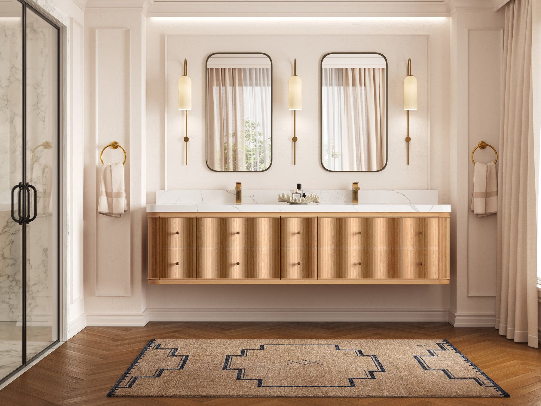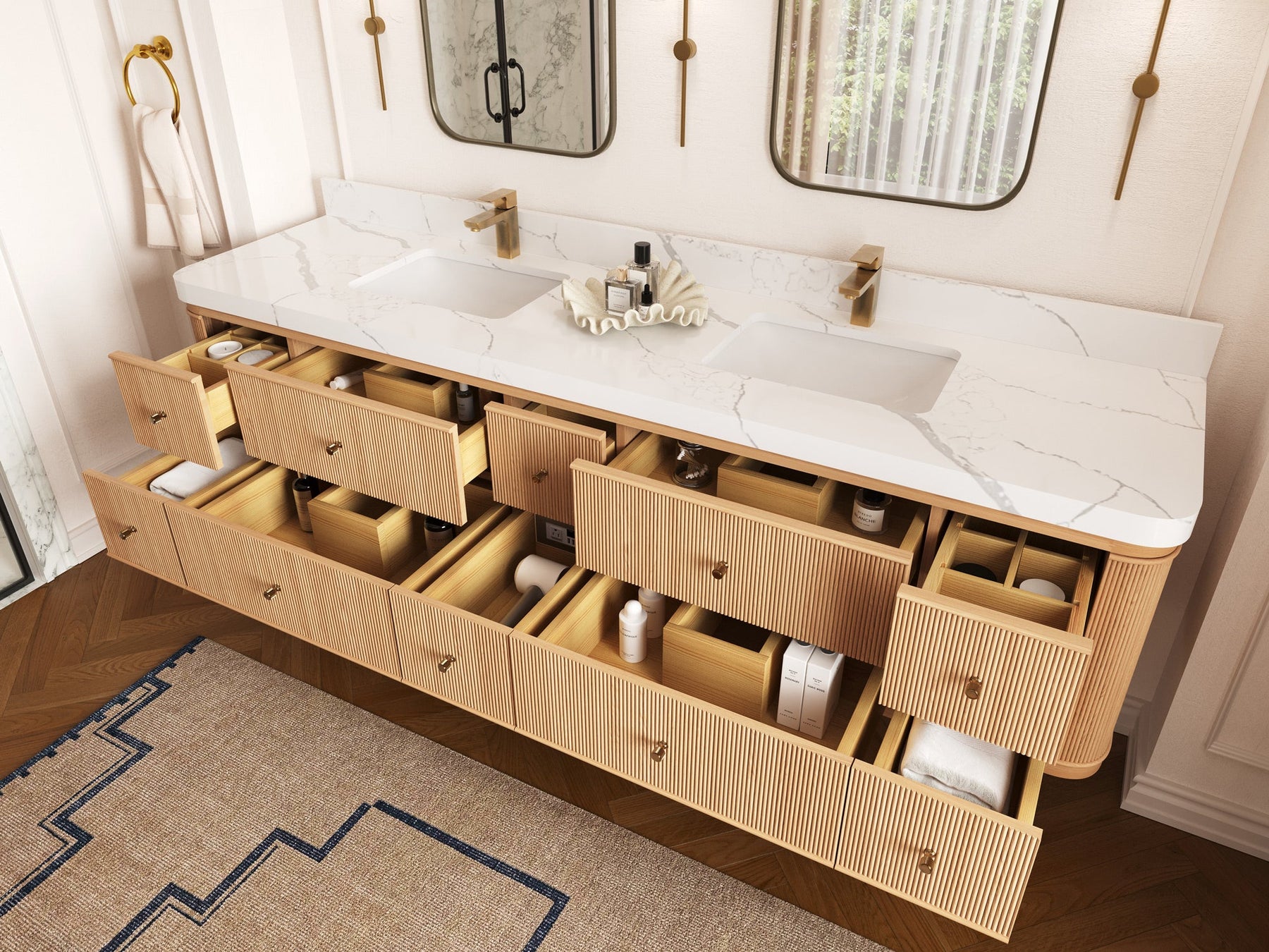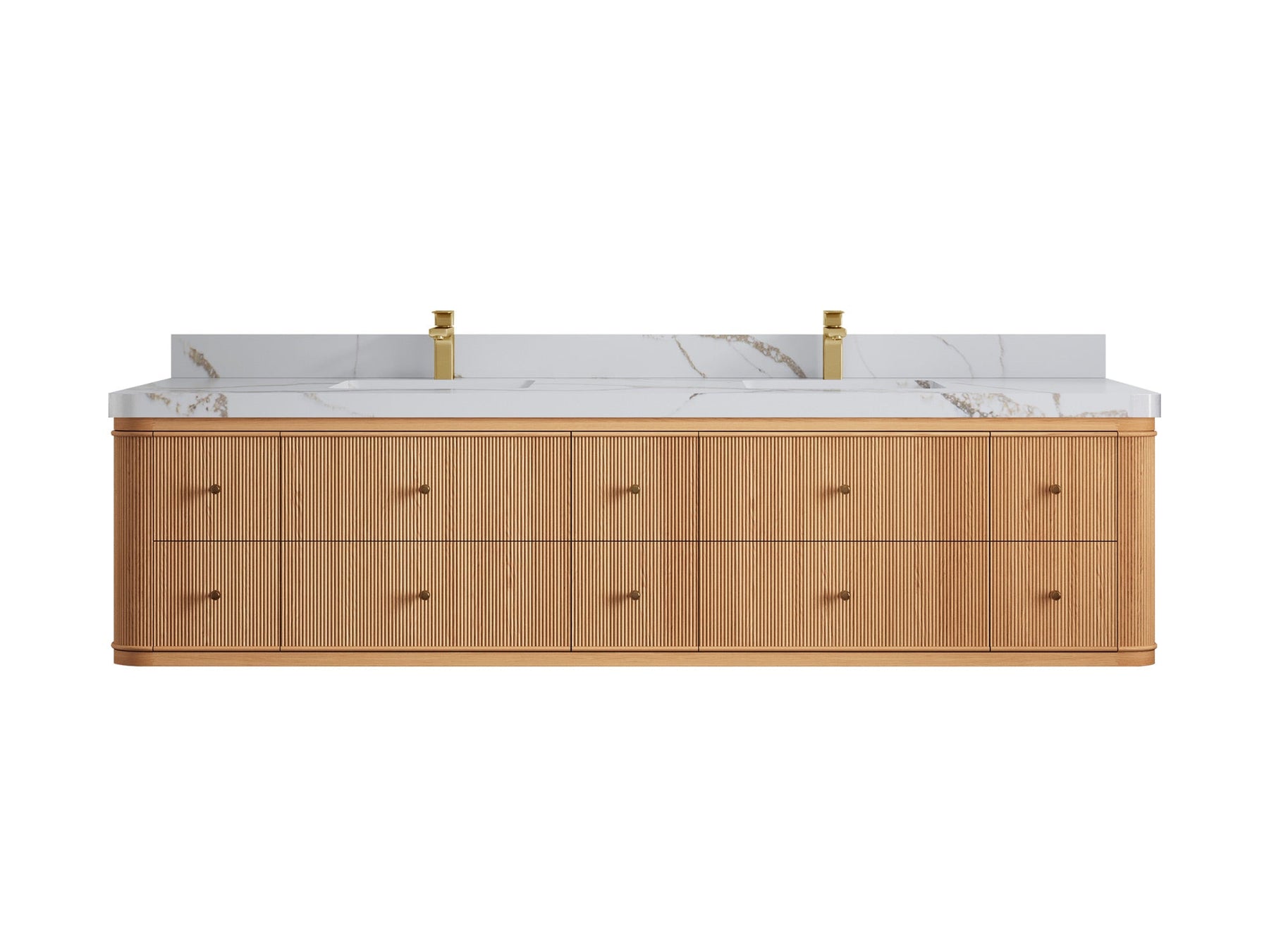 Vanity Countertops options: For Calacatta Laza Quartz, Empira White Quartz, Pure White Quartz, Palissandro Quartz, Calacatta Nuvo Quartz, Carrara Quartz, Calacatta Gold Quartz, Calacatta Sienna Quartz we have Straight - Mitered Edge option.