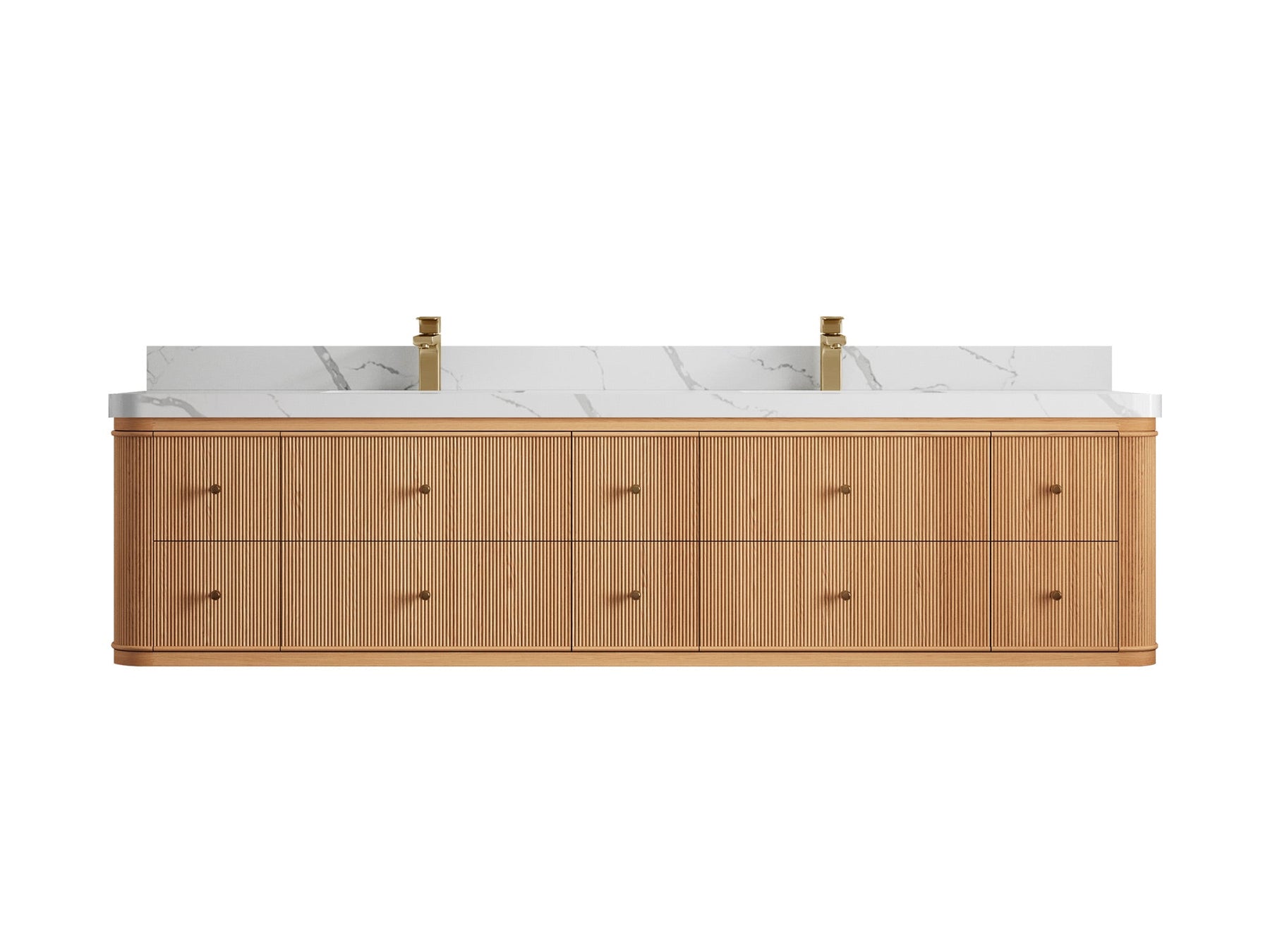 Faucet Hole(S): Comes with Single Faucet, 8 (in.) Widespread Faucet, Wall mount Faucets - Only Available for White Quartz and Carrara Quartz. (PLEASE ADD THIS CONFIGURATION UNDER COUNTERTOPS SECTION )