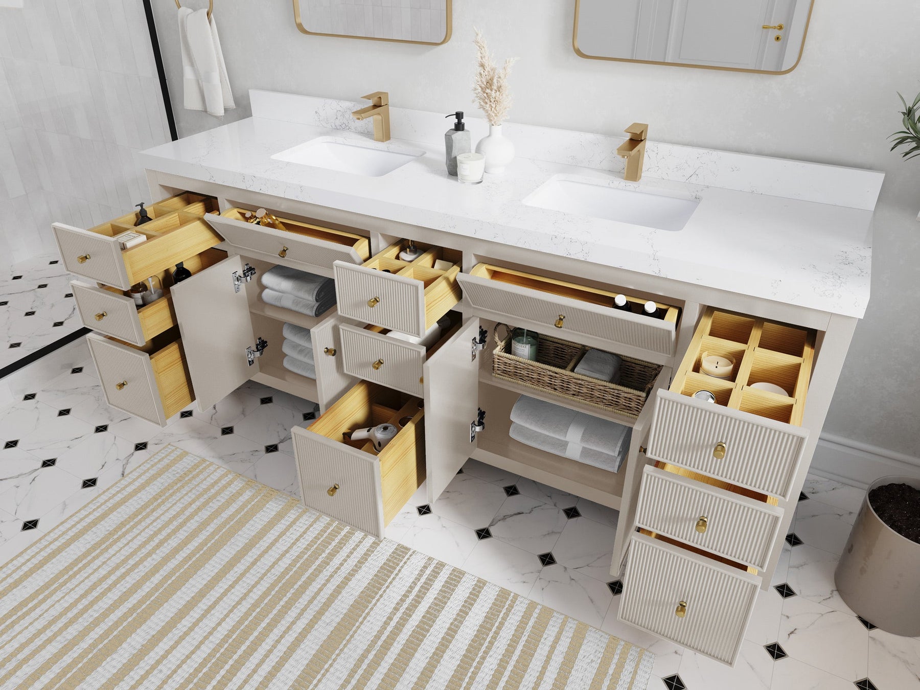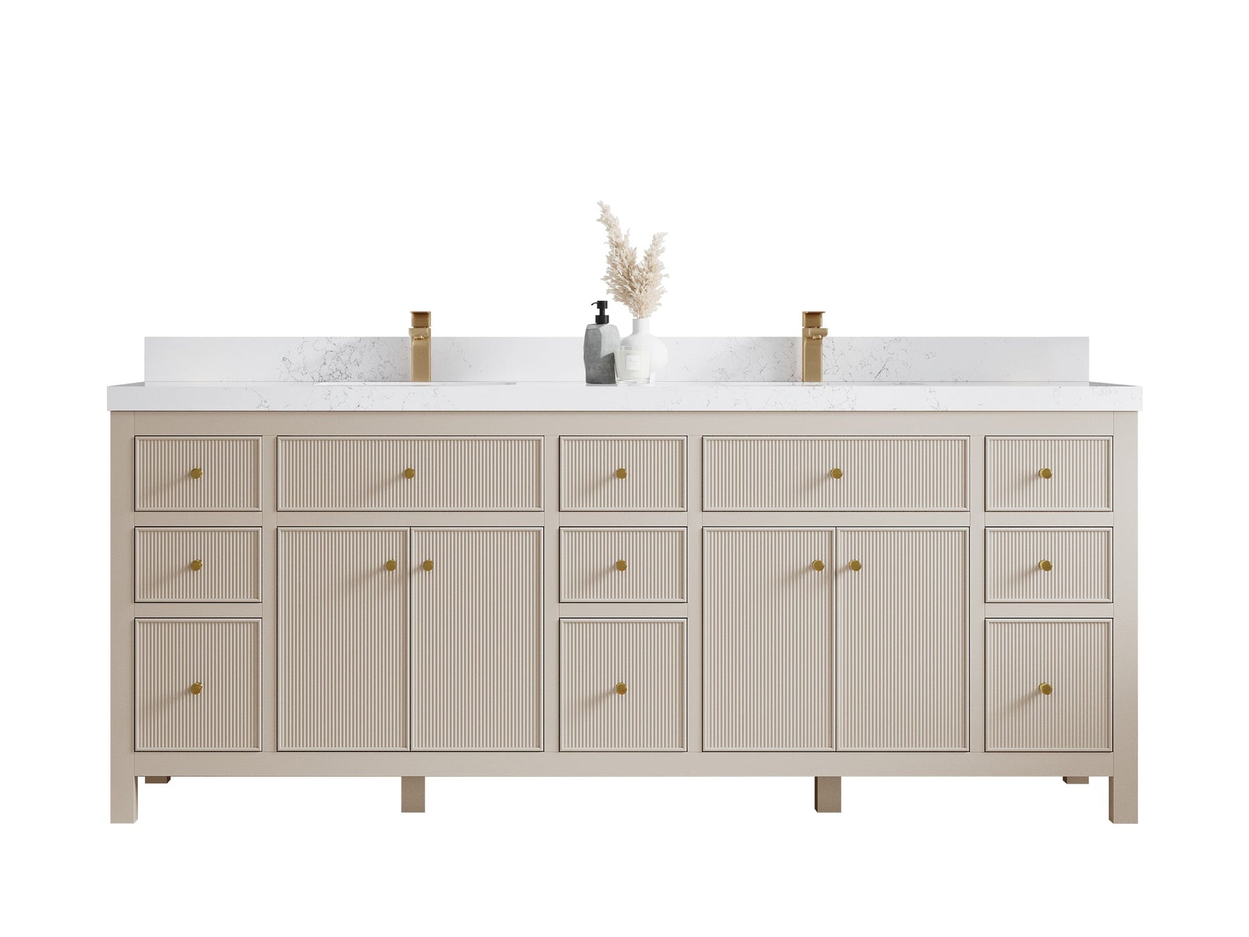 Vanity Countertops options: For Calacatta Laza Quartz, Empira White Quartz, Pure White Quartz we have 2 options Straight-Mitered Edge & Double Cove Edge, For Calacatta Black Quartz, Calacatta Gold Quartz, Calacatta Nuvo Quartz, Carrara Marble, Carrara Quartz, Pearl Light Gray Quartz, Piatra Gray Quartz, Venatino Quartz, and Light Concrete Gray Quartz we only have Straight - Mitered Edge option.