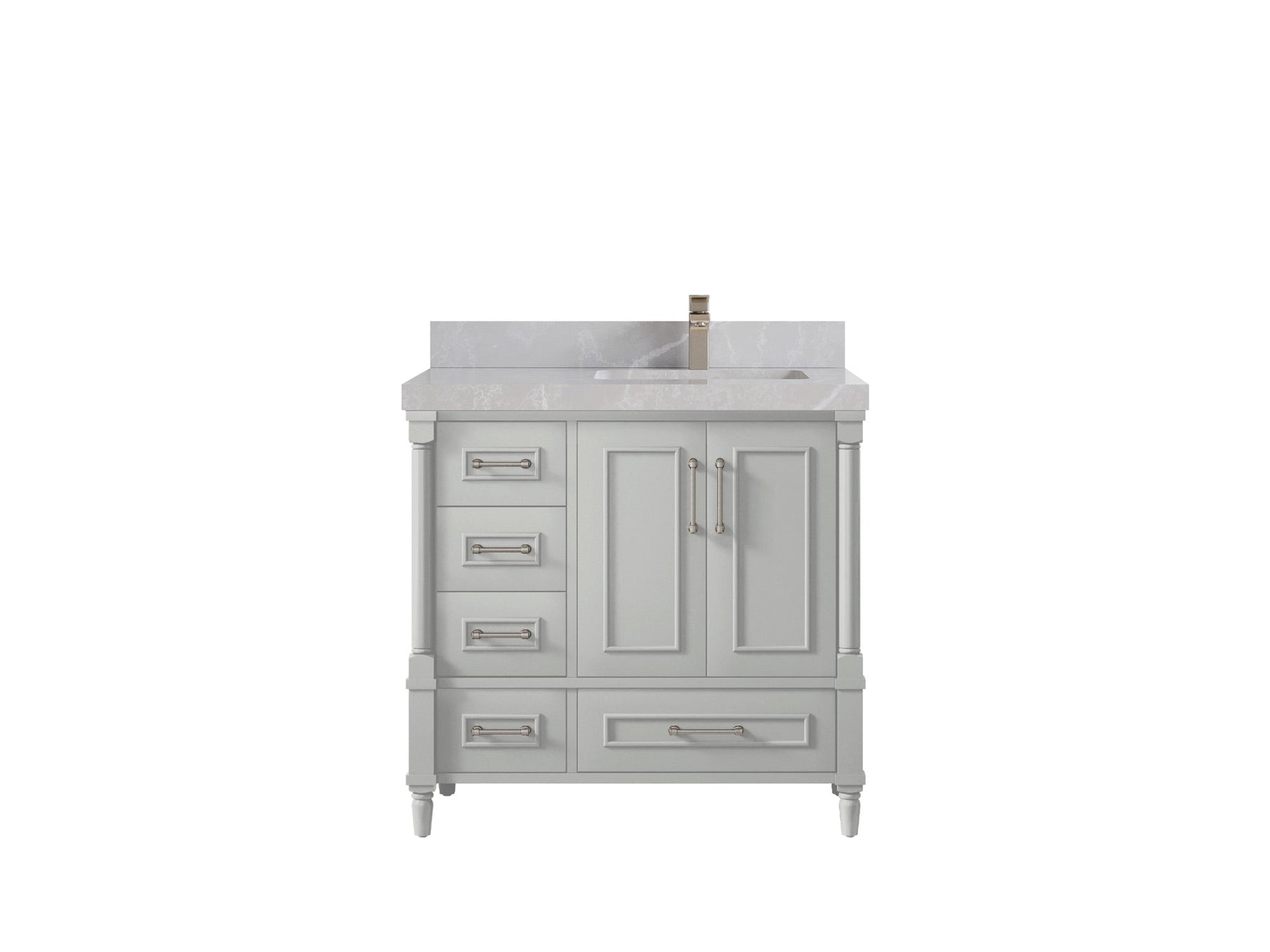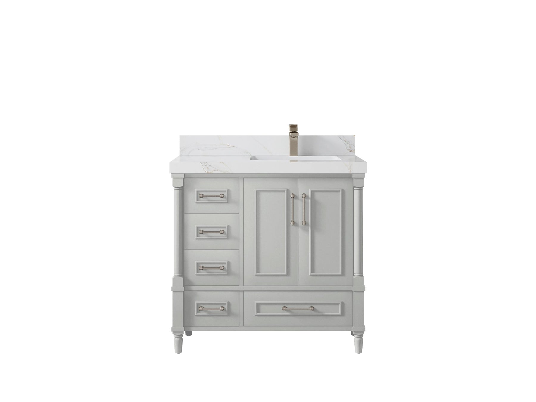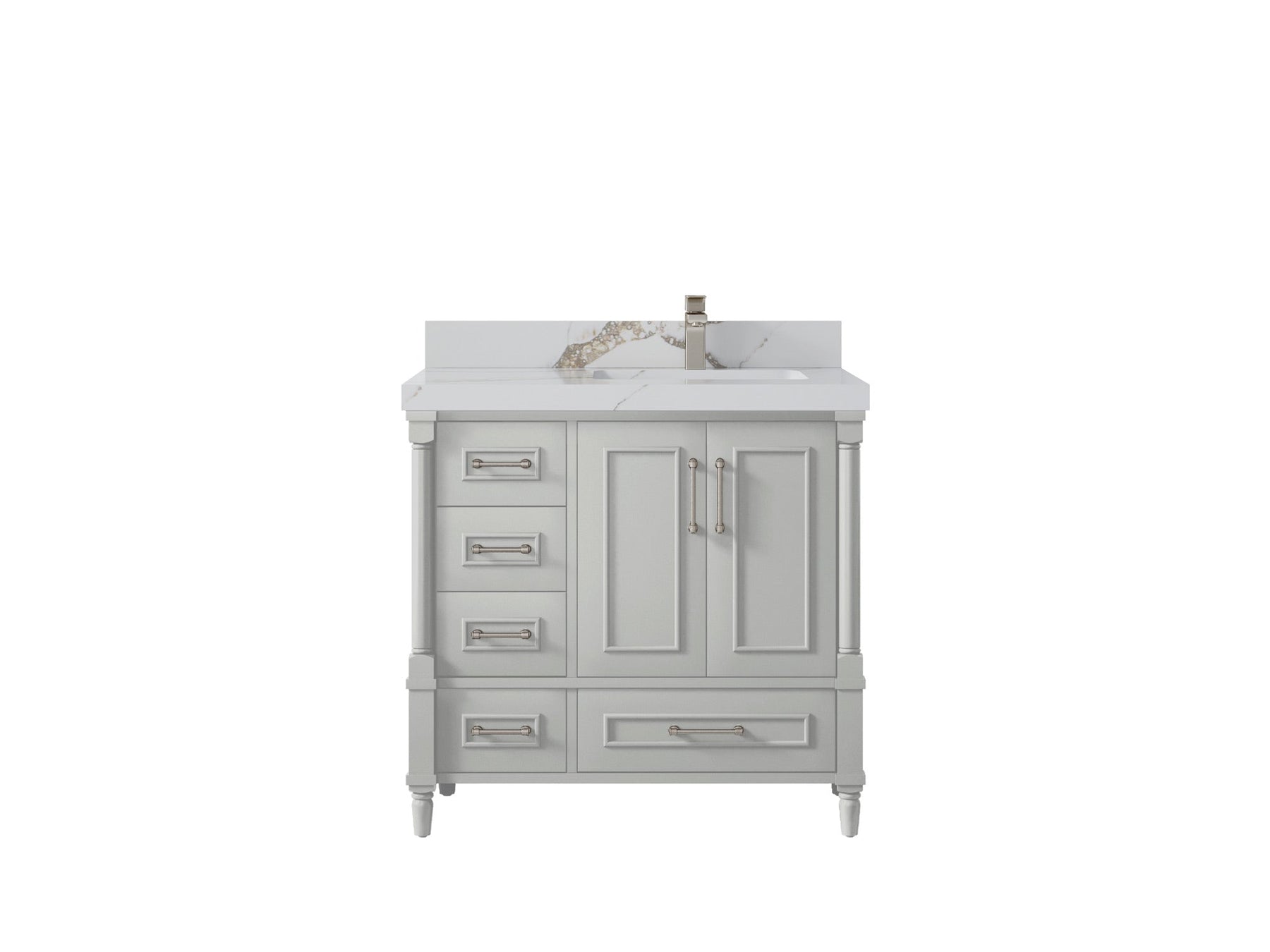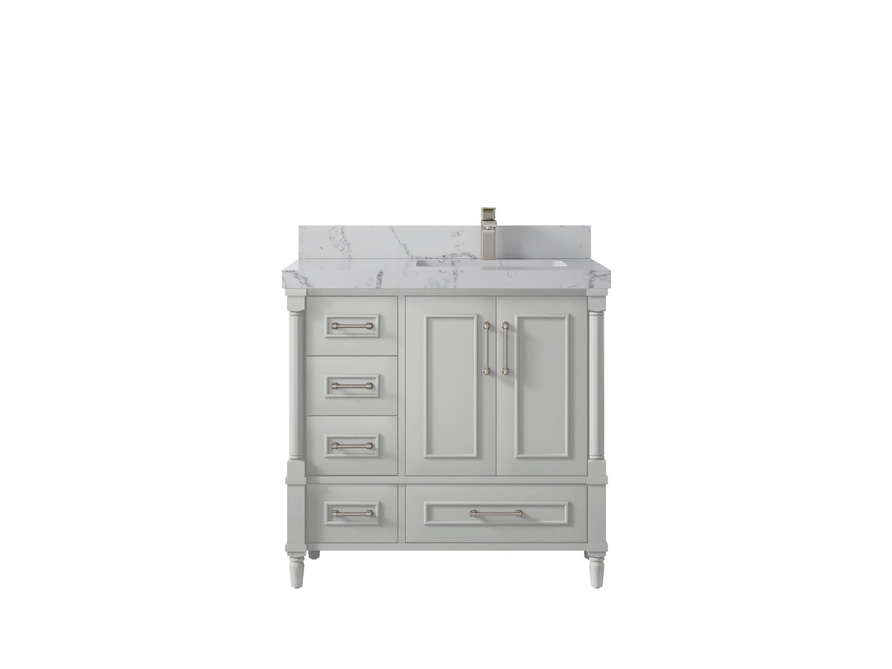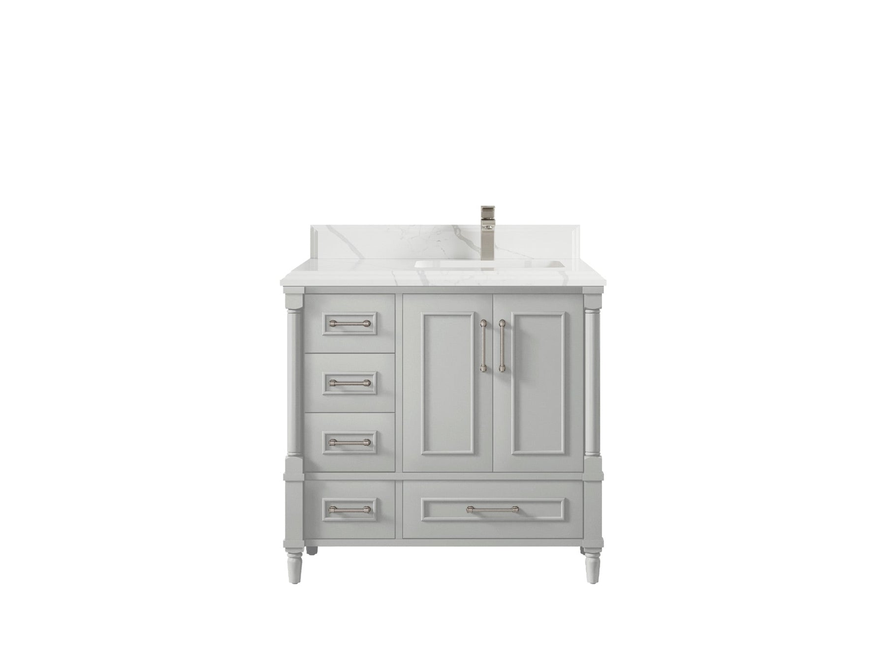 Faucet Hole(S): Comes with Single Faucet, 8 (in.) Widespread Faucet, Wall mount Faucets - Only Available for White Quartz and Carrara Quartz. (PLEASE ADD THIS CONFIGURATION UNDER COUNTERTOPS SECTION )