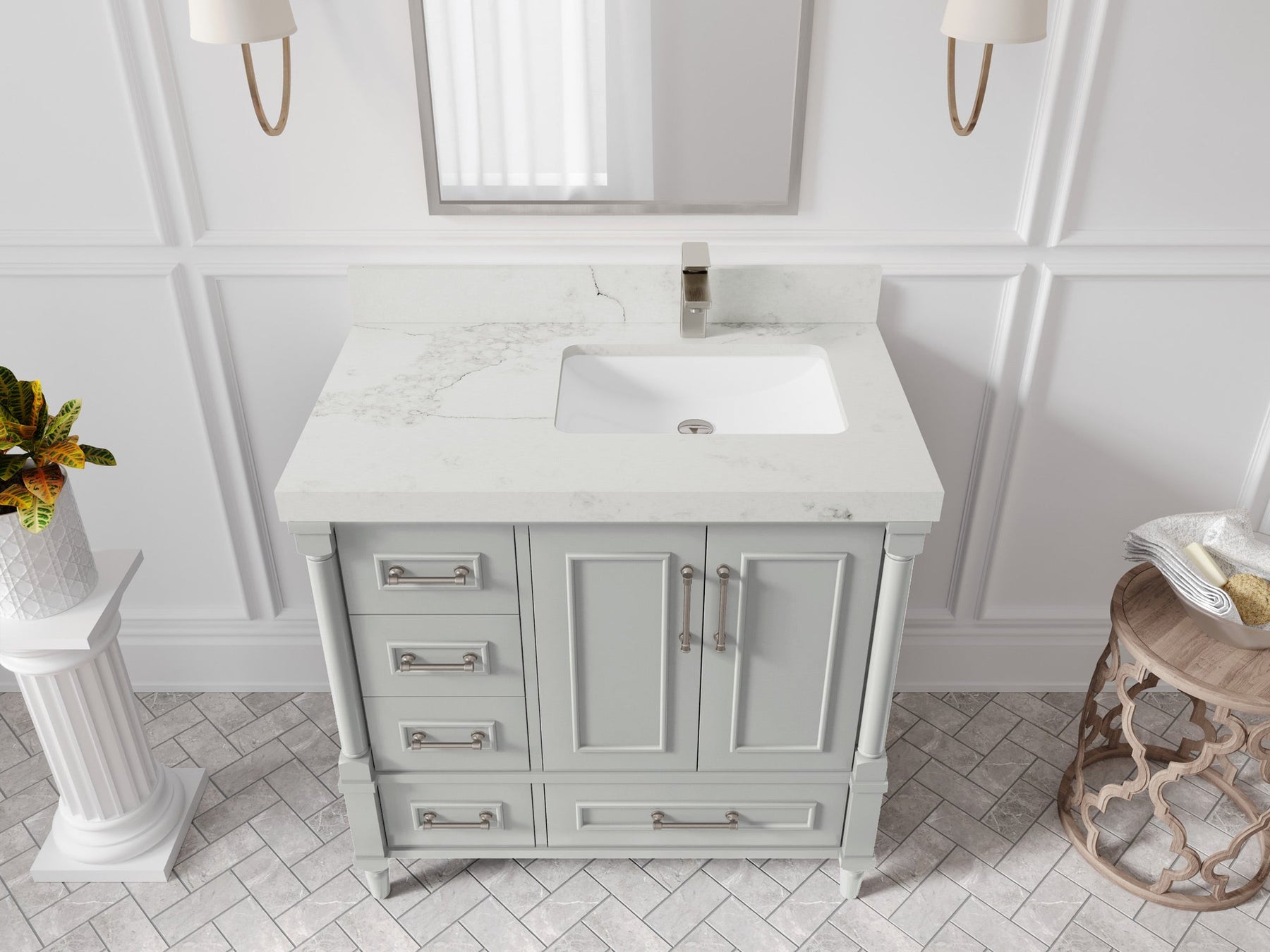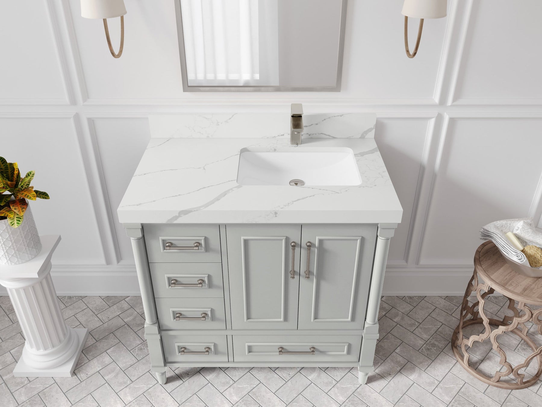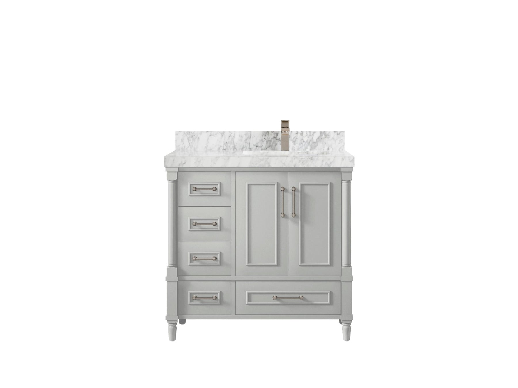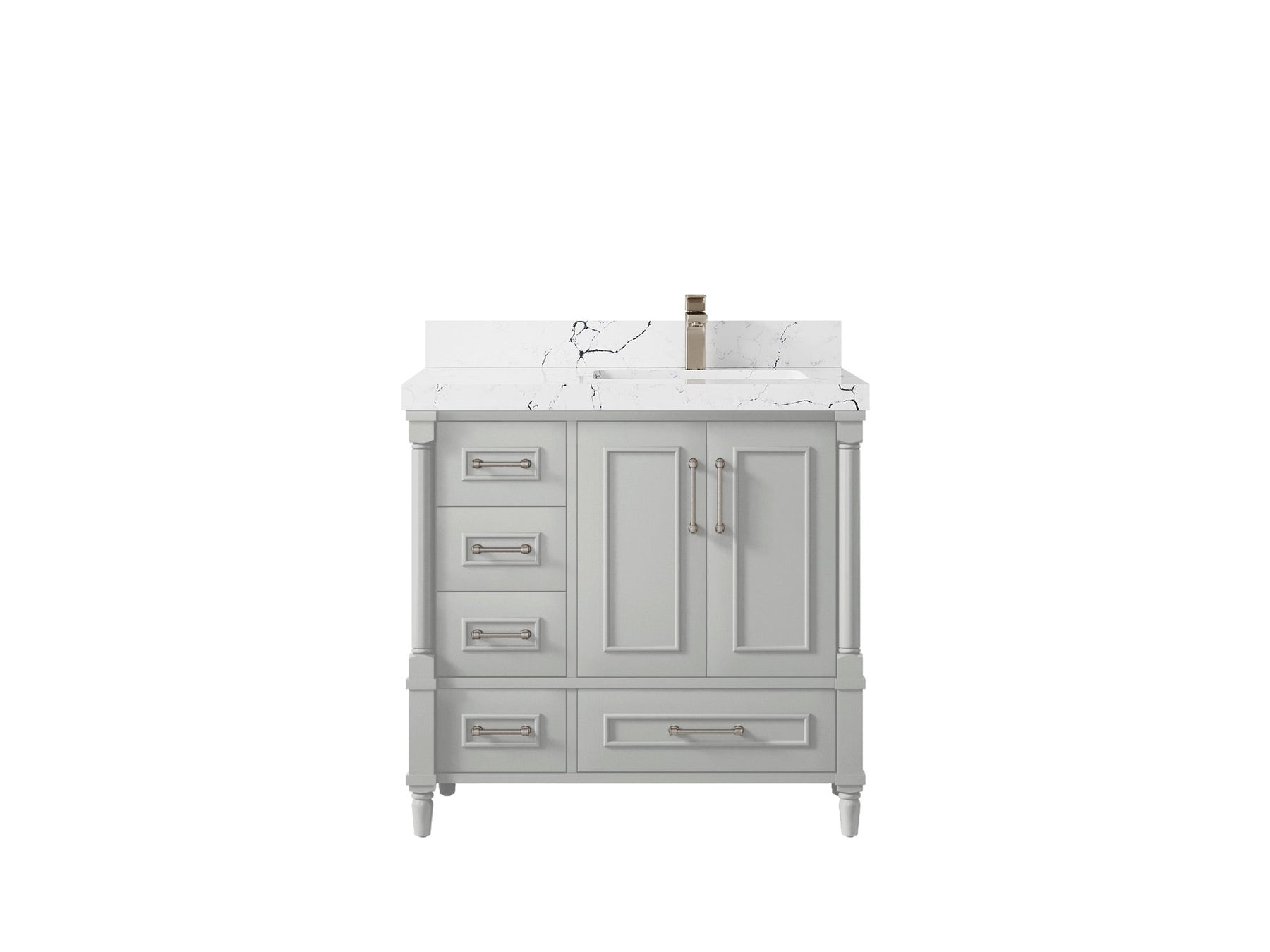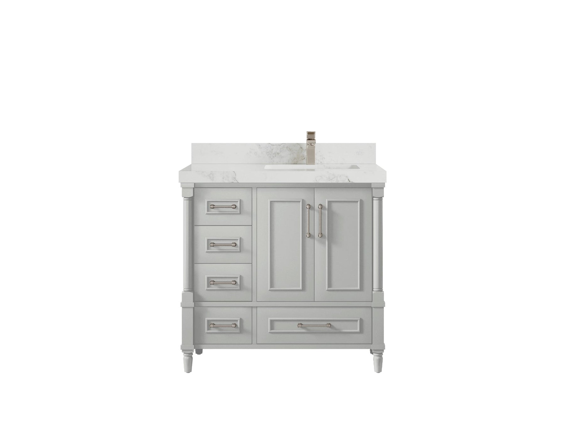 Faucet Hole(S): Comes with Single Faucet, 8 (in.) Widespread Faucet, Wall mount Faucets - Only Available for White Quartz and Carrara Quartz. (PLEASE ADD THIS CONFIGURATION UNDER COUNTERTOPS SECTION )