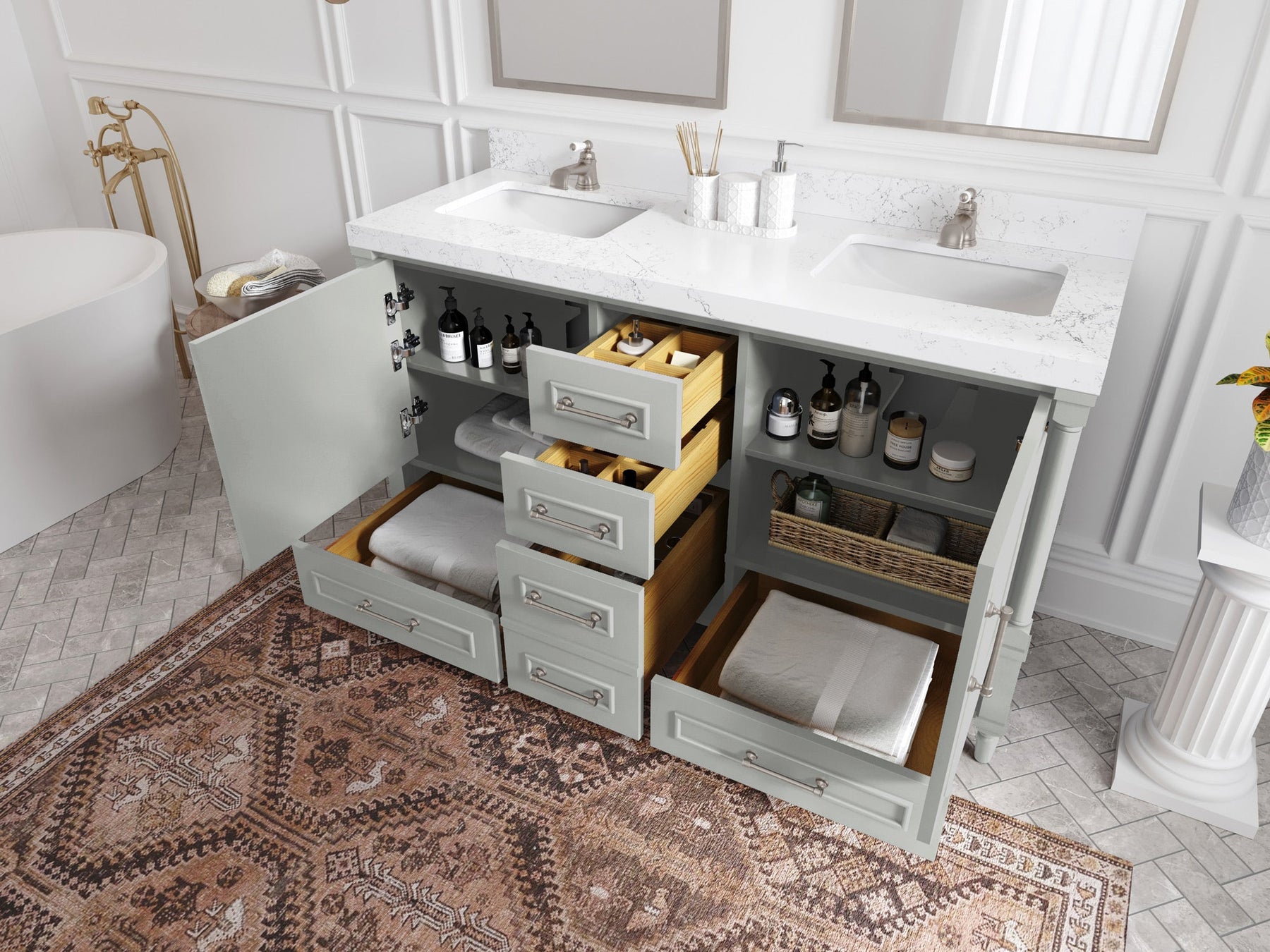 4. Ample Storage Space - The Aberdeen Vanity comes with spacious cabinet space to store all your bathroom essentials, including towels, toiletries, and more. The soft-close drawers and doors ensure that you can access your items easily and quietly.