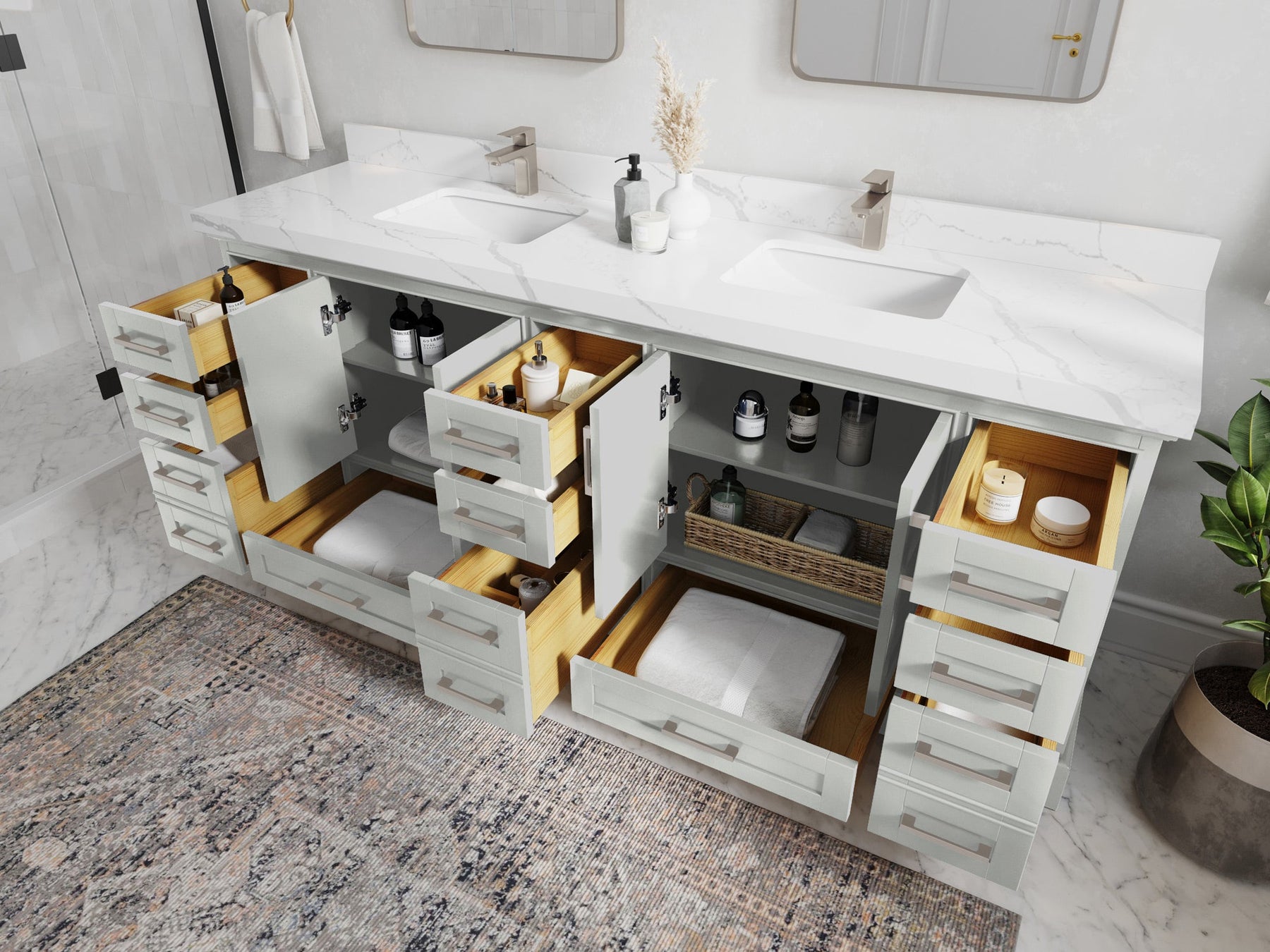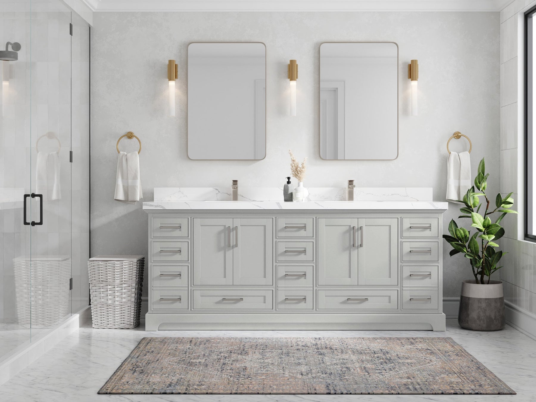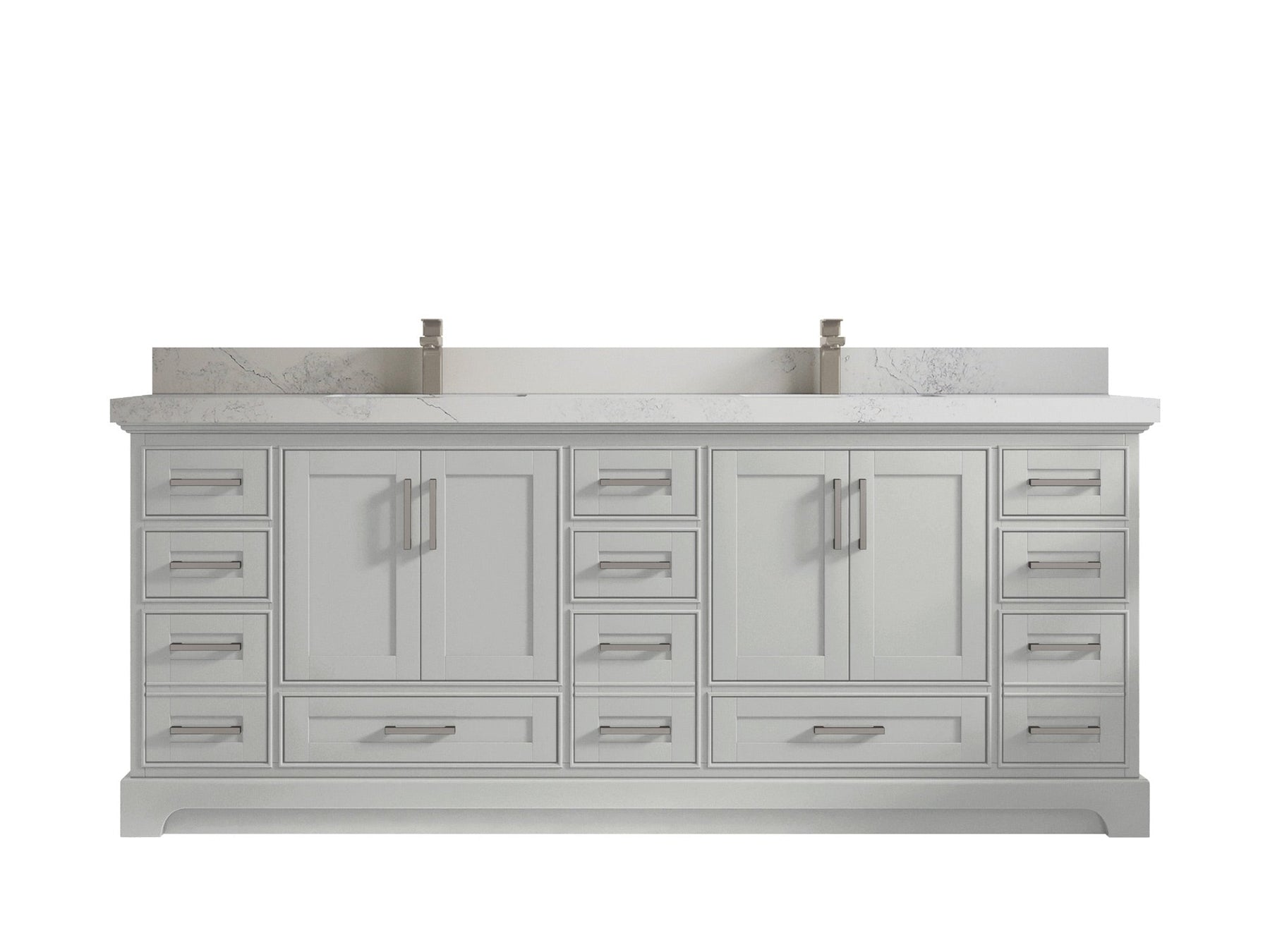 Vanity Countertops options: For Calacatta Laza Quartz, Empira White Quartz, Pure White Quartz we have 2 options Straight-Mitered Edge & Double Cove Edge, For Calacatta Black Quartz, Calacatta Gold Quartz, Calacatta Nuvo Quartz, Carrara Marble, Carrara Quartz, Pearl Light Gray Quartz, Piatra Gray Quartz, Venatino Quartz, and Light Concrete Gray Quartz we only have Straight - Mitered Edge option.