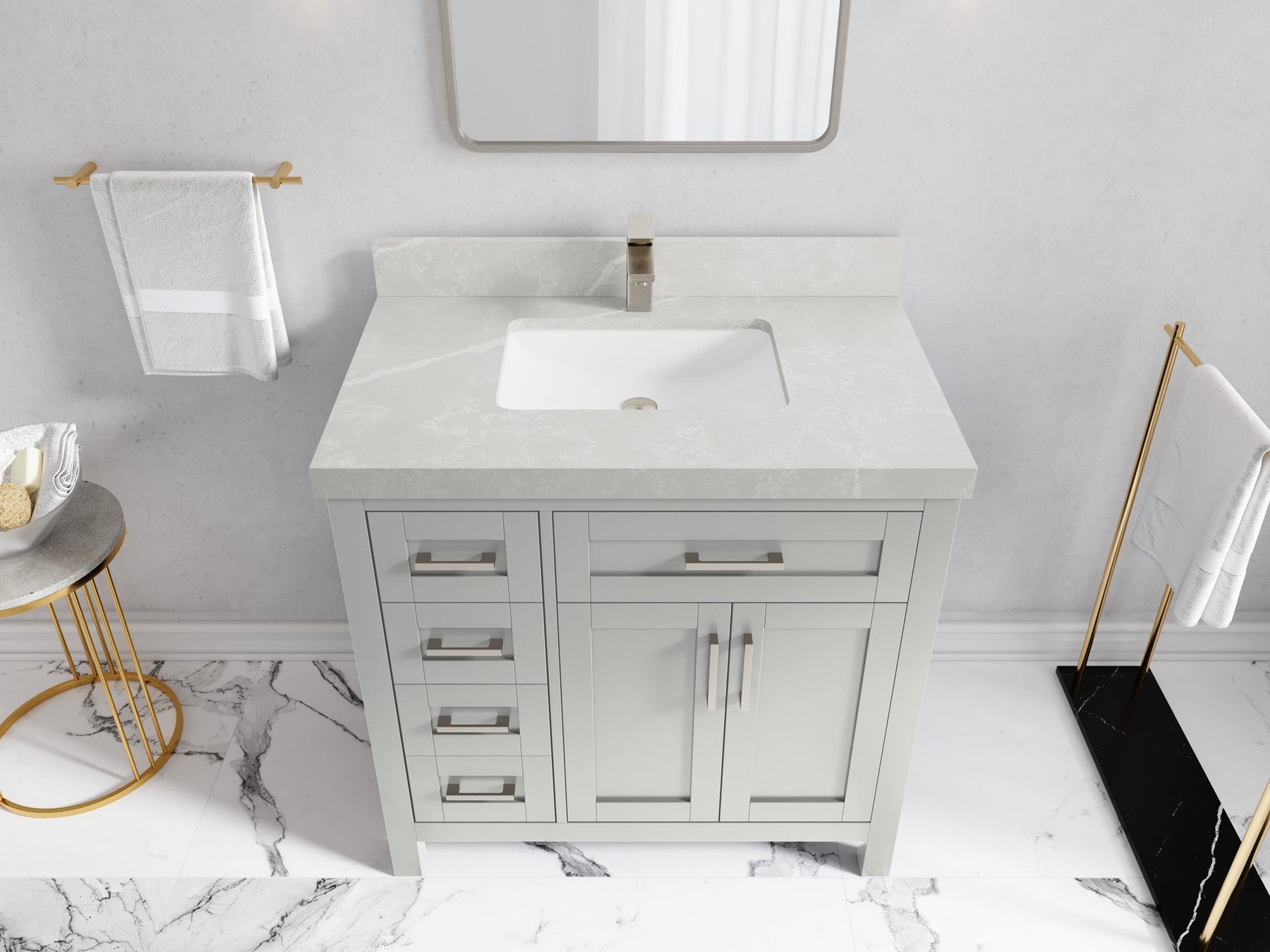 Vanity Countertops options: For Calacatta Laza Quartz, Empira White Quartz, Pure White Quartz, Palissandro Quartz we have 2 options Straight-Mitered Edge and Double Cove Edge; For Calacatta Nuvo Quartz, Carrara Marble, Carrara Quartz, Piatra Gray Quartz, Pearl Light Gray Quartz, Calacatta Black Quartz, Calacatta Gold Quartz, Calacatta Sienna Quartz, Calacatta Poanazzo Quartz, Venatino Quartz, Viola Brown Quartz, Viola Gold Quartz, Viola Night Quartz, Viola Biagio Quartz, Berkshire Brass Quartz, Frosty Carrara Quartz, Onyx Quartz we have Straight - Mitered Edge option.