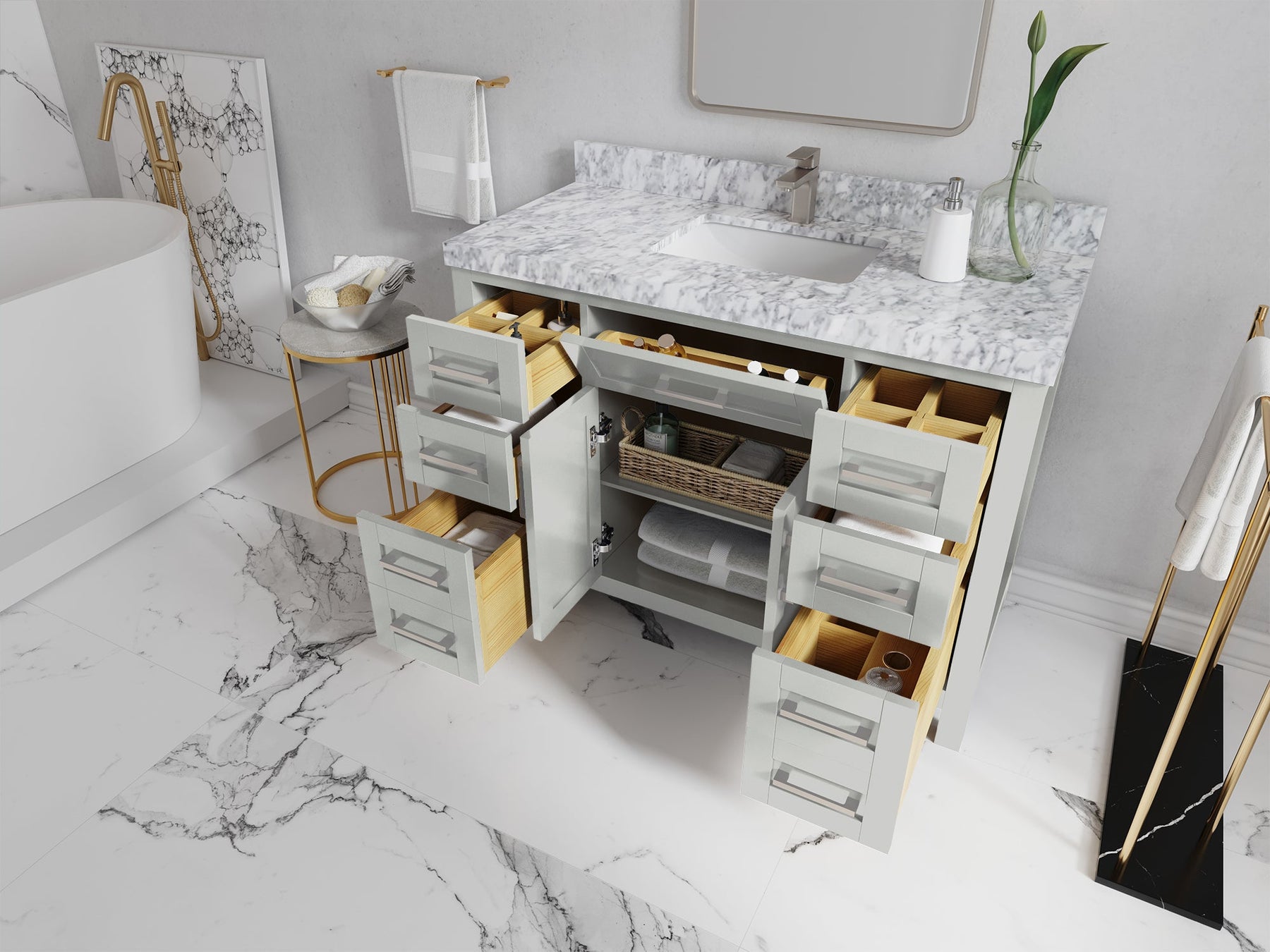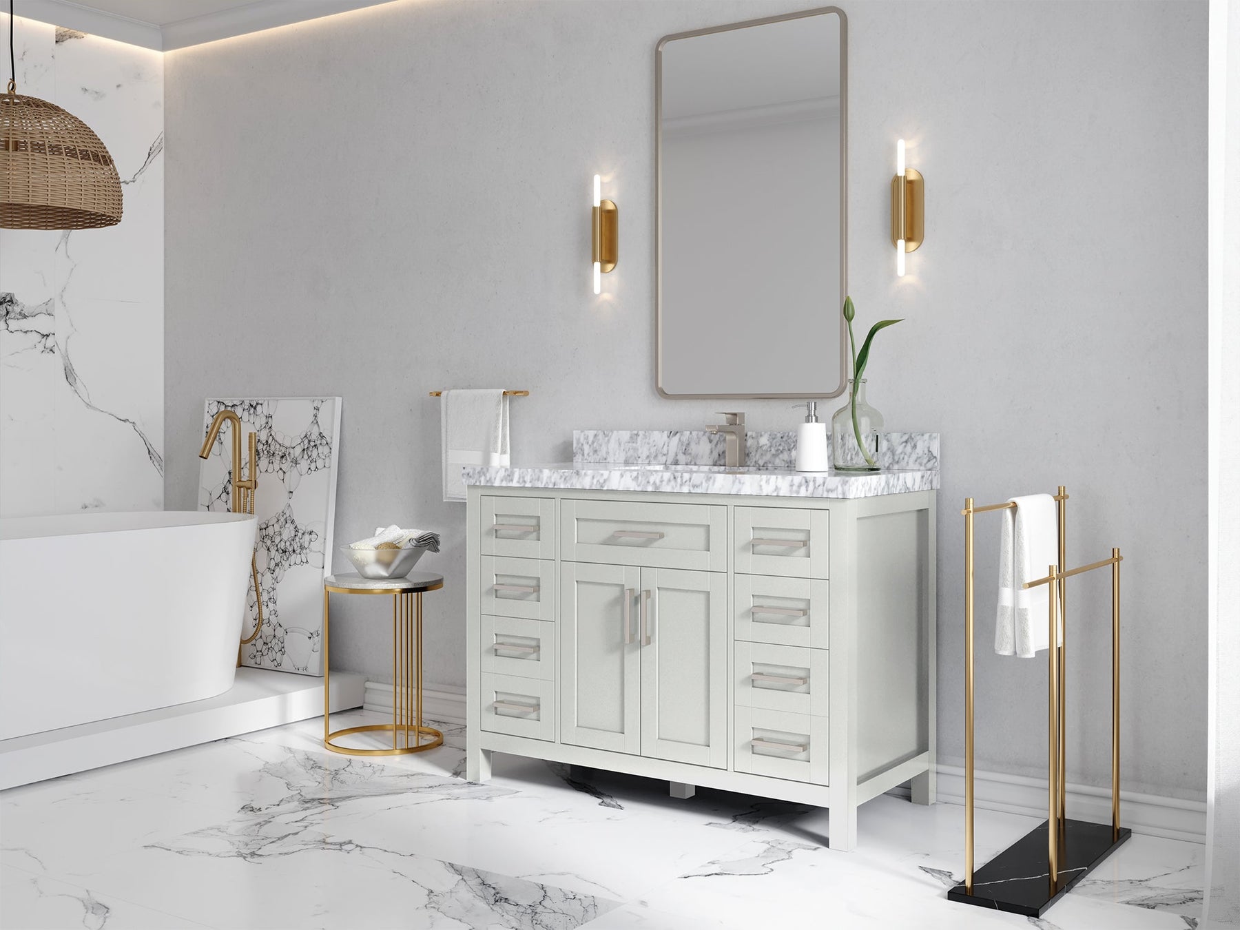 Hardware Finish: White, Coventry Gray comes with Brushed Nickel Finish; Alabaster, Black, Dark Forest Green, Evergreen, Hale Navy Blue, Pewter Green comes with Brushed Gold Finish