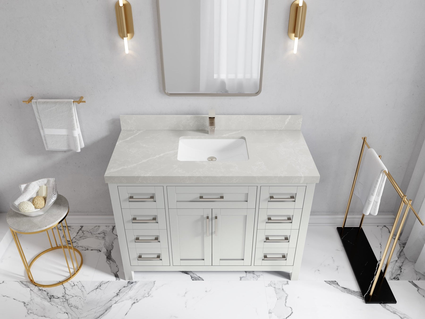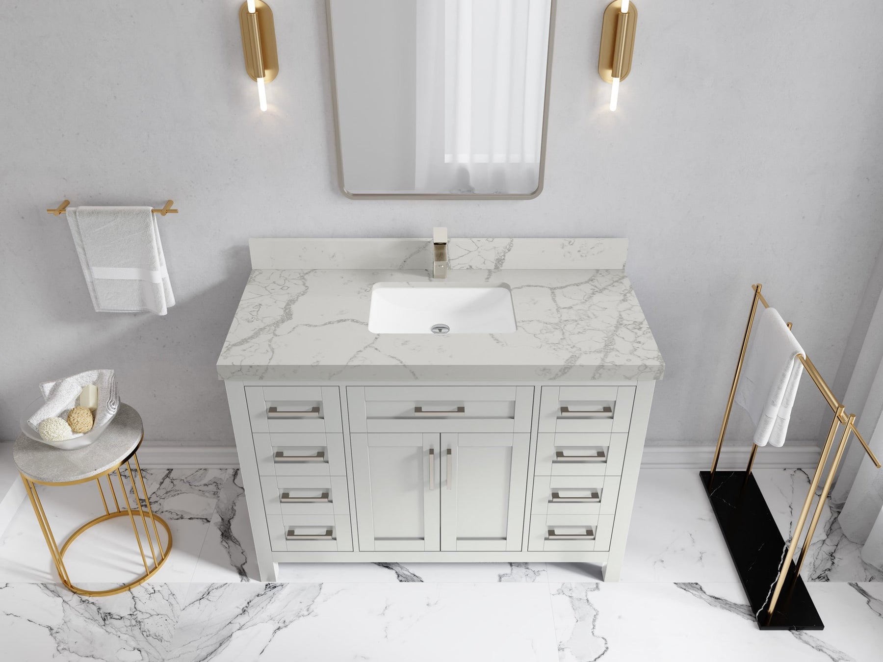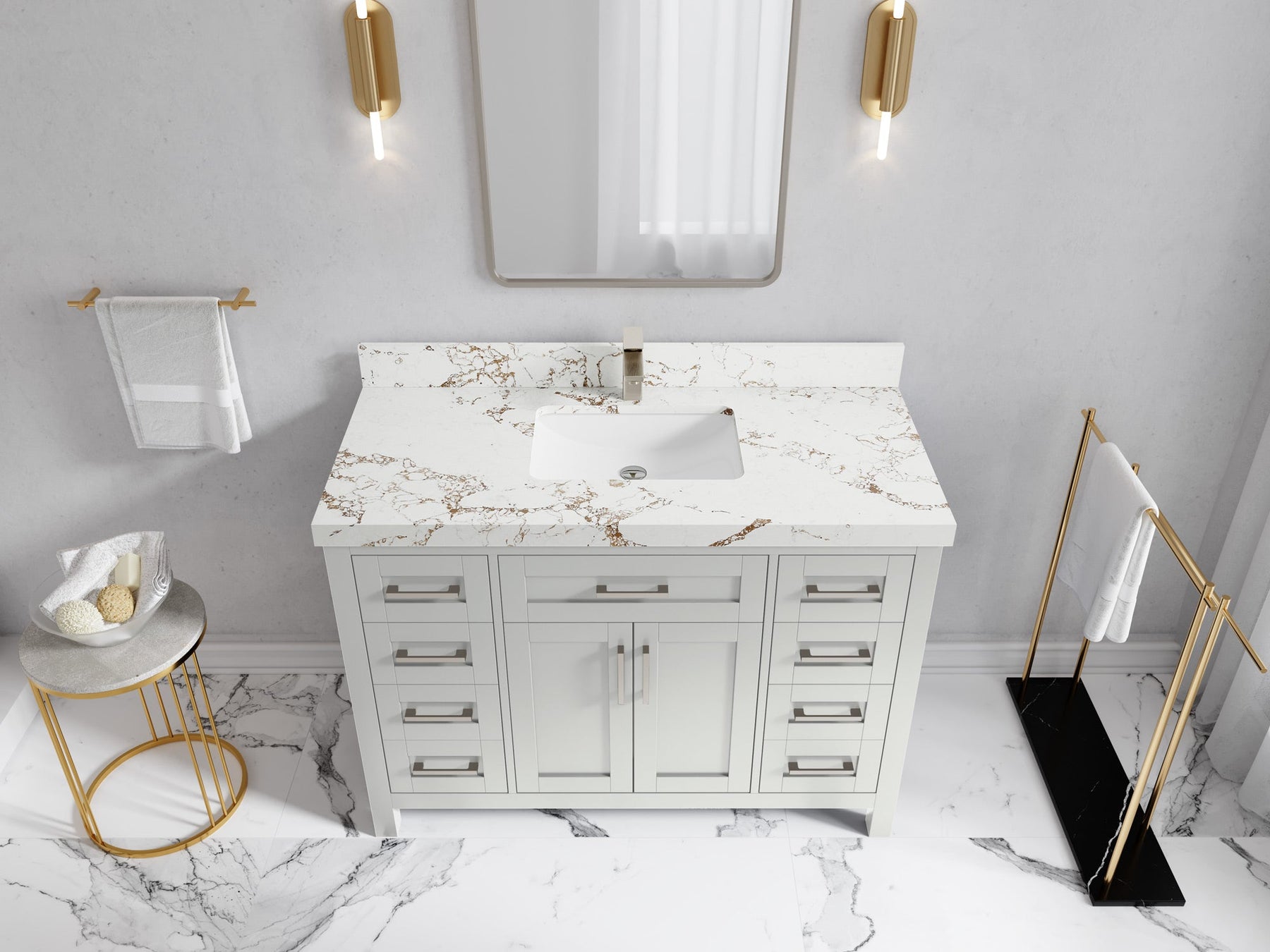 Faucet Hole(S): Comes with Single Faucet, 8 (in.) Widespread Faucet, Wall mount Faucets - Only Available for White Quartz and Carrara Quartz. (PLEASE ADD THIS CONFIGURATION UNDER COUNTERTOPS SECTION )