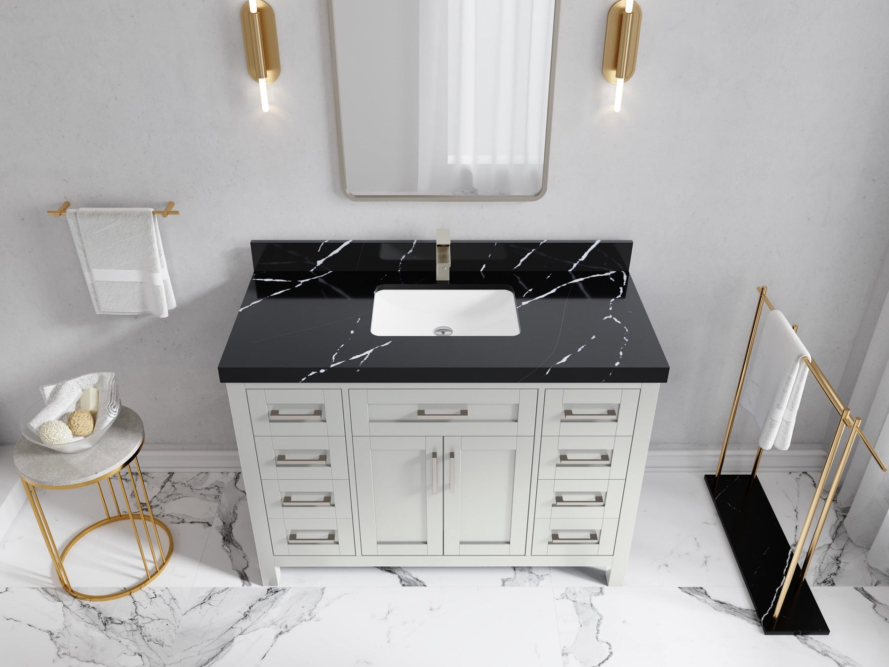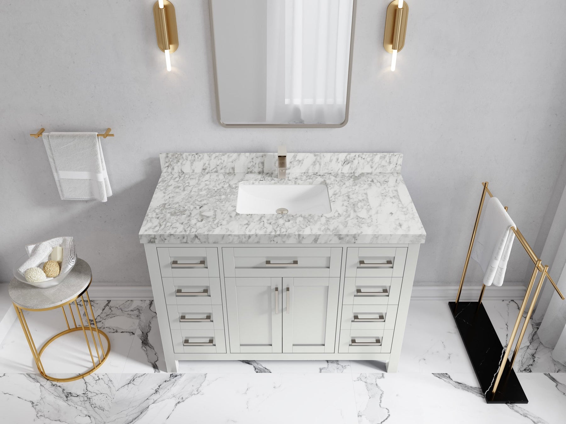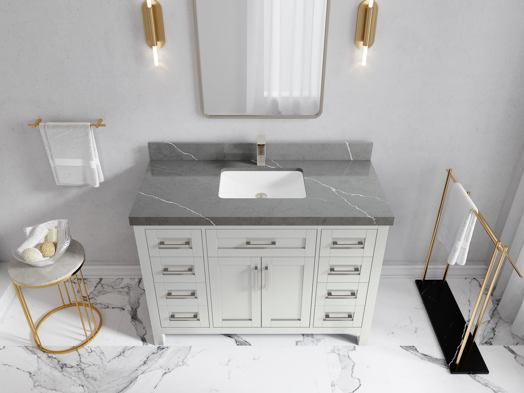 Faucet Hole(S): Comes with Single Faucet, 8 (in.) Widespread Faucet, Wall mount Faucets - Only Available for White Quartz and Carrara Quartz. (PLEASE ADD THIS CONFIGURATION UNDER COUNTERTOPS SECTION )