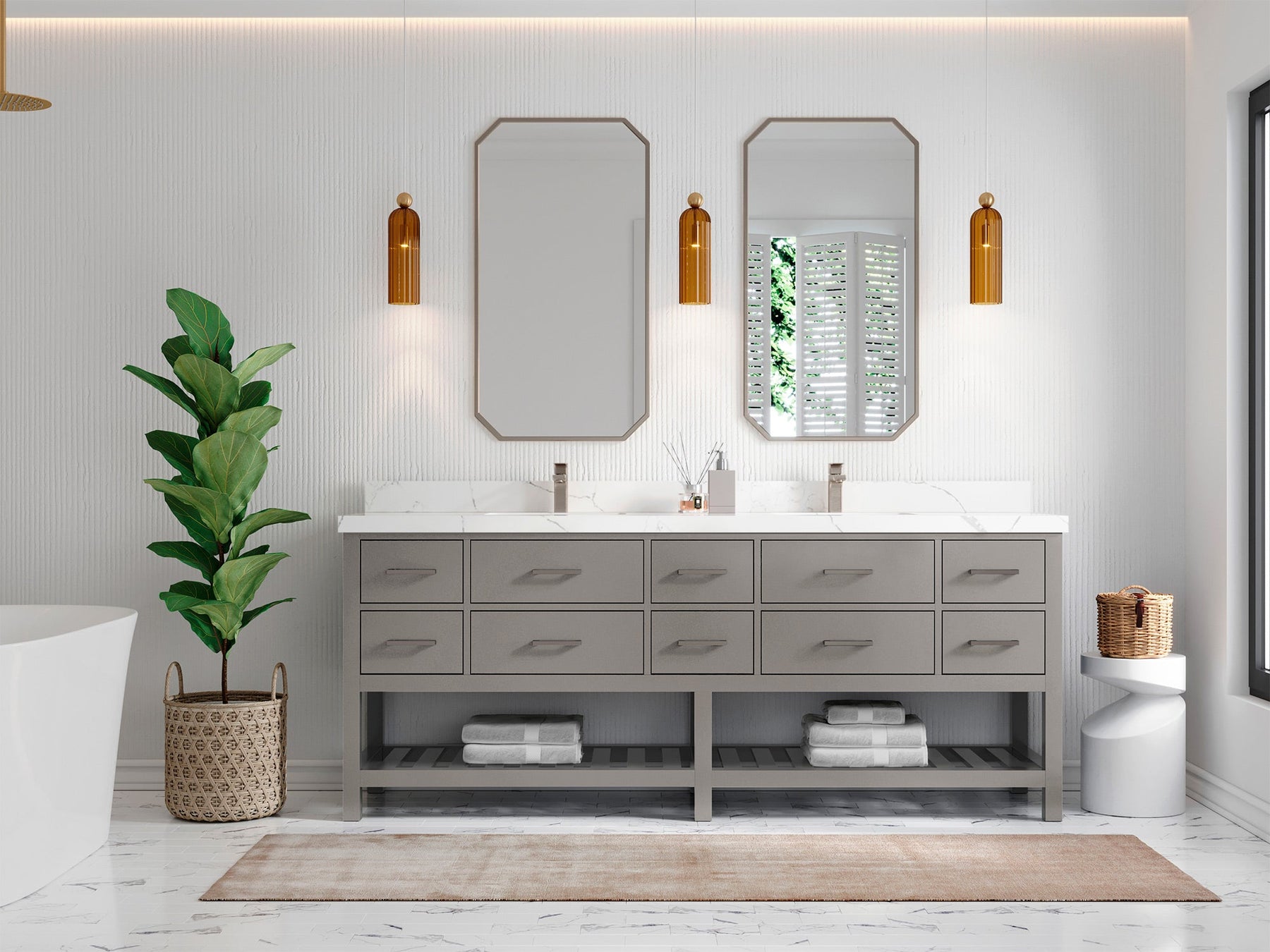 Faucet Hole(S): Comes with Single Faucet, 8 (in.) Widespread Faucet, Wall mount Faucets - Only Available for White Quartz and Carrara Quartz. (PLEASE ADD THIS CONFIGURATION UNDER COUNTERTOPS SECTION )