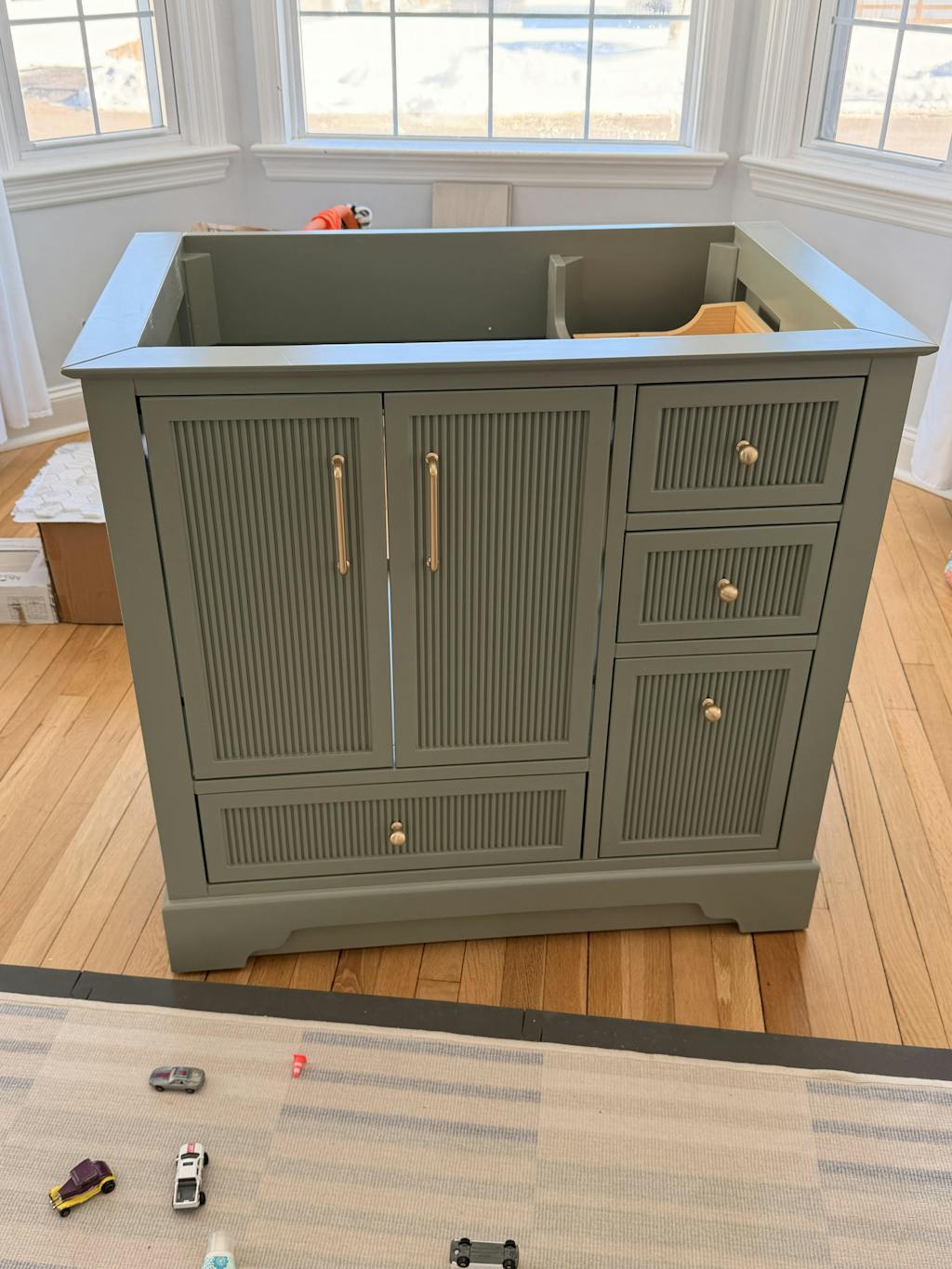 Includes cabinet base only. Countertop, sink, and faucet are not included.