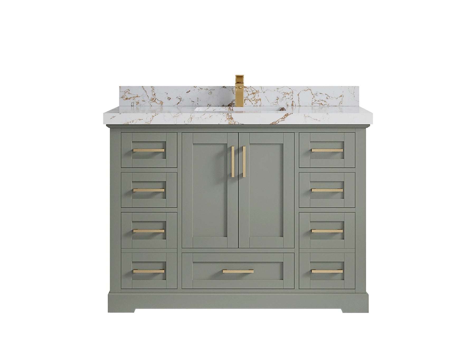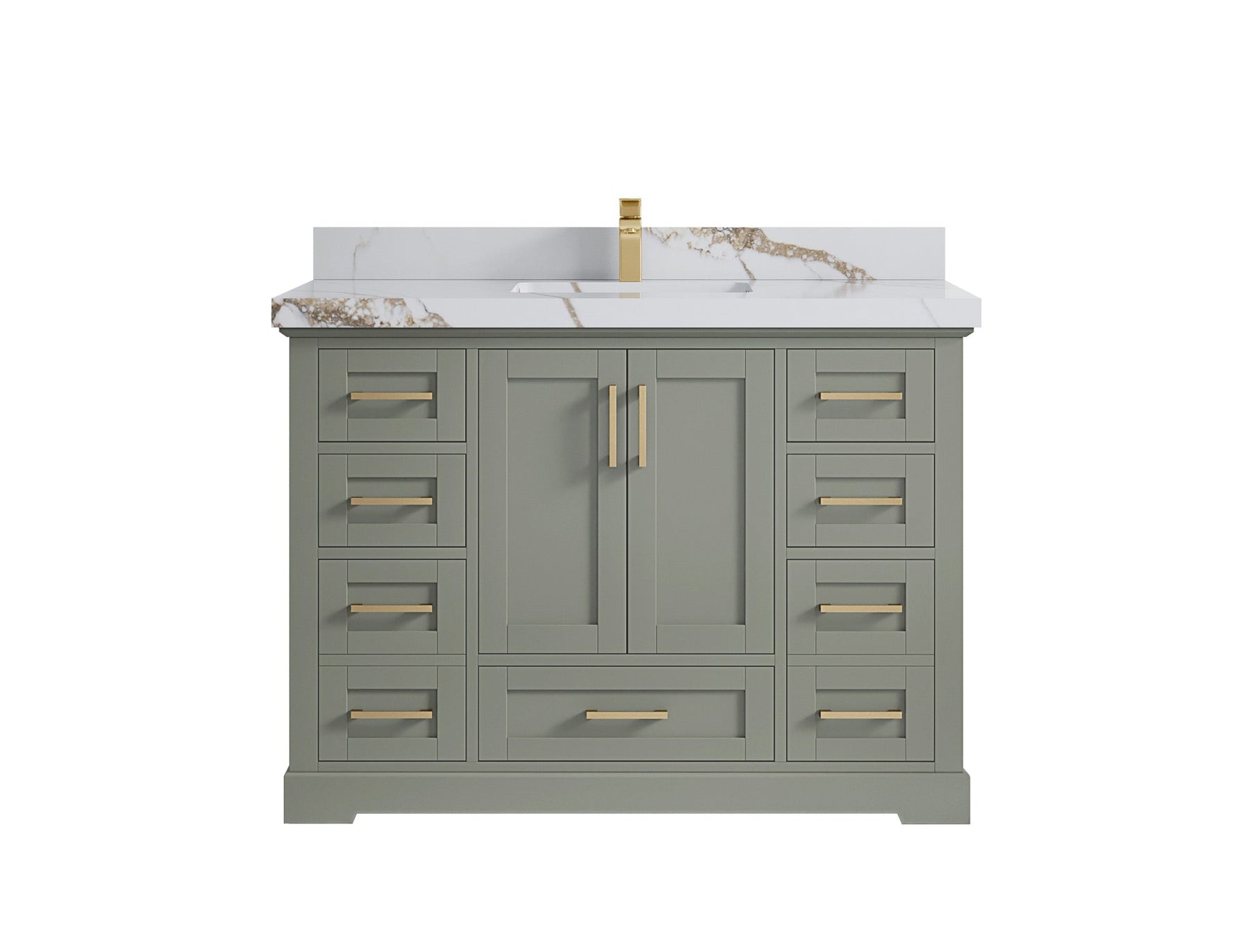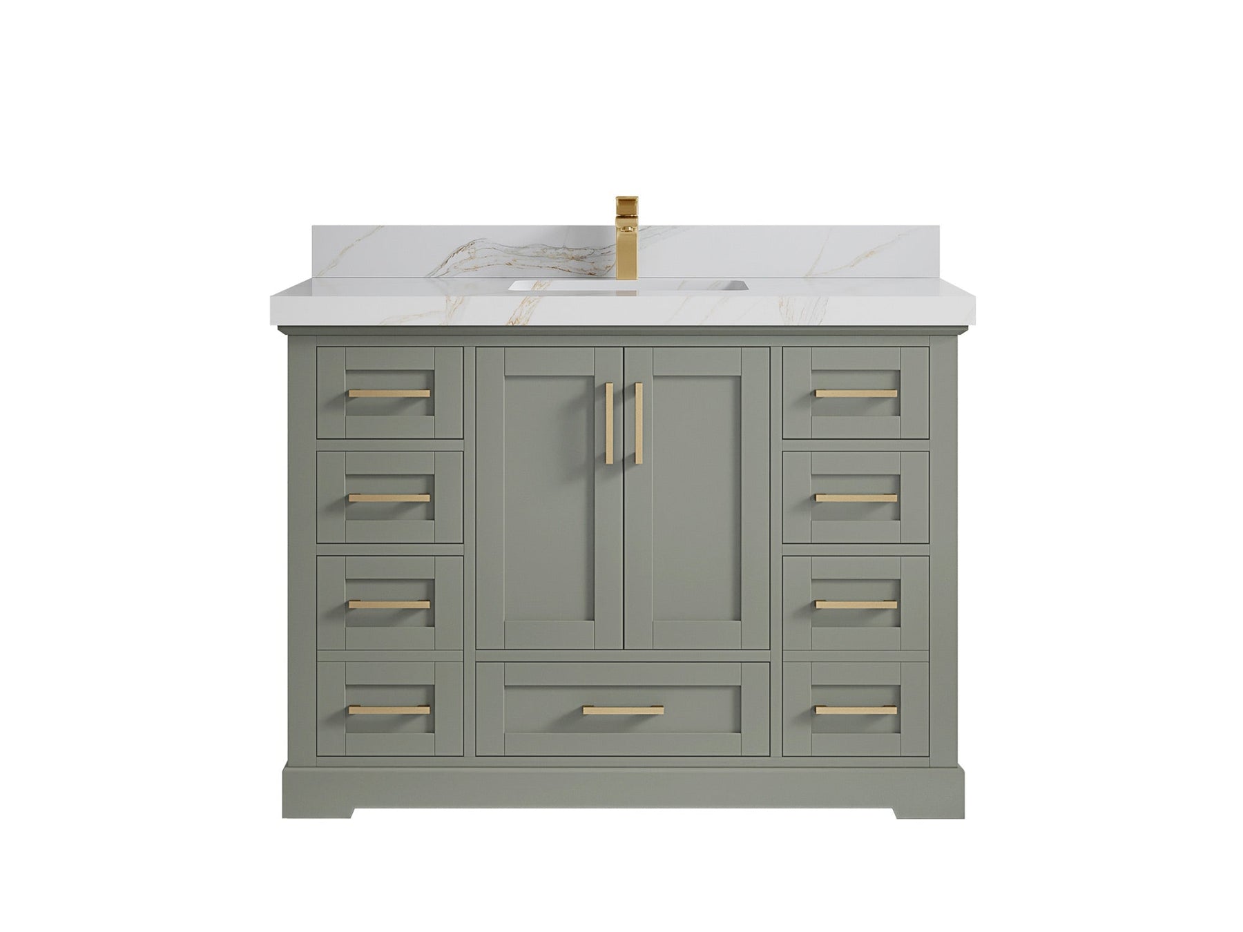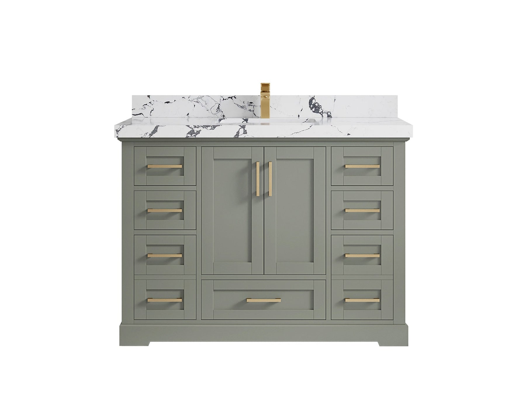 Boston 48 in. W x 22 in. D Single Sink Bathroom Vanity in Evergreen with 1.5 in Double Cove Edge Calacatta Laza Quartz Countertop - Top View