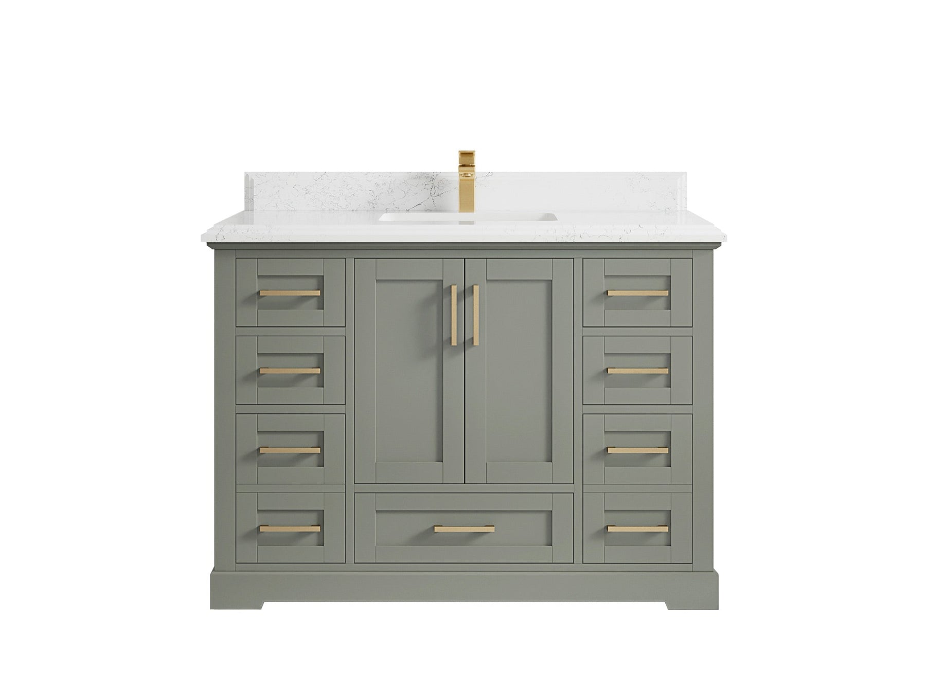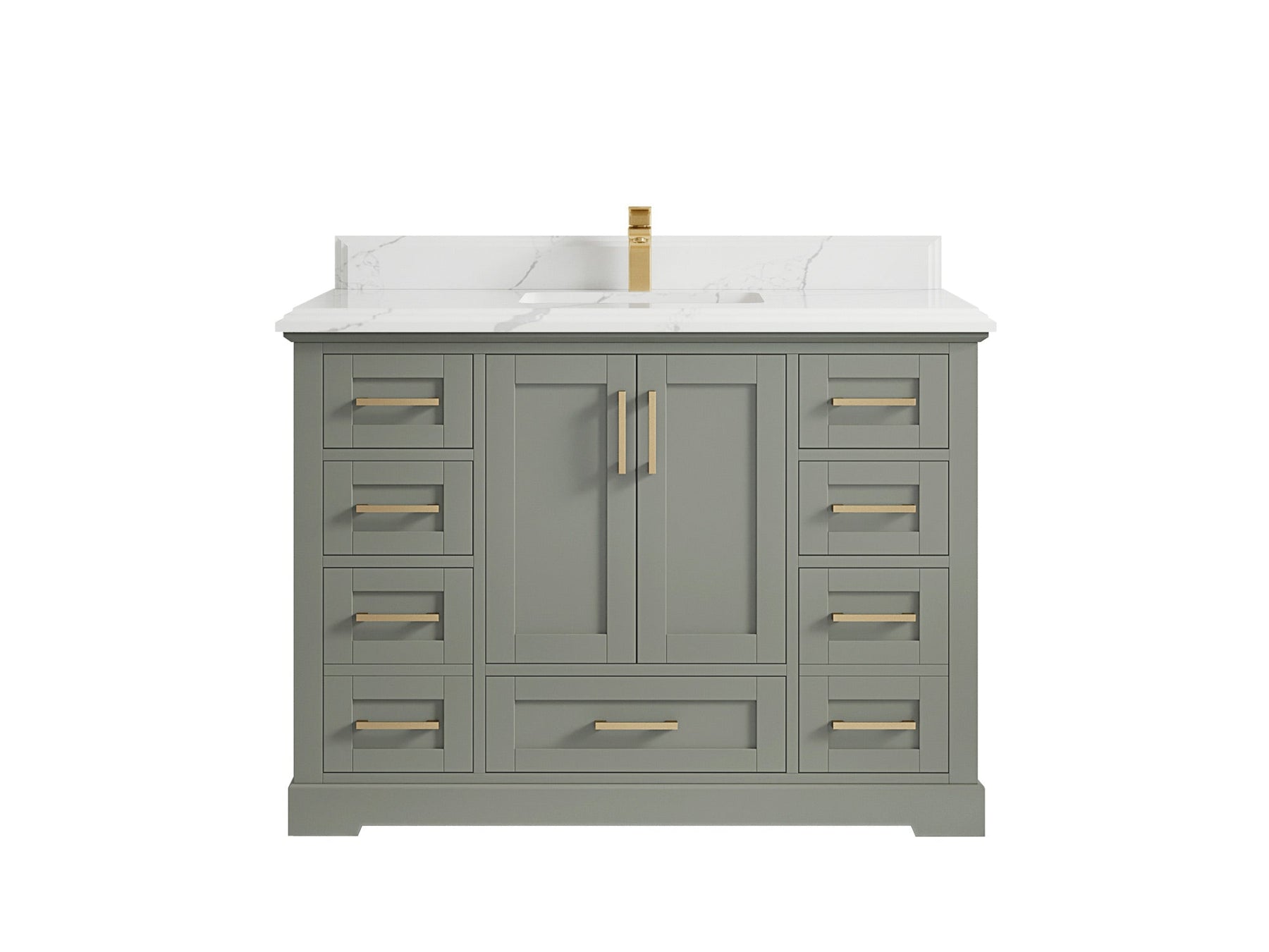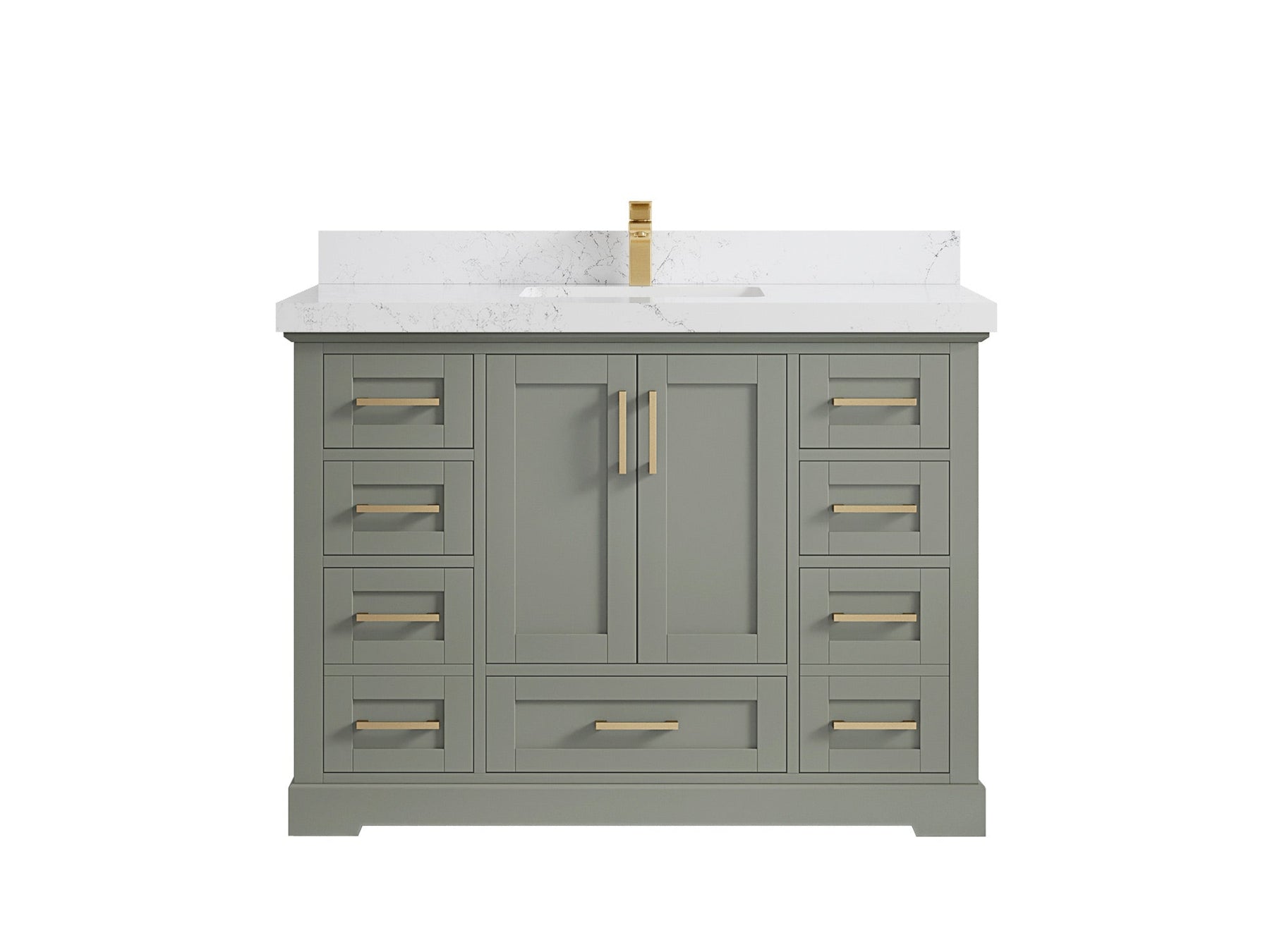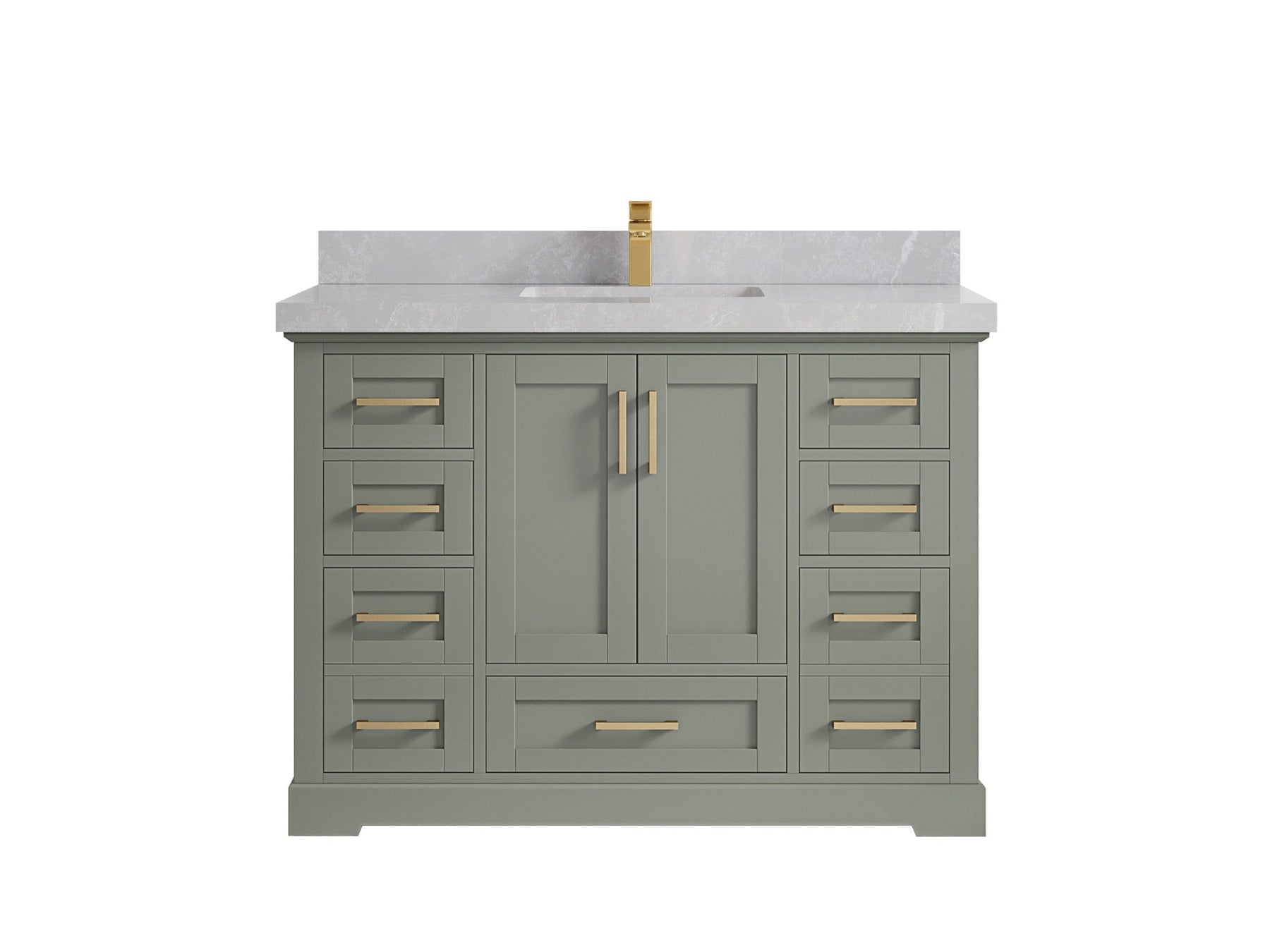 Boston 48 in. W x 22 in. D Single Sink Bathroom Vanity in Evergreen with 1.5 in Double Cove Edge Calacatta Laza Quartz Countertop - Top View