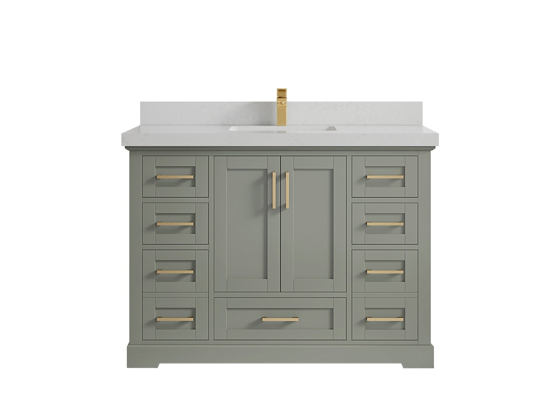 Boston 48 in. W x 22 in. D Single Sink Bathroom Vanity in Evergreen with 1.5 in Double Cove Edge Empira White Quartz Countertop - Top View