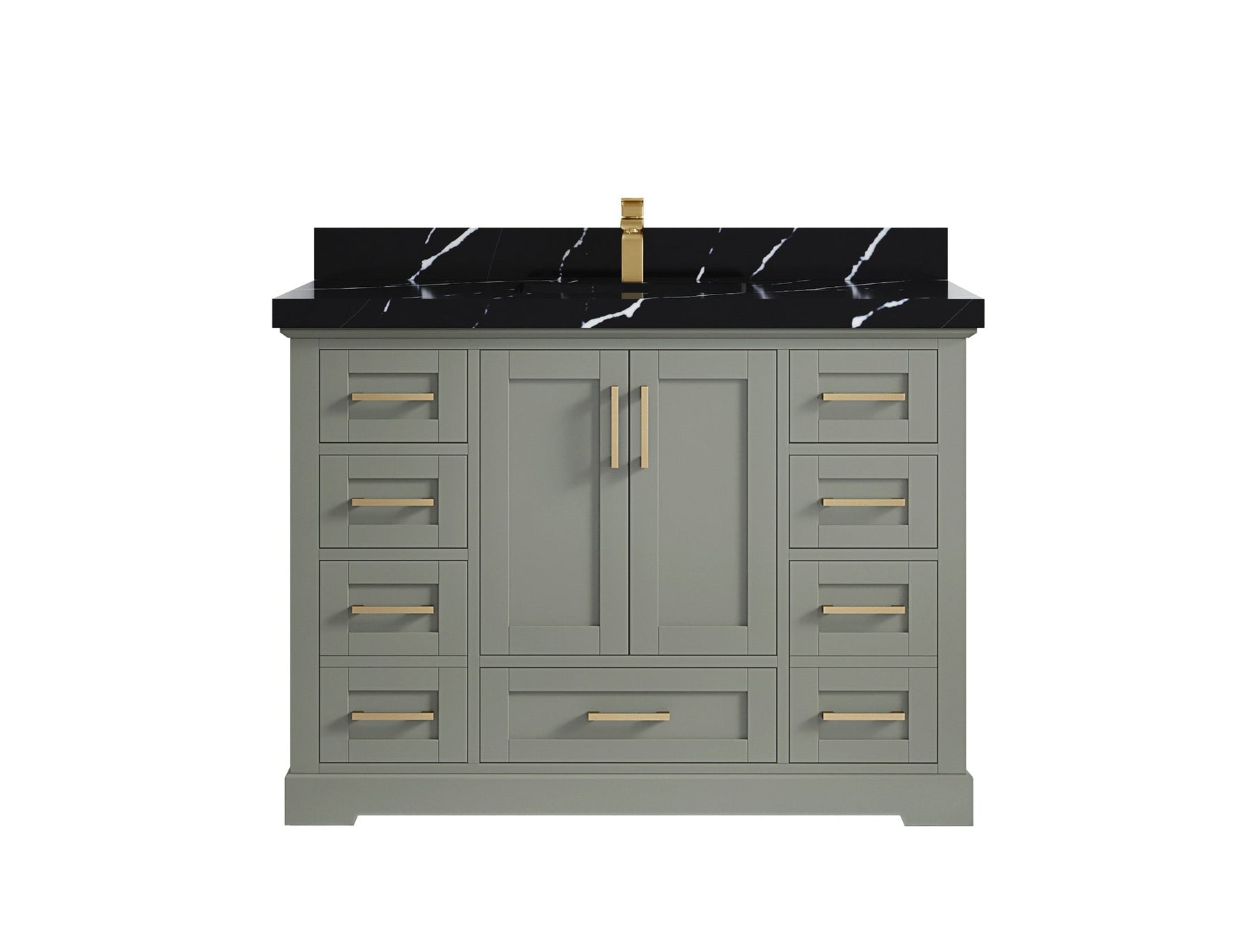 Boston 48 in. W x 22 in. D Single Sink Bathroom Vanity in Evergreen with 2 in Calacatta Black Quartz Countertop - Top View