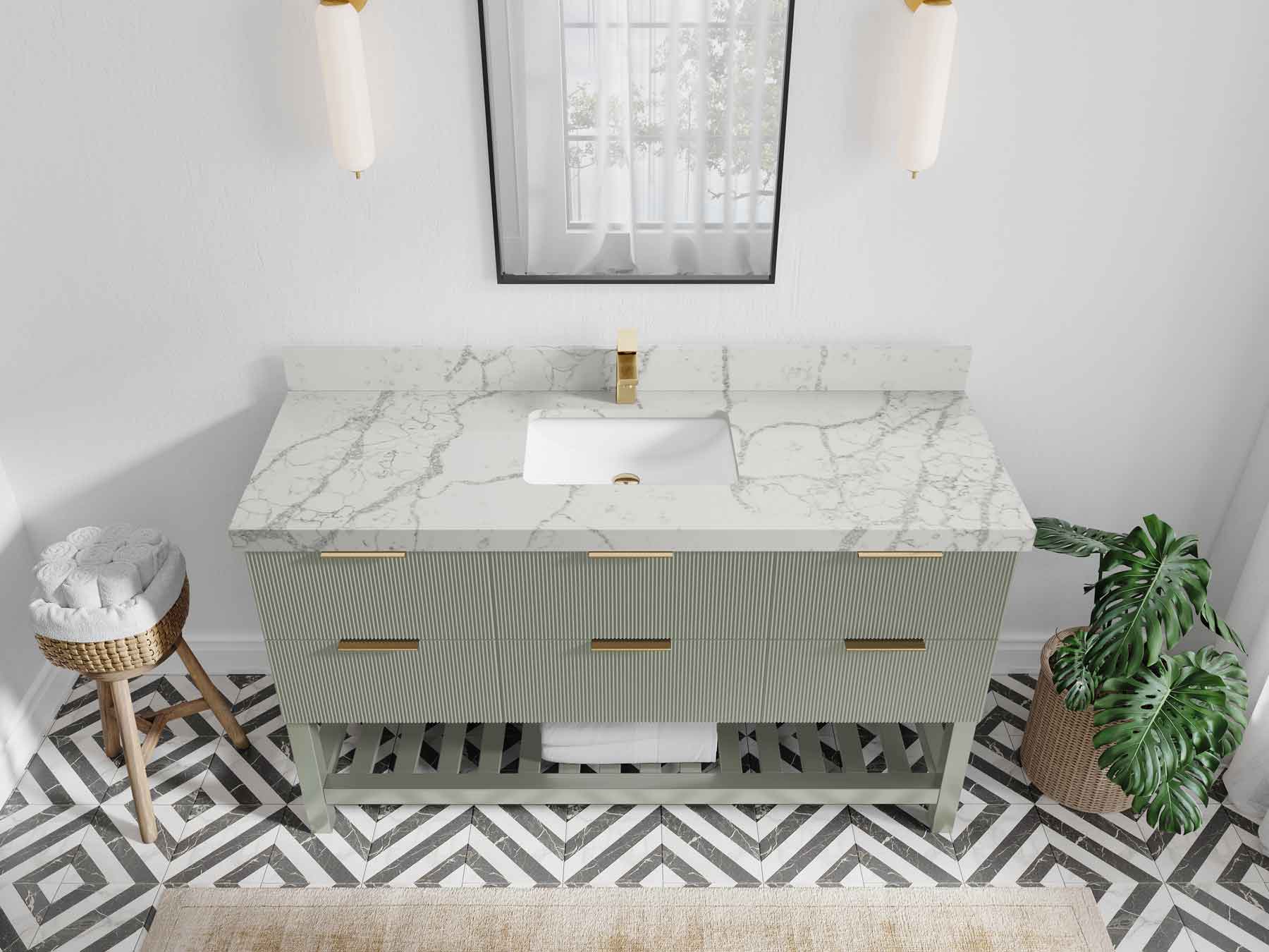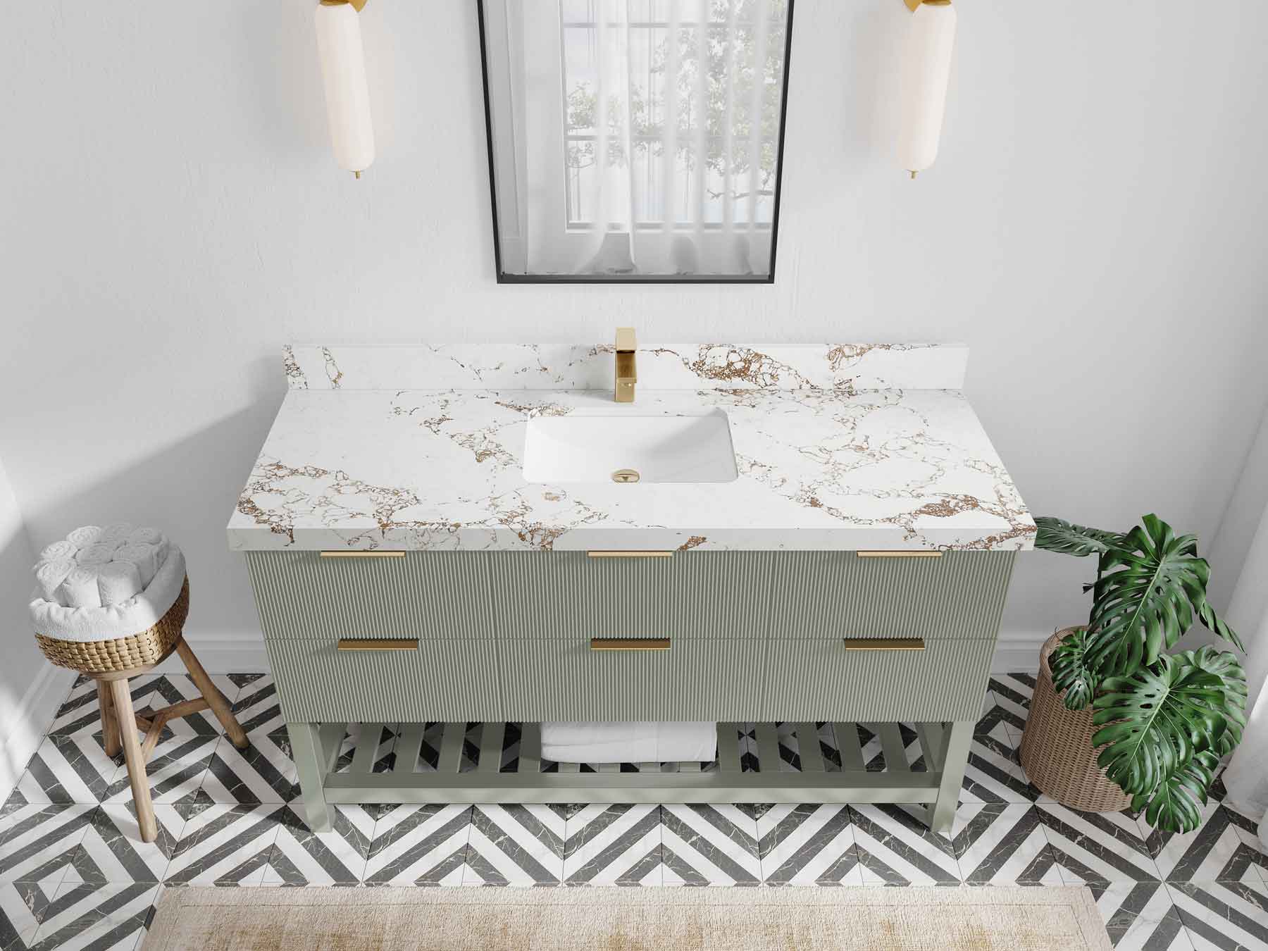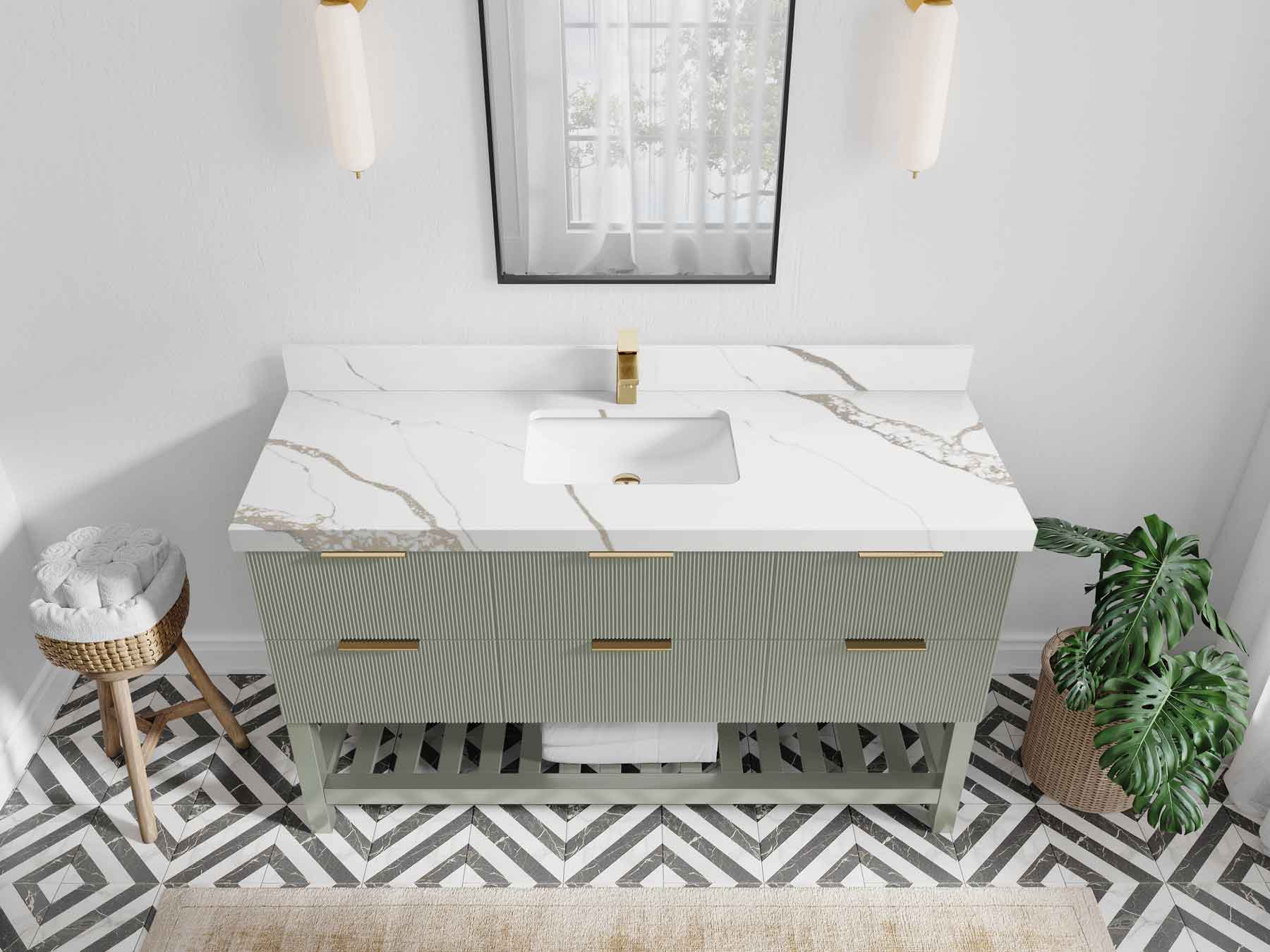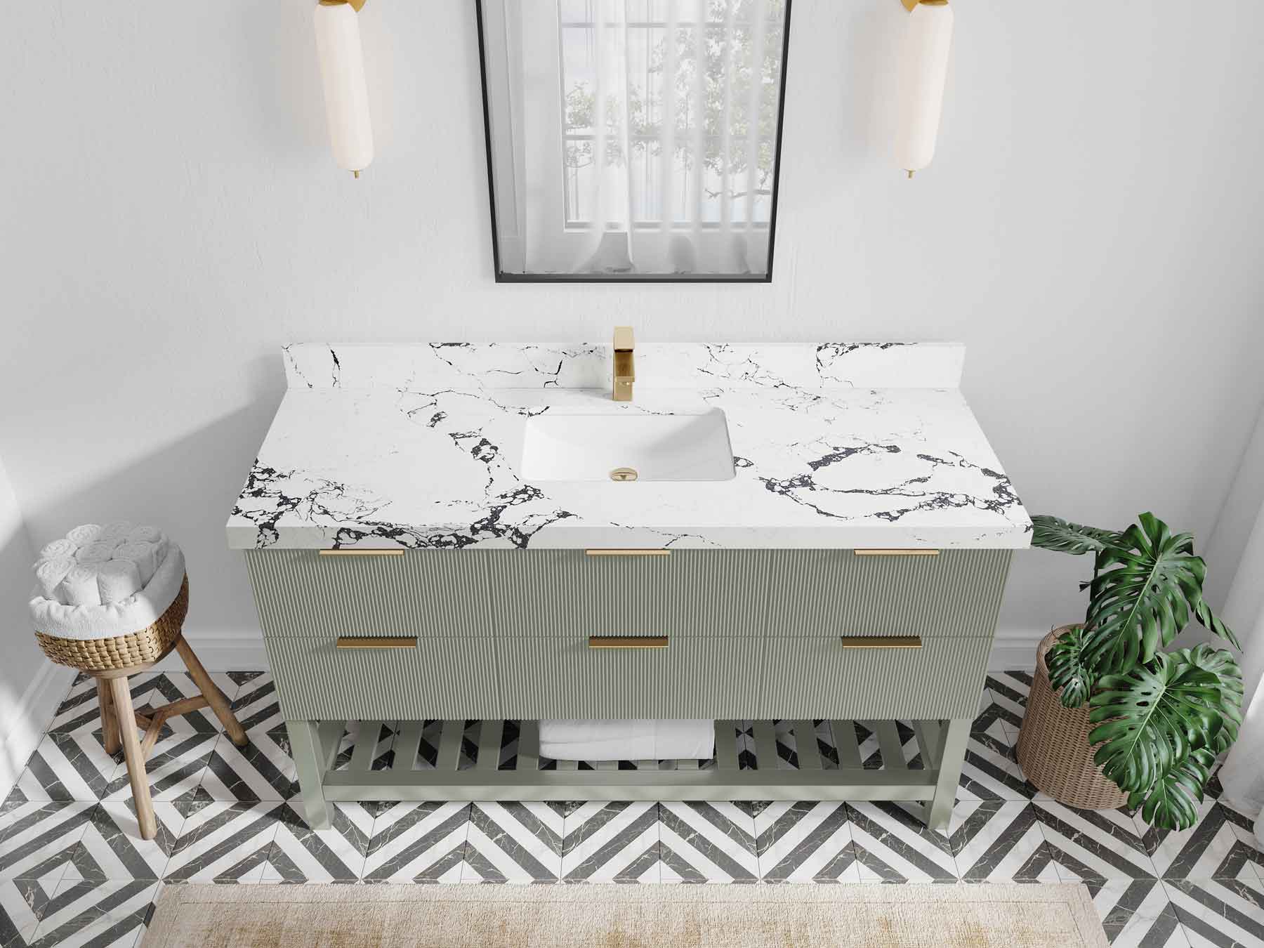 Vanity Countertops options: For Calacatta Laza Quartz, Empira White Quartz, Pure White Quartz we have 2 options Straight-Mitered Edge & Double Cove Edge, For Calacatta Black Quartz, Calacatta Gold Quartz, Calacatta Nuvo Quartz, Carrara Marble, Carrara Quartz, Pearl Light Gray Quartz, Piatra Gray Quartz, Venatino Quartz, and Light Concrete Gray Quartz we only have Straight - Mitered Edge option.