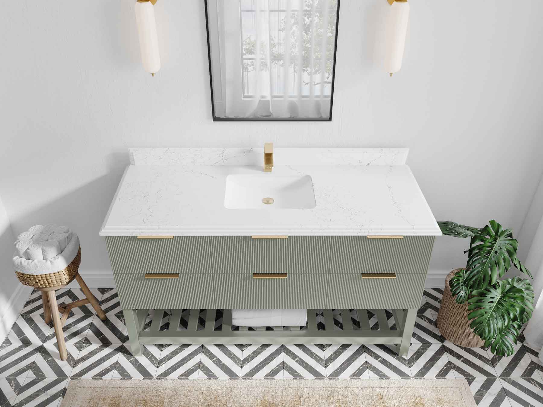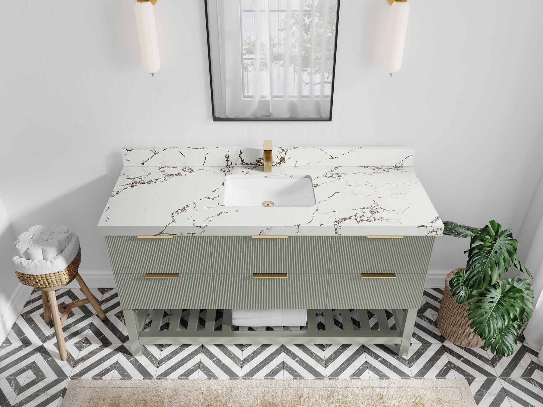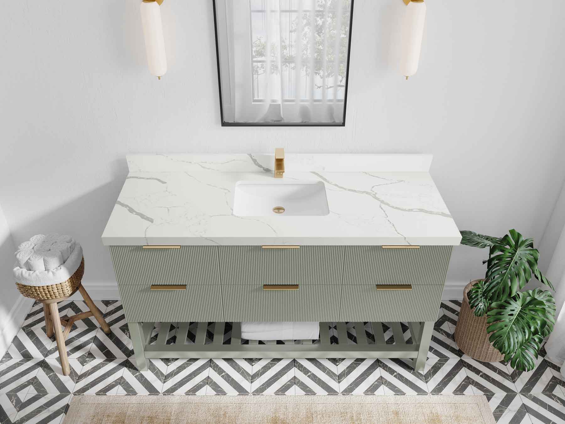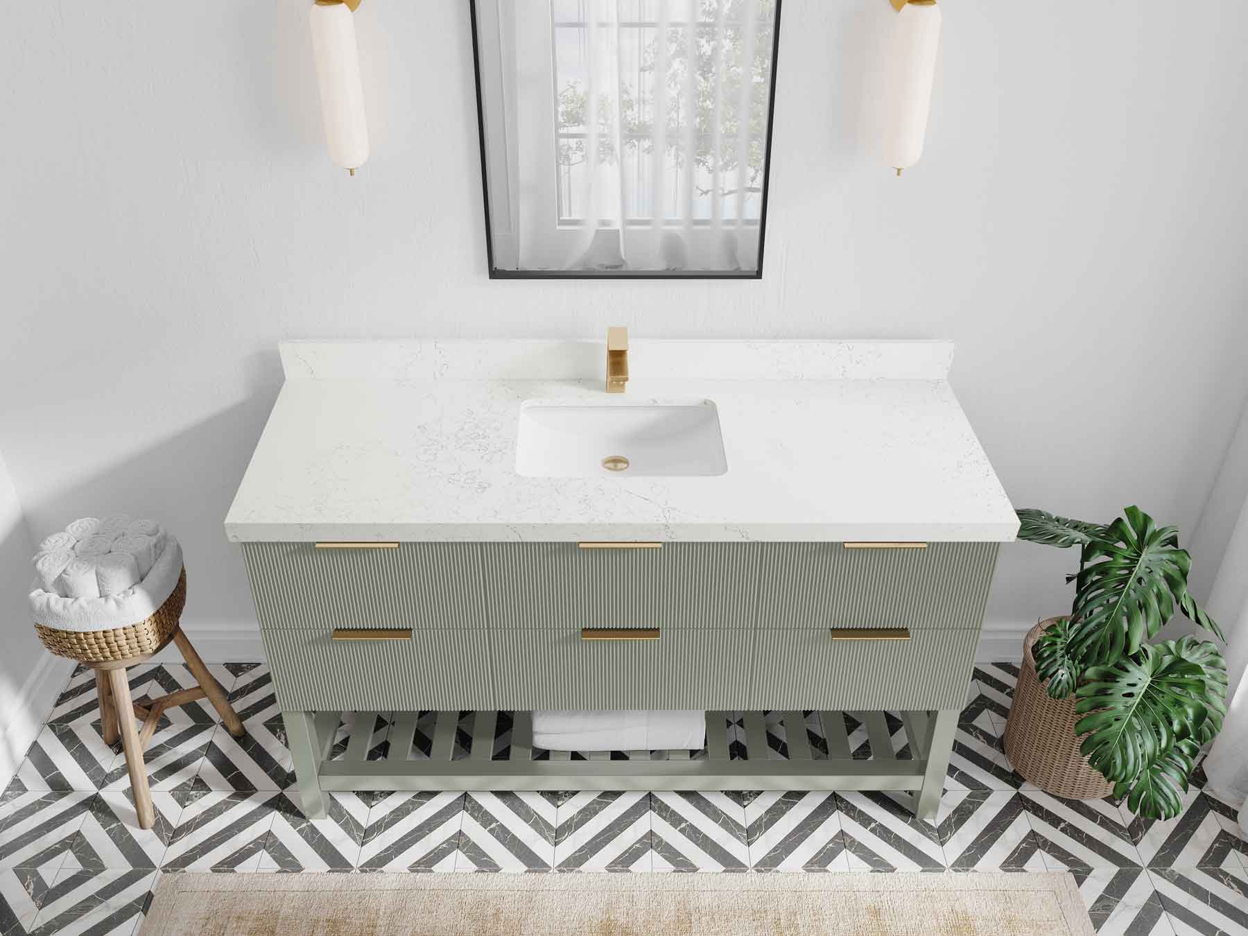 Vanity Countertops options: For Calacatta Laza Quartz, Empira White Quartz, Pure White Quartz we have 2 options Straight-Mitered Edge & Double Cove Edge, For Calacatta Black Quartz, Calacatta Gold Quartz, Calacatta Nuvo Quartz, Carrara Marble, Carrara Quartz, Pearl Light Gray Quartz, Piatra Gray Quartz, Venatino Quartz, and Light Concrete Gray Quartz we only have Straight - Mitered Edge option.