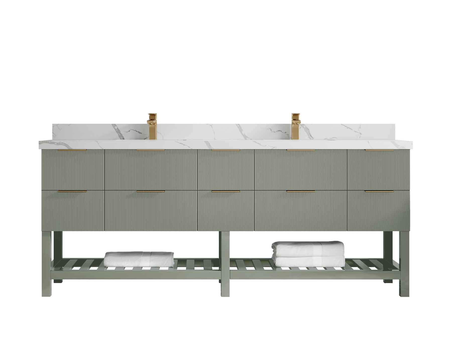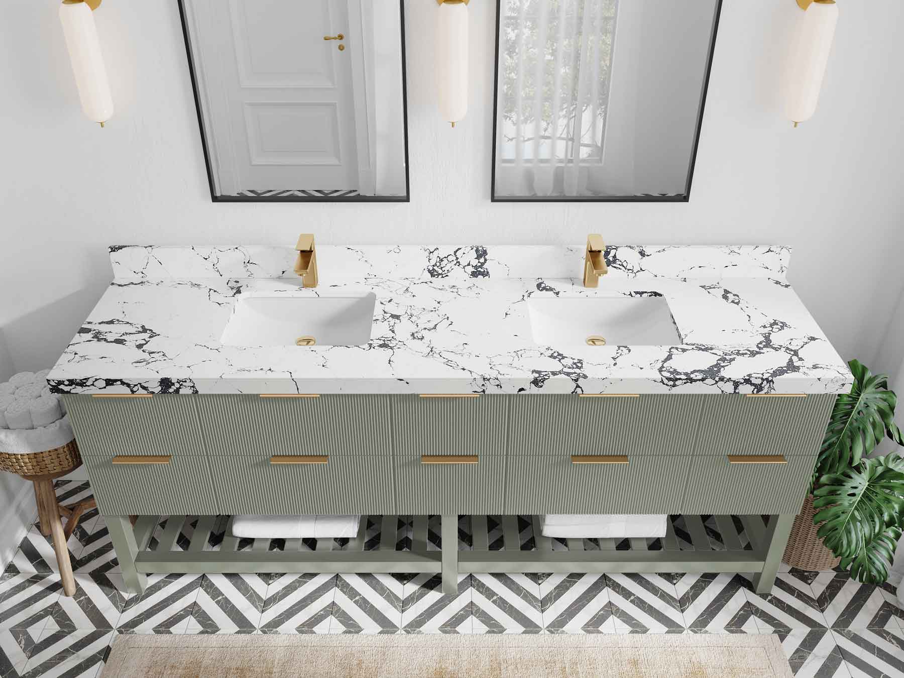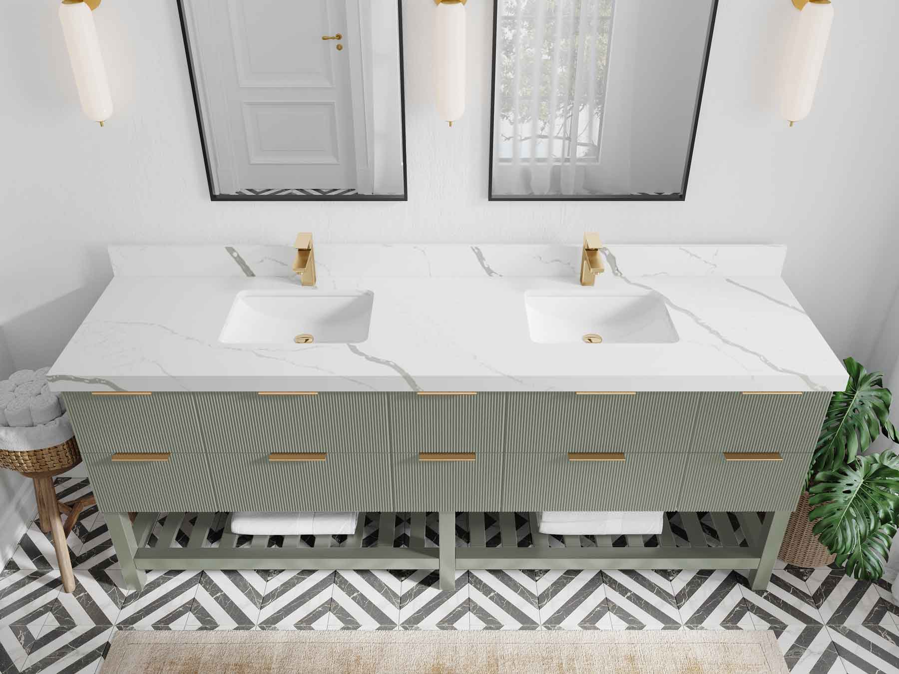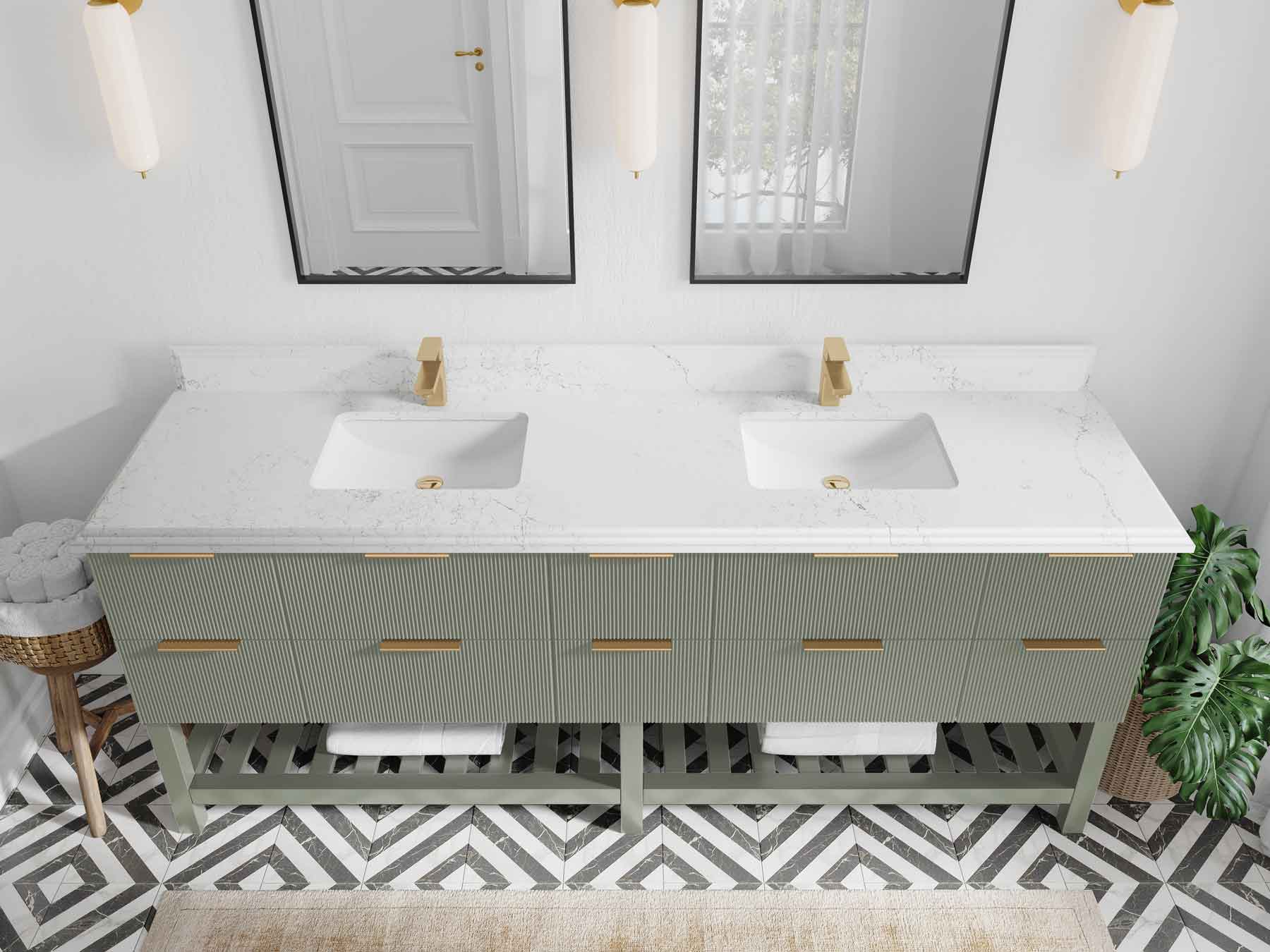Vanity Countertops options: For Calacatta Laza Quartz, Empira White Quartz, Pure White Quartz we have 2 options Straight-Mitered Edge & Double Cove Edge, For Calacatta Black Quartz, Calacatta Gold Quartz, Calacatta Nuvo Quartz, Carrara Marble, Carrara Quartz, Pearl Light Gray Quartz, Piatra Gray Quartz, Venatino Quartz, and Light Concrete Gray Quartz we only have Straight - Mitered Edge option.
