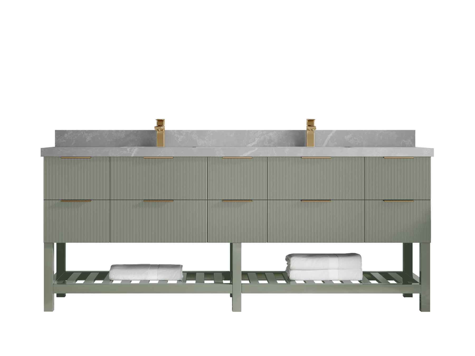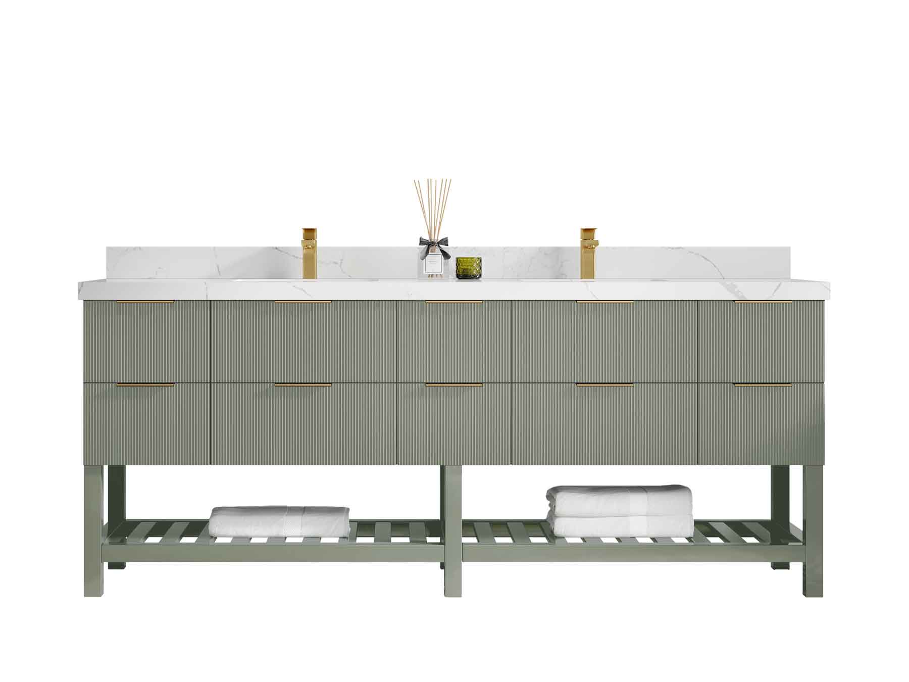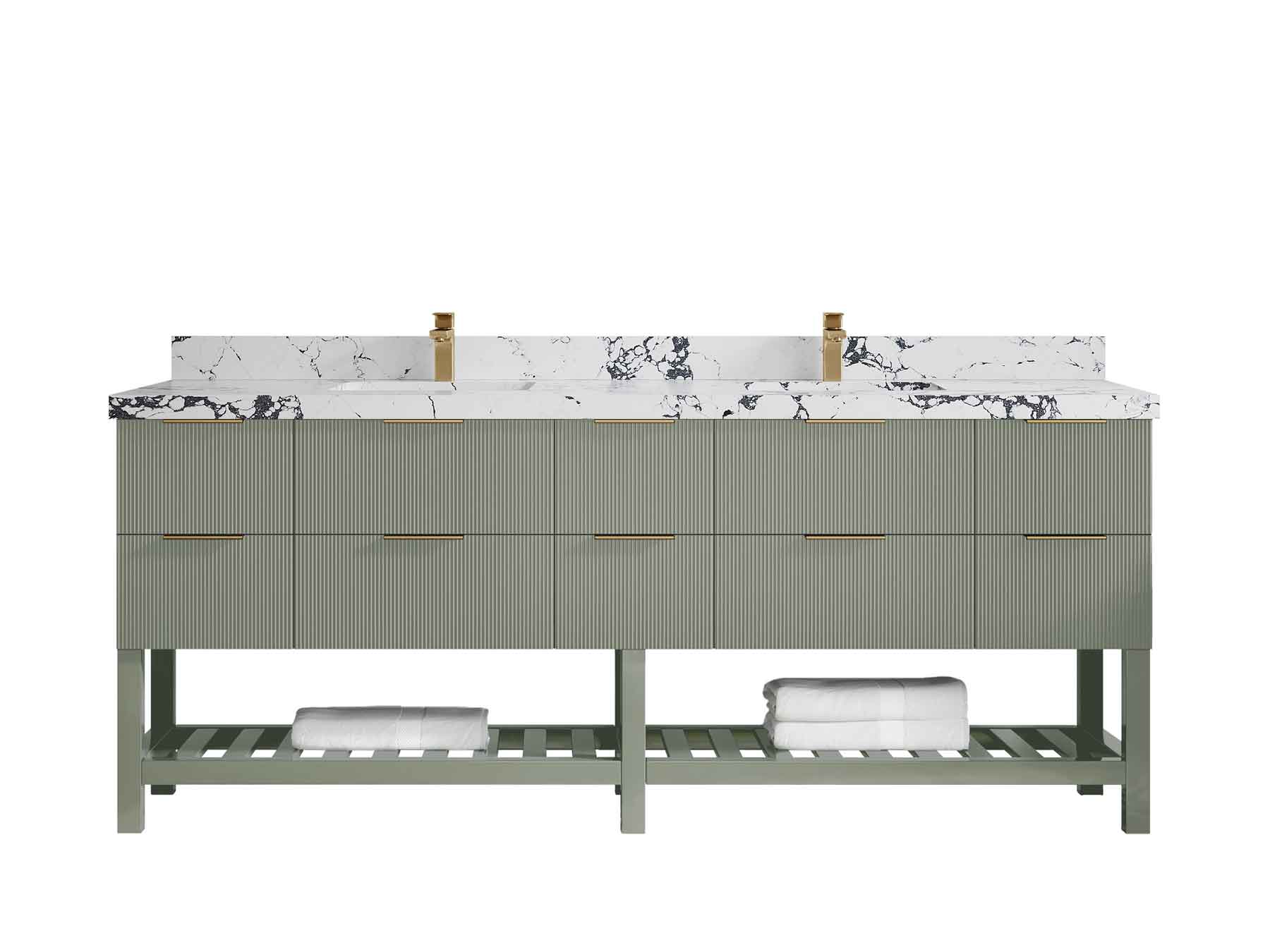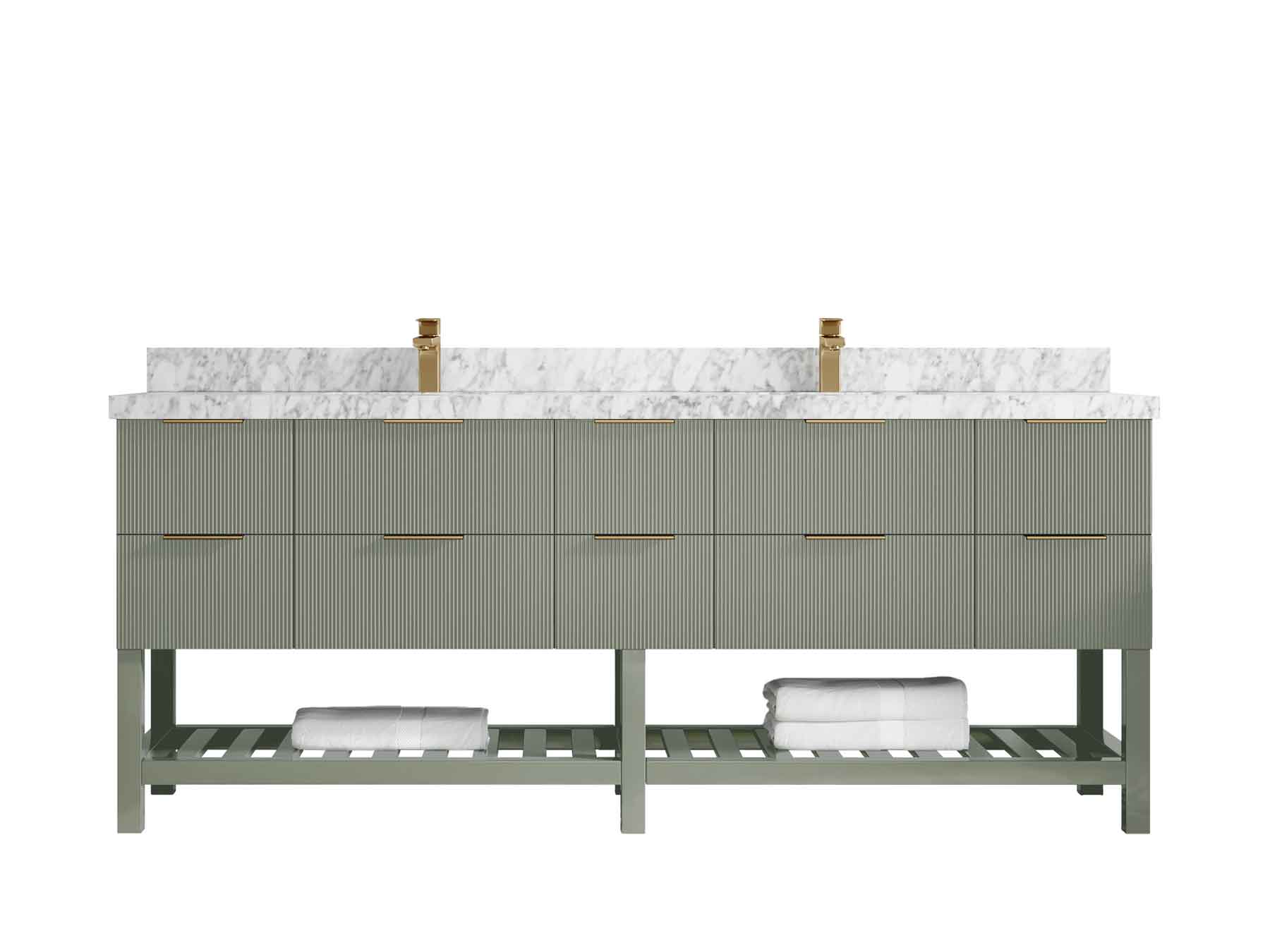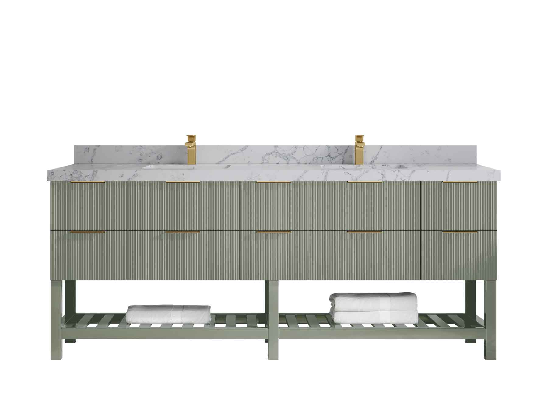 Vanity Countertops options: For Calacatta Laza Quartz, Empira White Quartz, Pure White Quartz we have 2 options Straight-Mitered Edge & Double Cove Edge, For Calacatta Black Quartz, Calacatta Gold Quartz, Calacatta Nuvo Quartz, Carrara Marble, Carrara Quartz, Pearl Light Gray Quartz, Piatra Gray Quartz, Venatino Quartz, and Light Concrete Gray Quartz we only have Straight - Mitered Edge option.