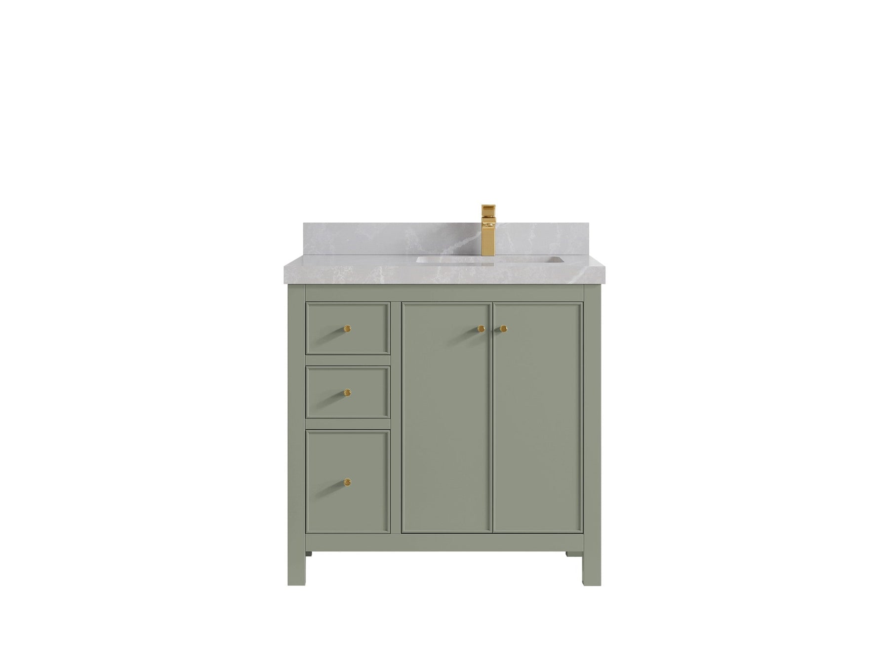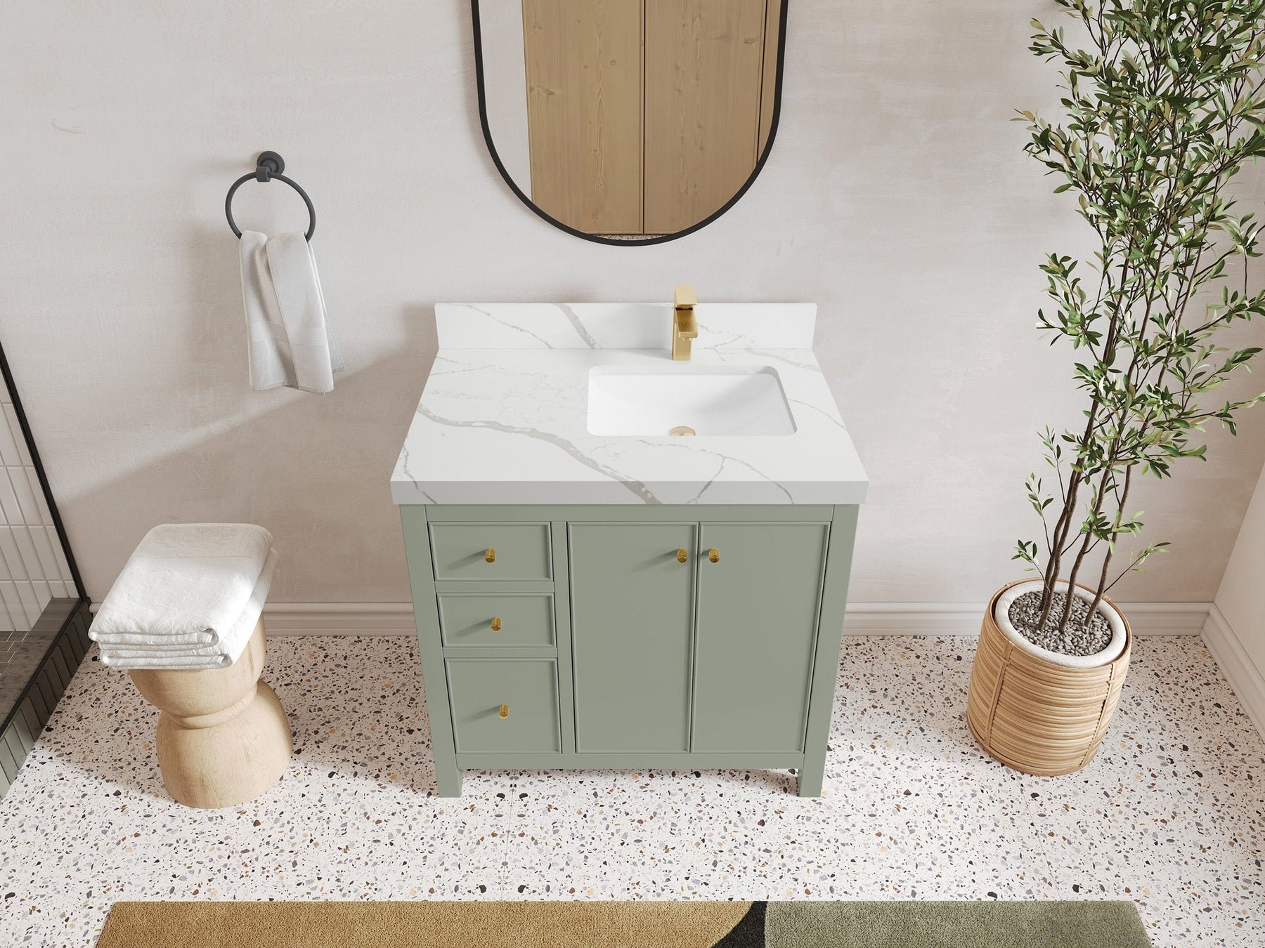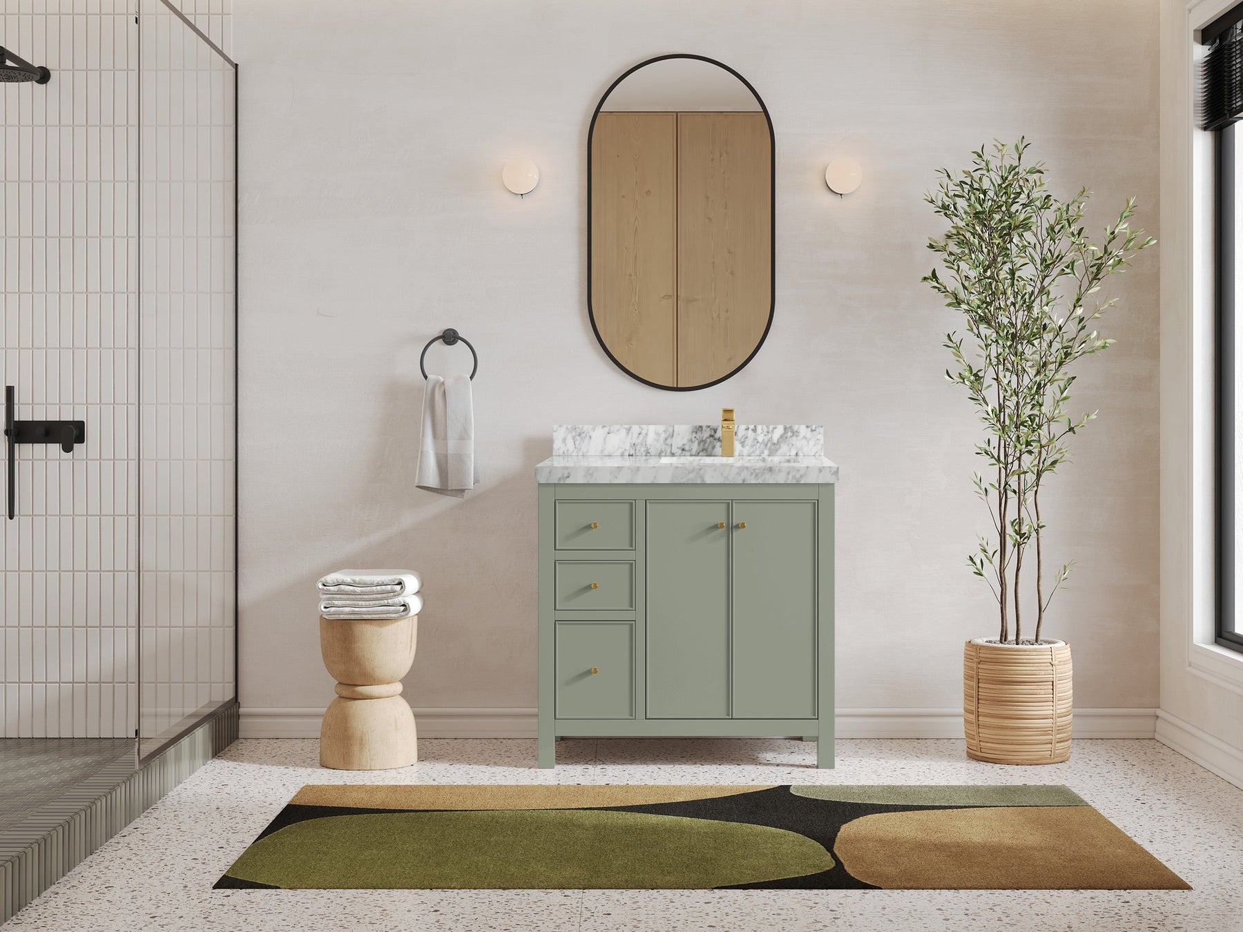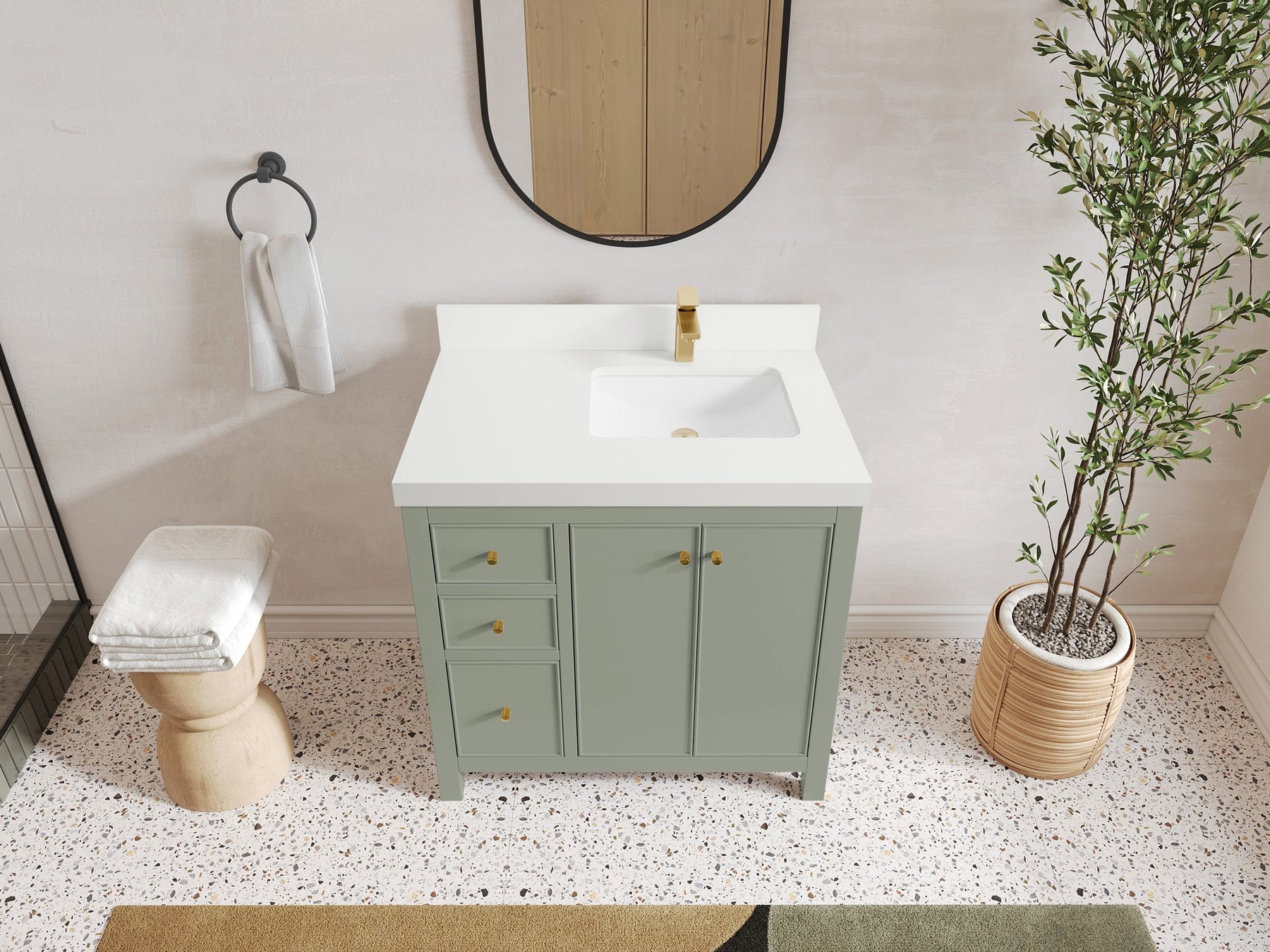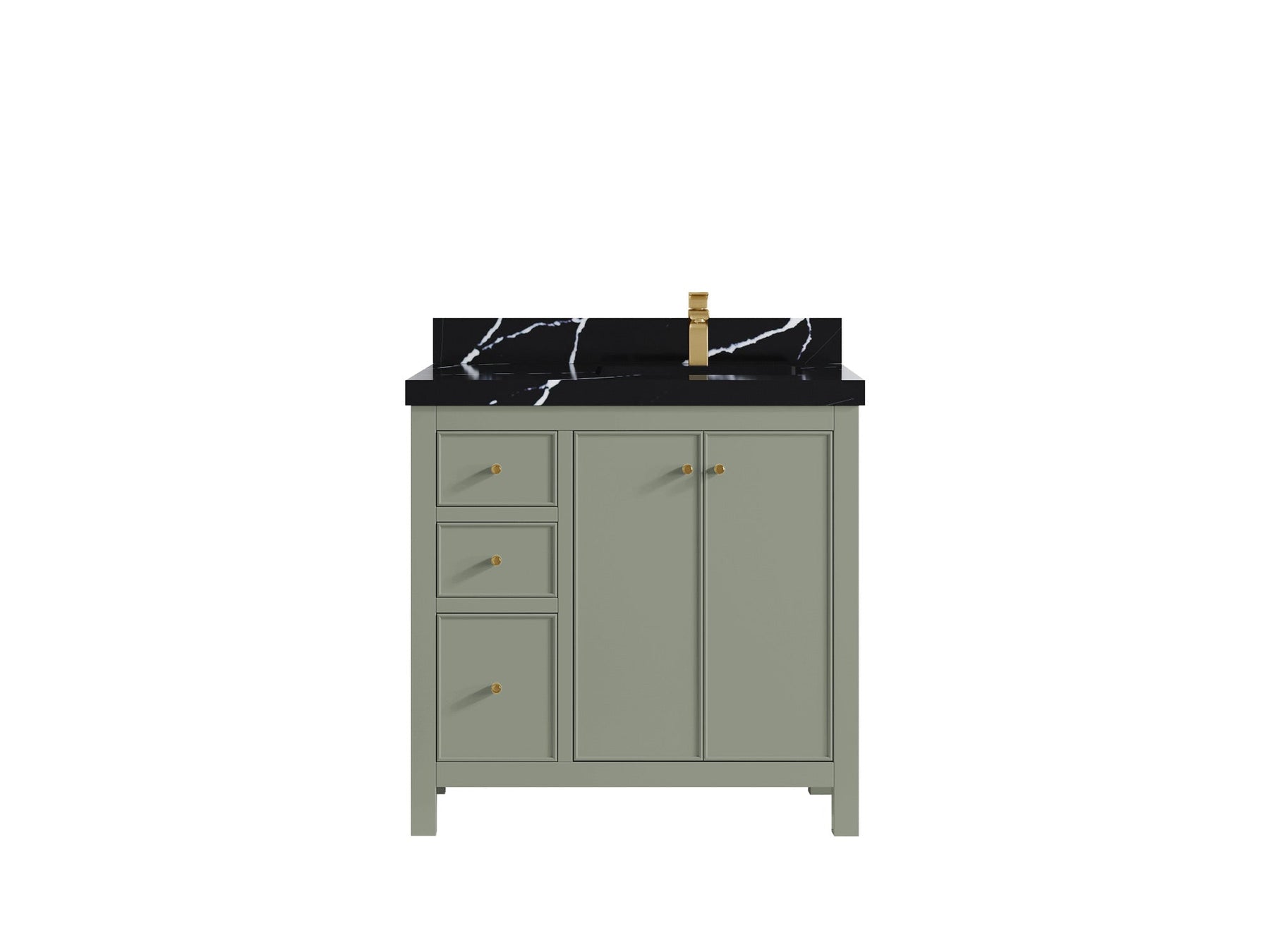 Chicago 36 in. W x 22 in. D Right Offset Sink Bathroom Vanity | Evergreen