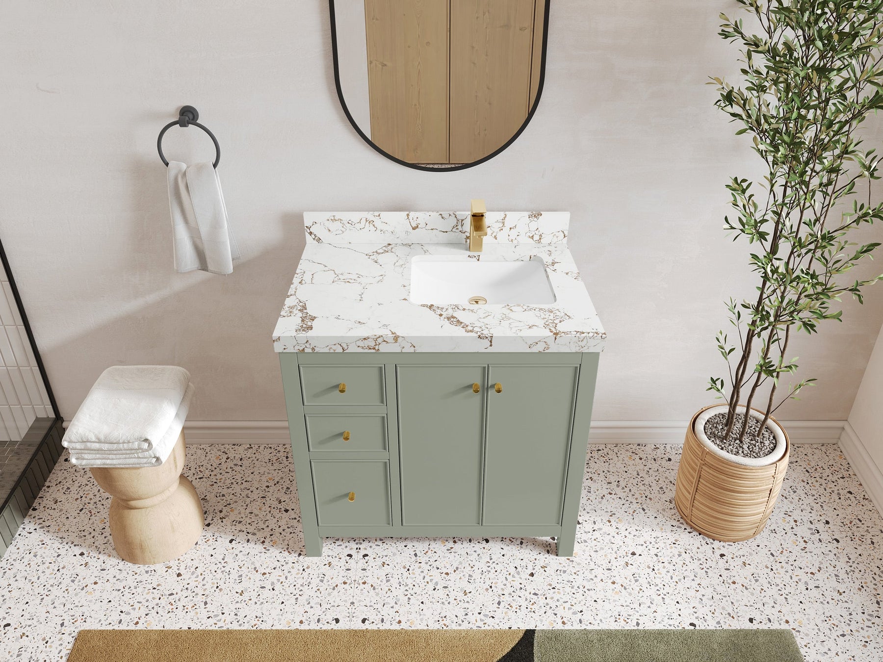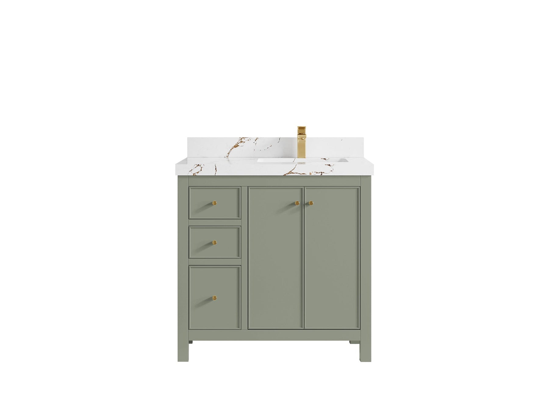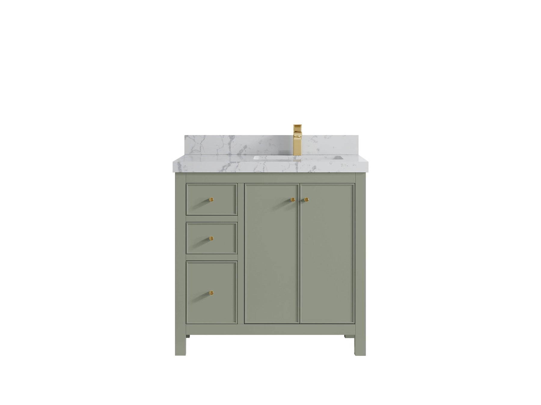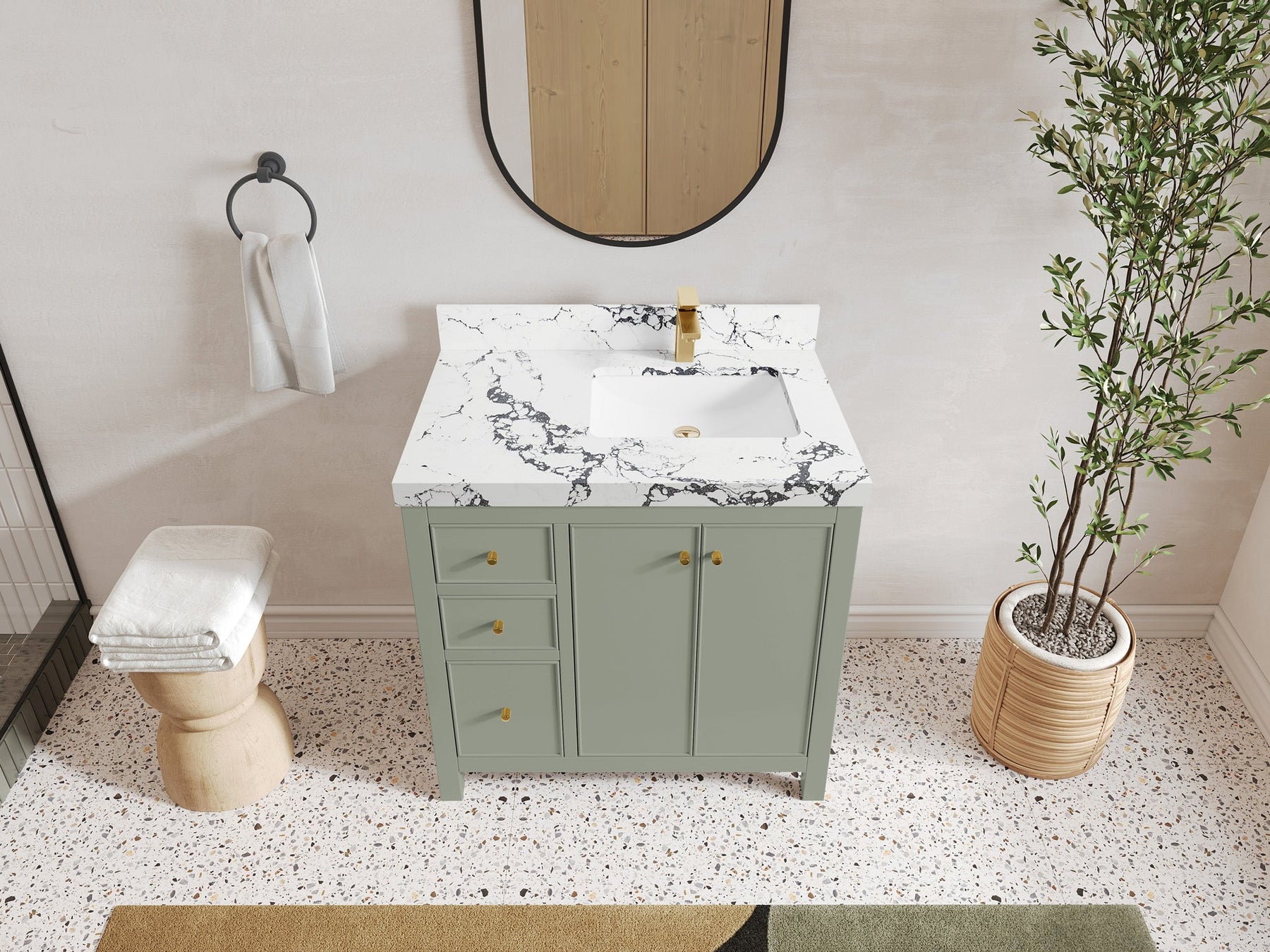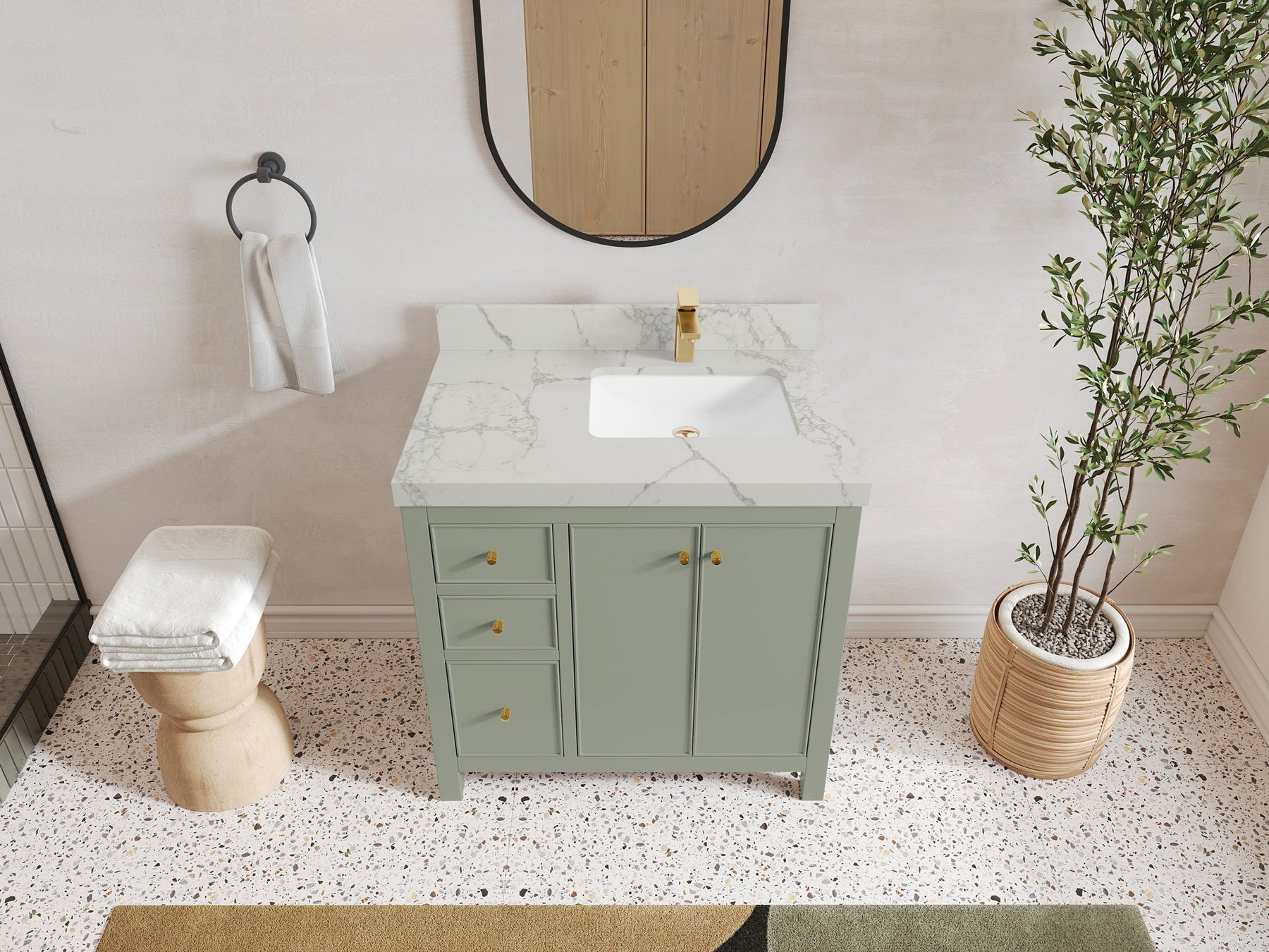 Chicago 36 in. W x 22 in. D Right Offset Sink Bathroom Vanity | Evergreen