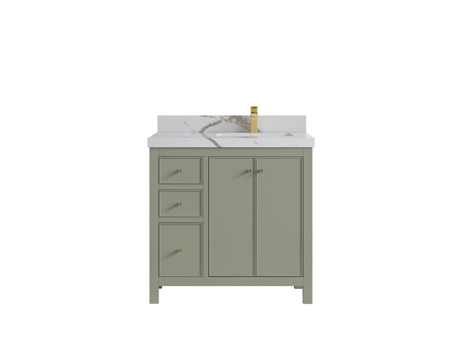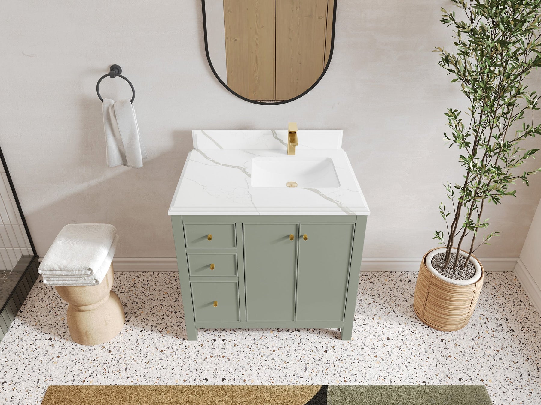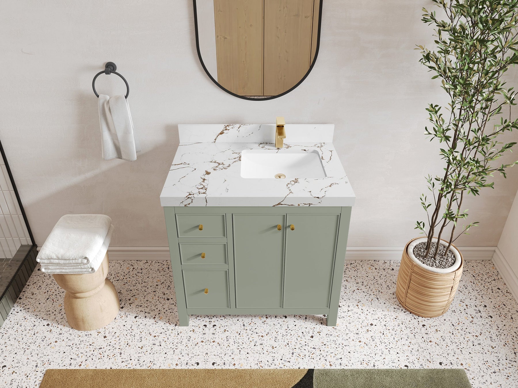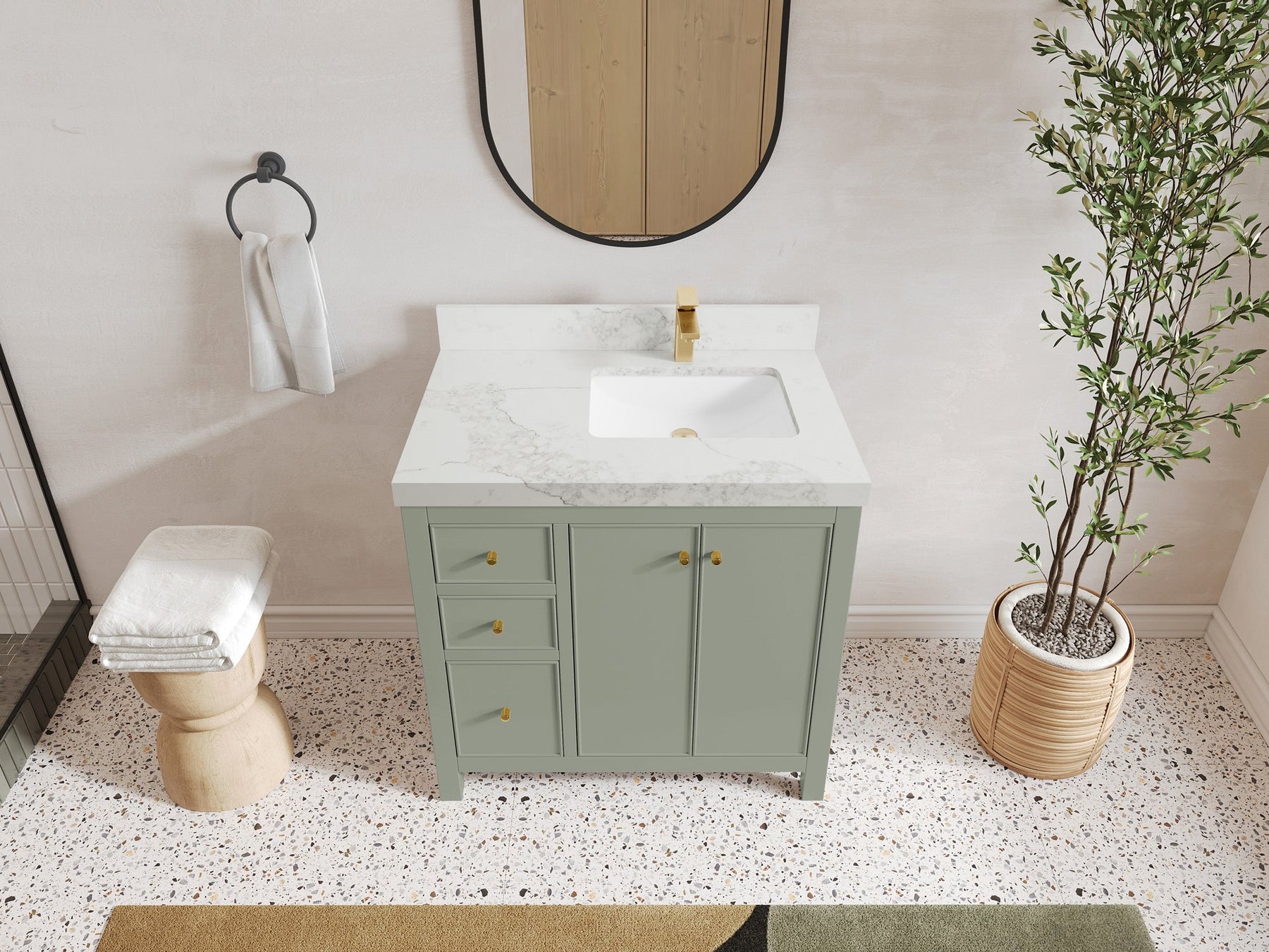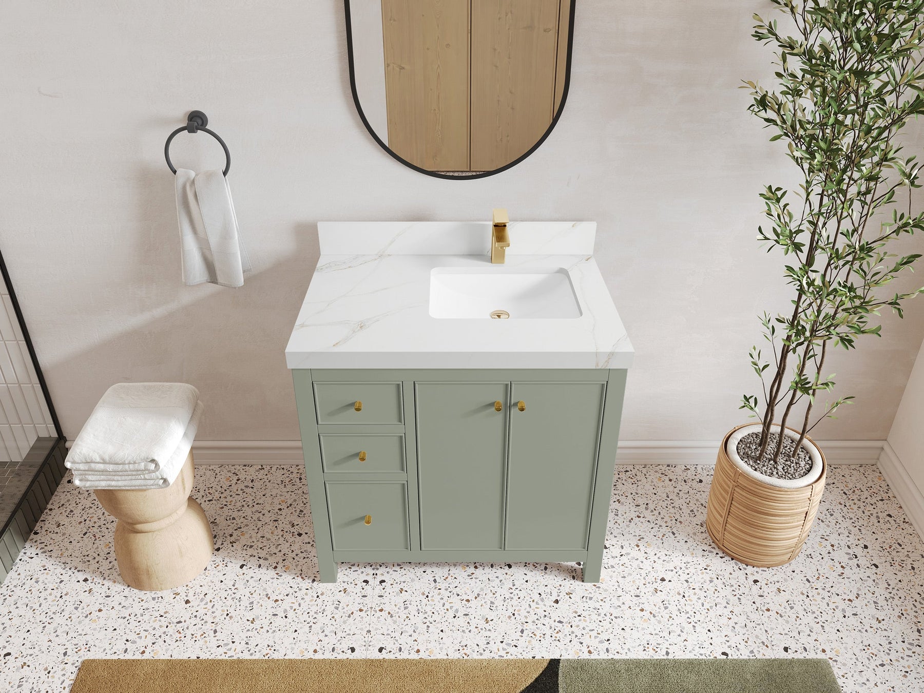 Chicago 36 in. W x 22 in. D Right Offset Sink Bathroom Vanity | Evergreen
