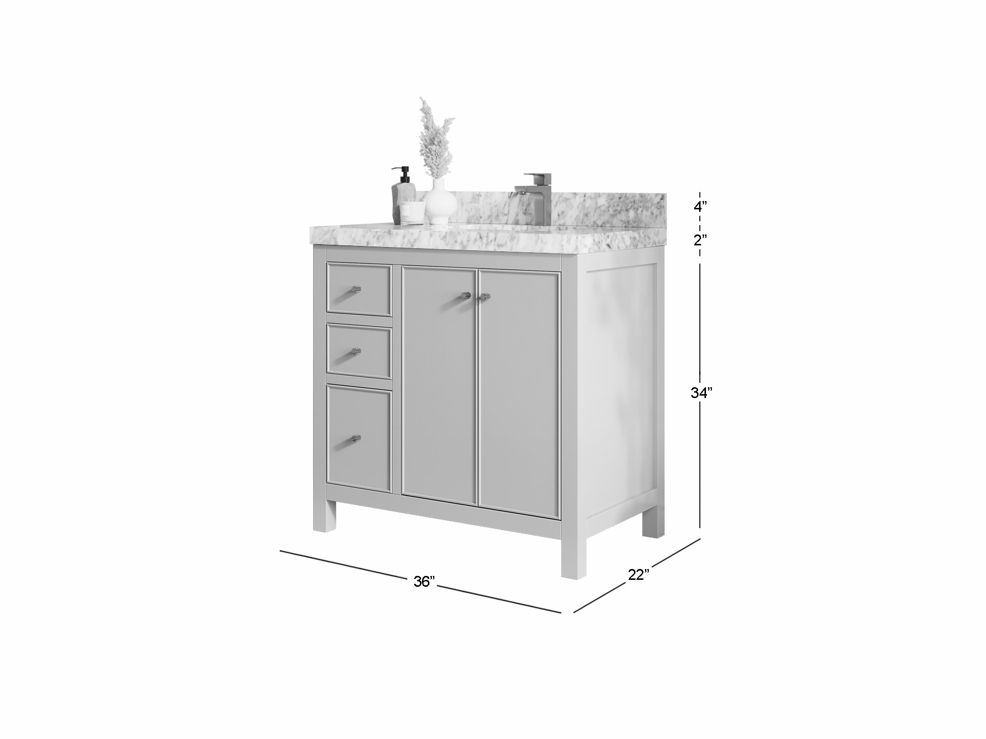 Chicago 36 in. W x 22 in. D Right Offset Sink Bathroom Vanity - Willow Bath and Vanity