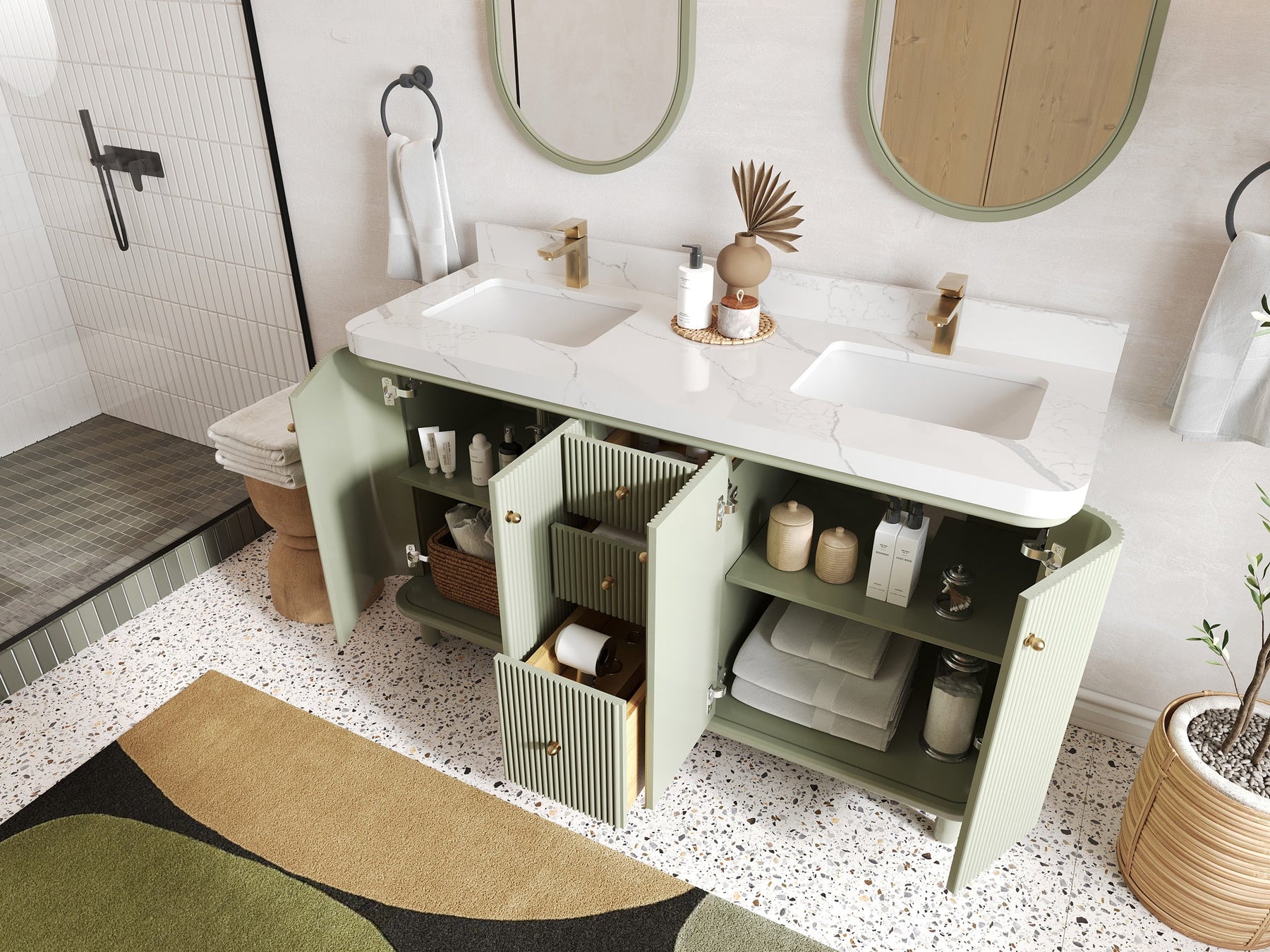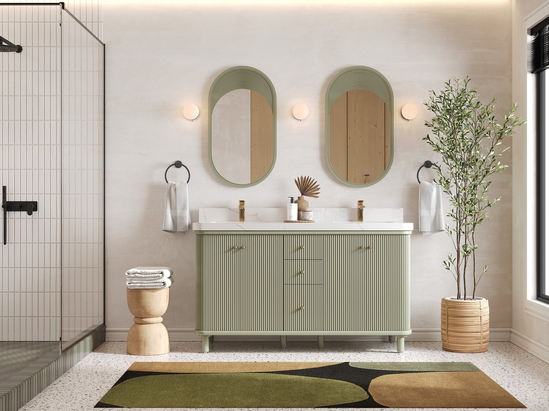 Vanity Countertops options: For Calacatta Laza Quartz, Empira White Quartz, Pure White Quartz, Palissandro Quartz, Calacatta Nuvo Quartz, Carrara Quartz, Carrara Marble, Calacatta Gold Quartz, Calacatta Sienna Quartz we have Straight - Mitered Edge option.