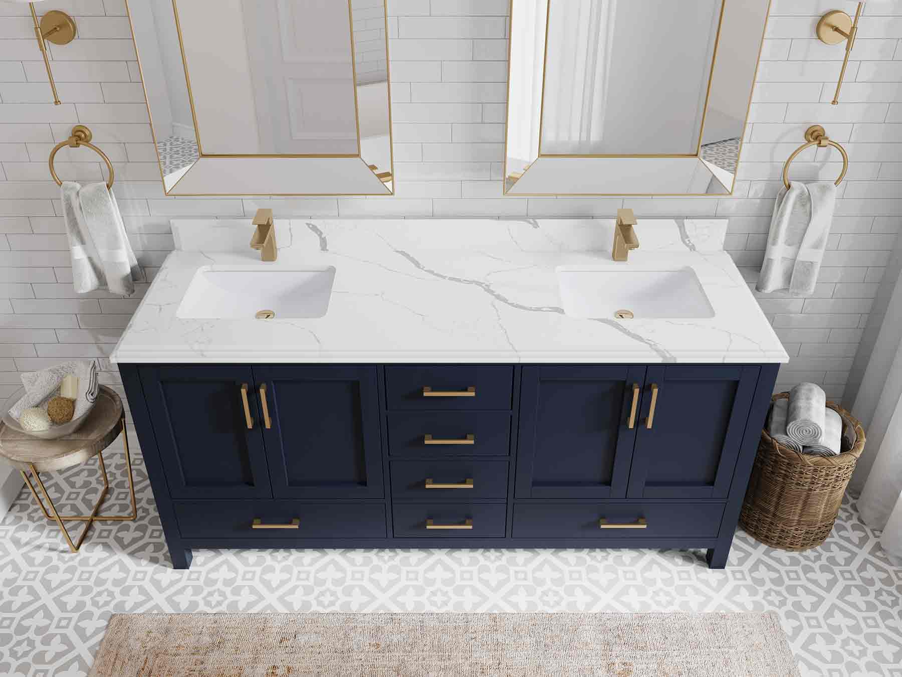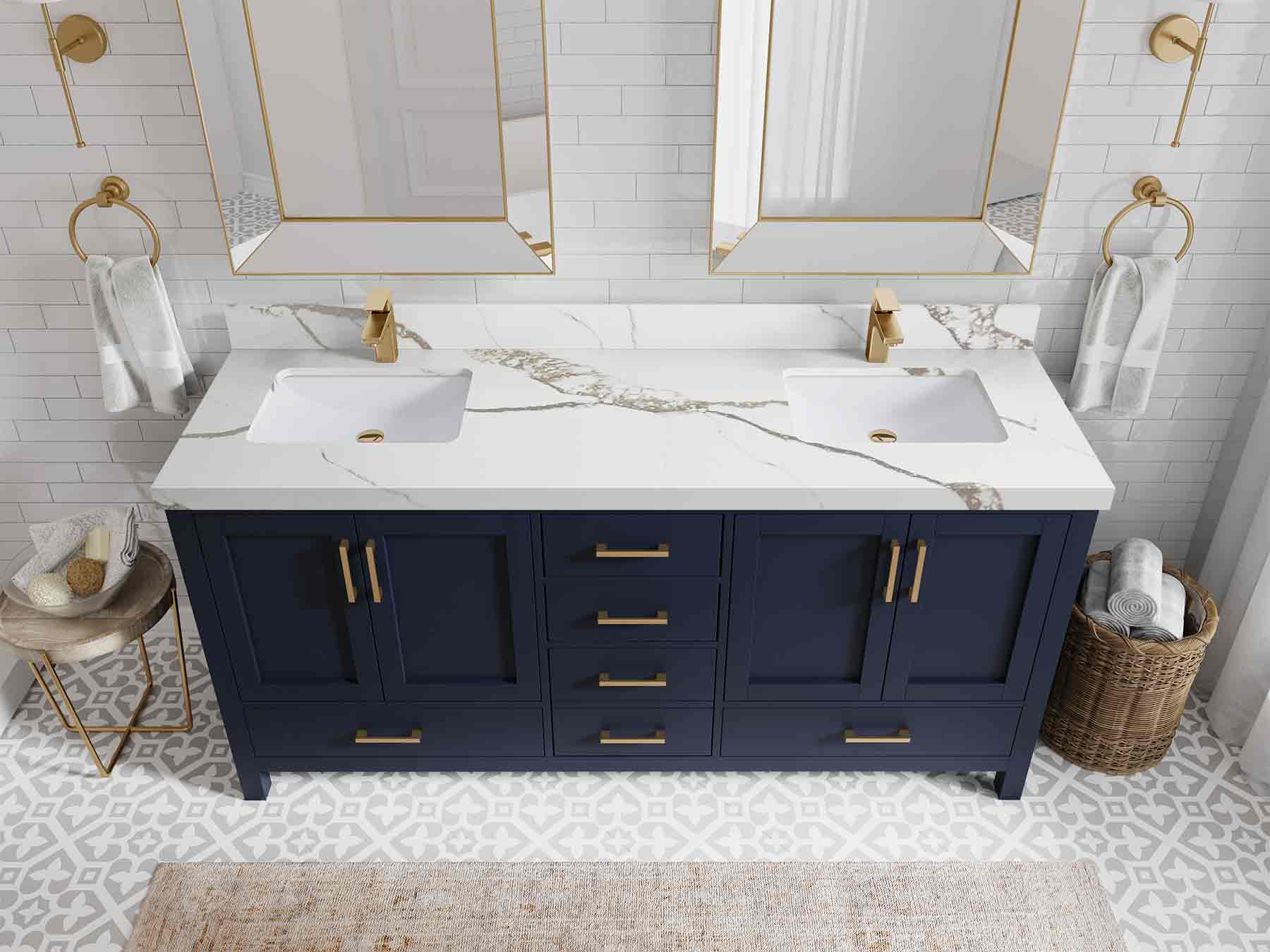 Malibu 72 in. W x 22 in. D Double Sink Bathroom Vanity | Navy Blue