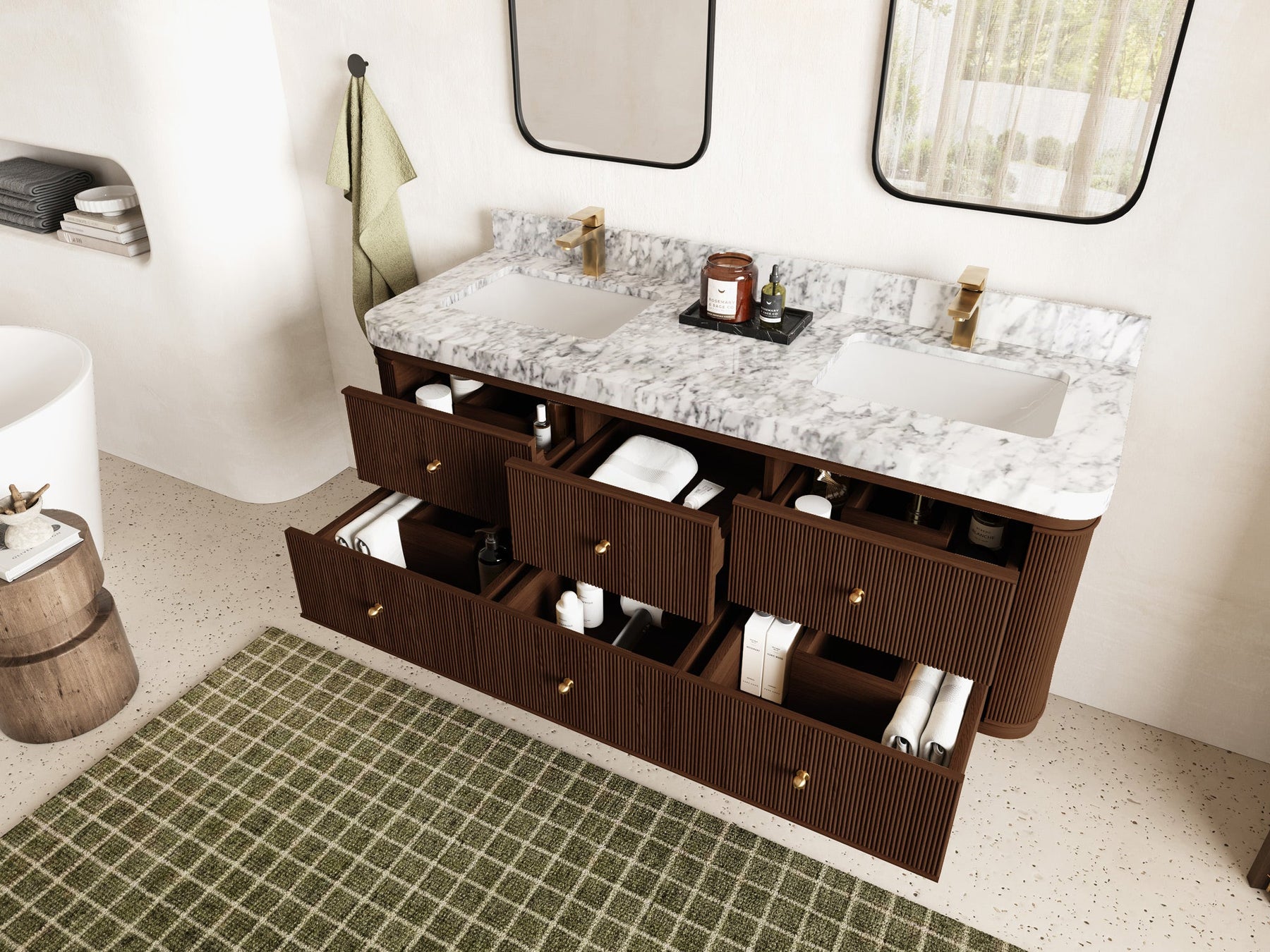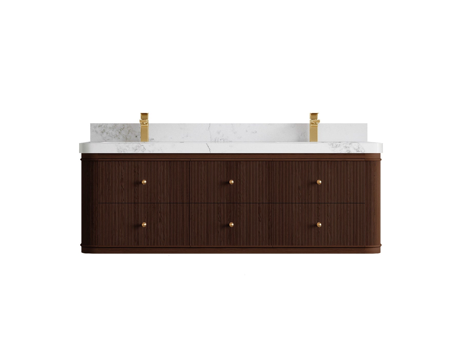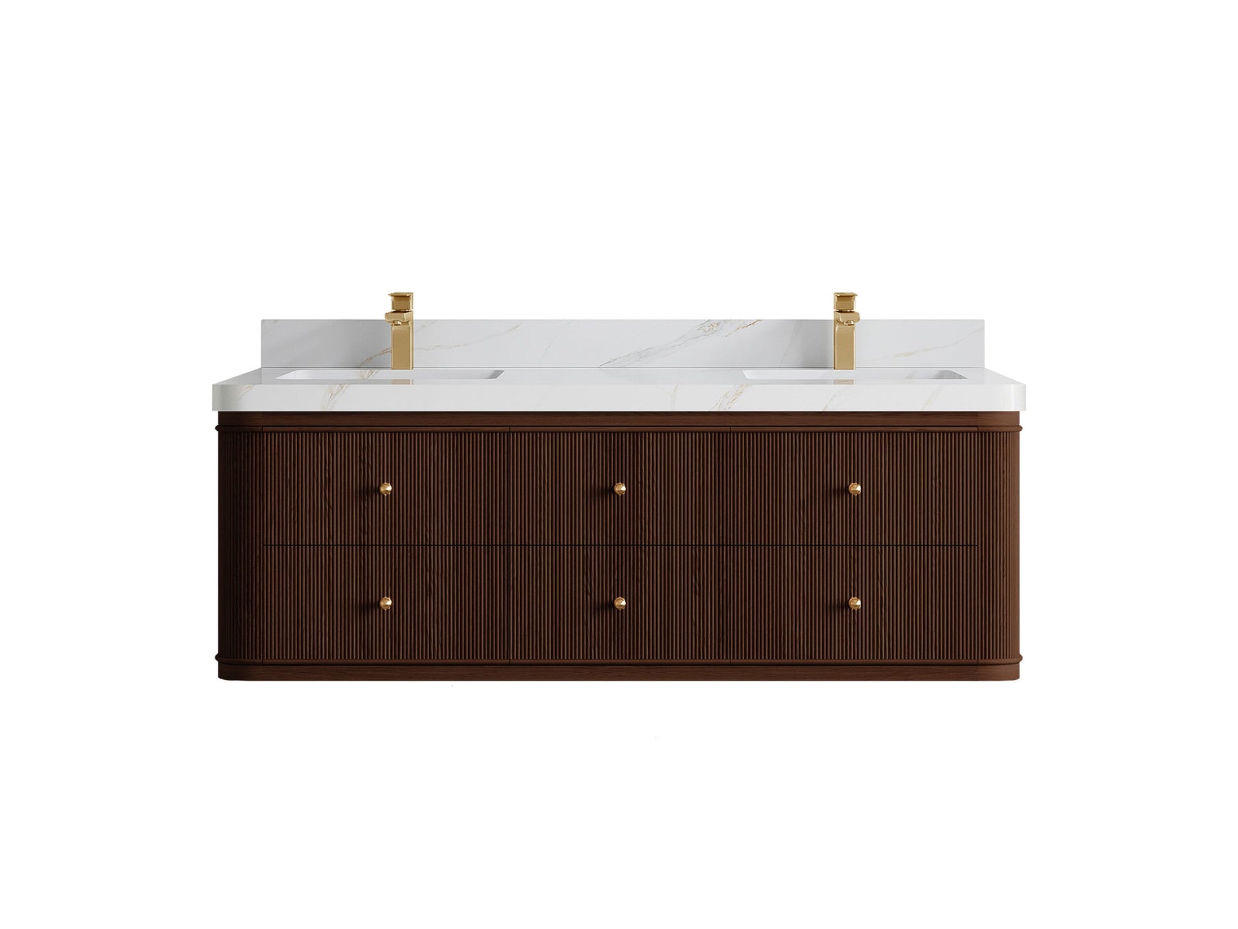 Vanity Countertops options: For Calacatta Laza Quartz, Empira White Quartz, Pure White Quartz, Palissandro Quartz, Calacatta Nuvo Quartz, Carrara Quartz, Calacatta Gold Quartz, Calacatta Sienna Quartz we have Straight - Mitered Edge option.