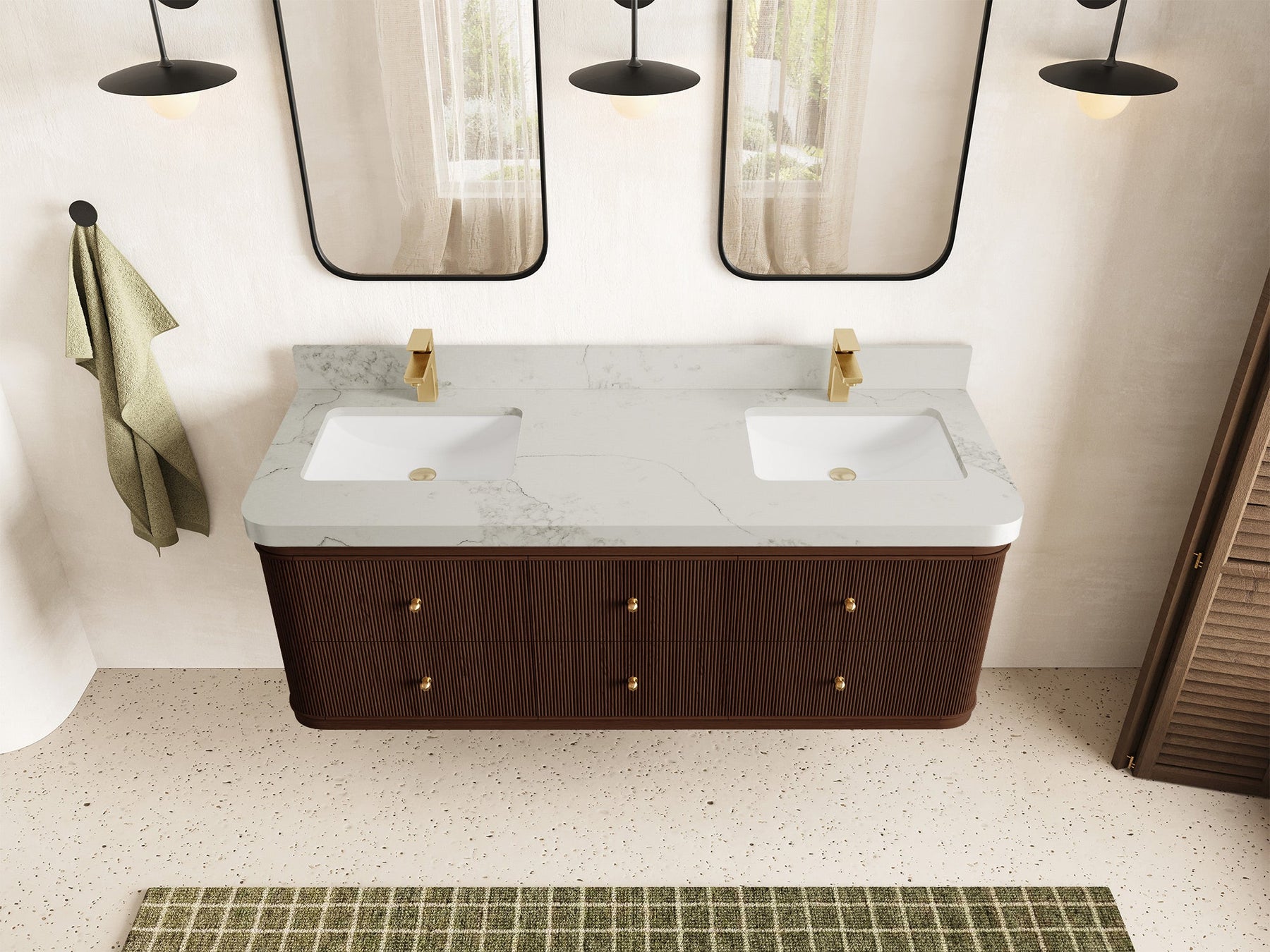 Faucet Hole(S): Comes with Single Faucet, 8 (in.) Widespread Faucet, Wall mount Faucets - Only Available for White Quartz and Carrara Quartz. (PLEASE ADD THIS CONFIGURATION UNDER COUNTERTOPS SECTION )