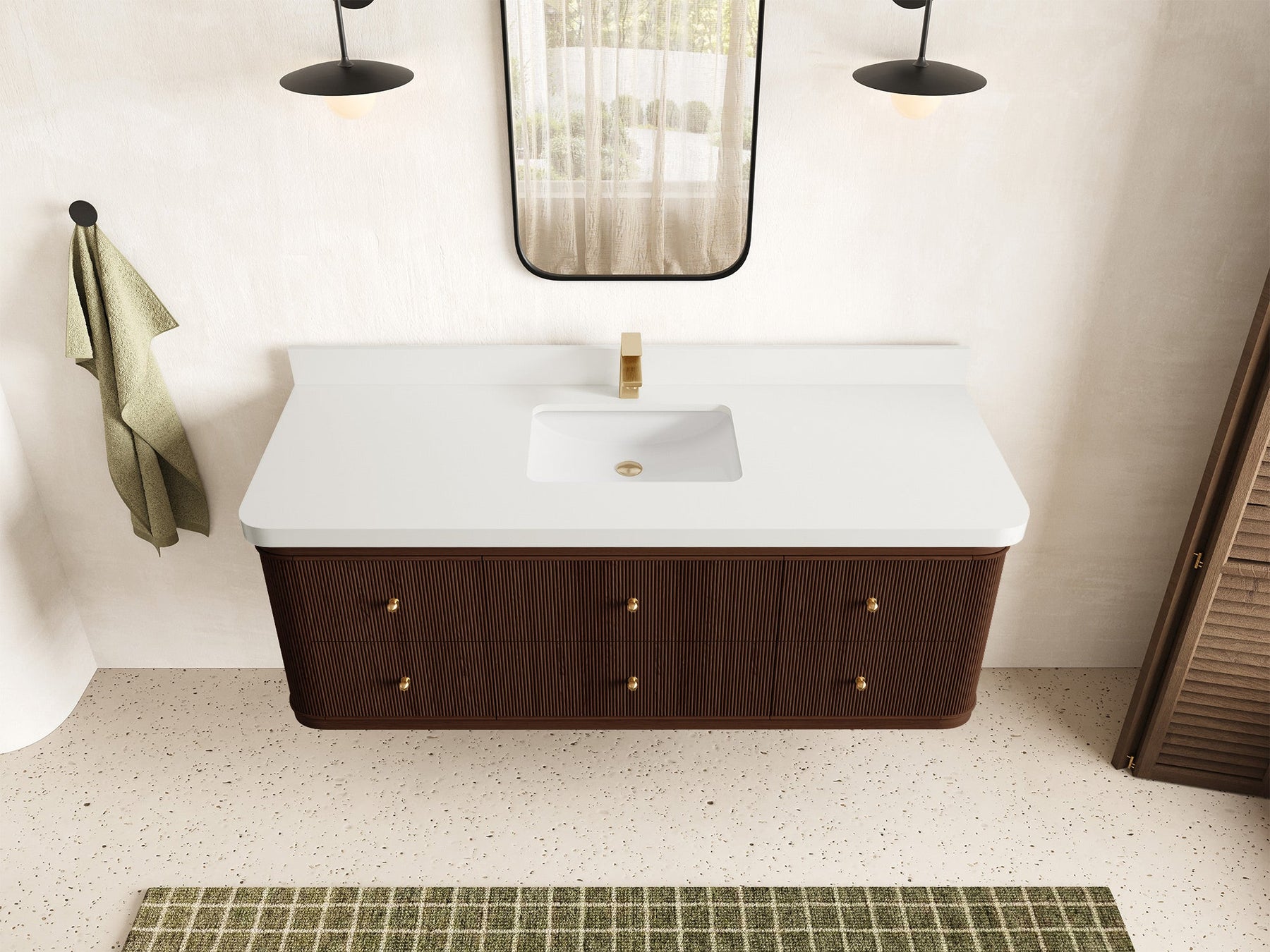 Hampton Floating Teak 60 in. W x 22 in. D Single Sink Bathroom Vanity | Dark Walnut Finish Teak