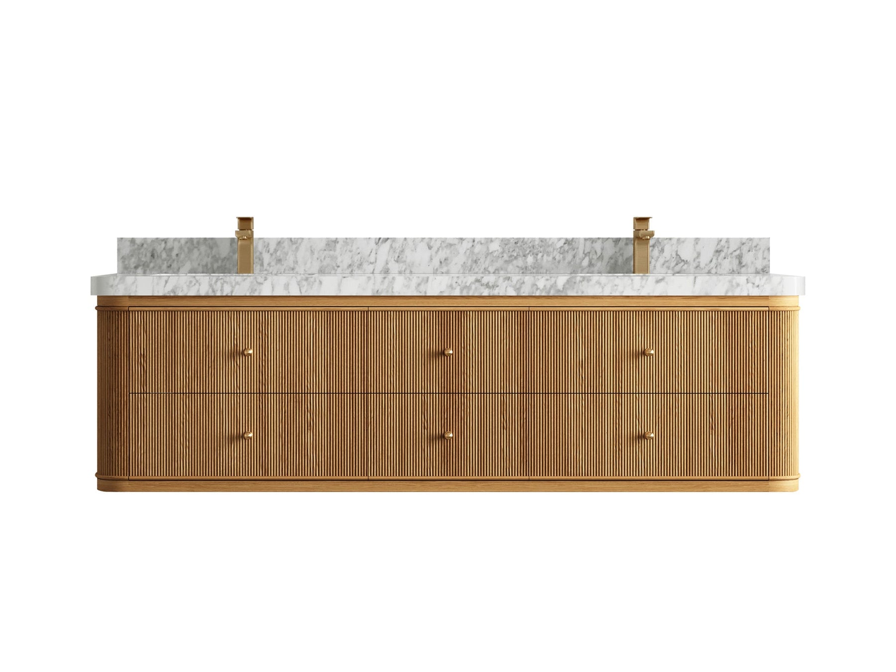 Elevate your bathroom with the Hampton Floating Teak Collection, where sleek contemporary design meets the natural warmth of fine teak wood. Featuring reeded drawer fronts, clean lines, and a luxurious white quartz countertop, this double vanity blends form and function effortlessly. The floating design creates a spacious, airy aesthetic perfect for modern interiors while maximizing storage with an elegant, minimalist appeal.