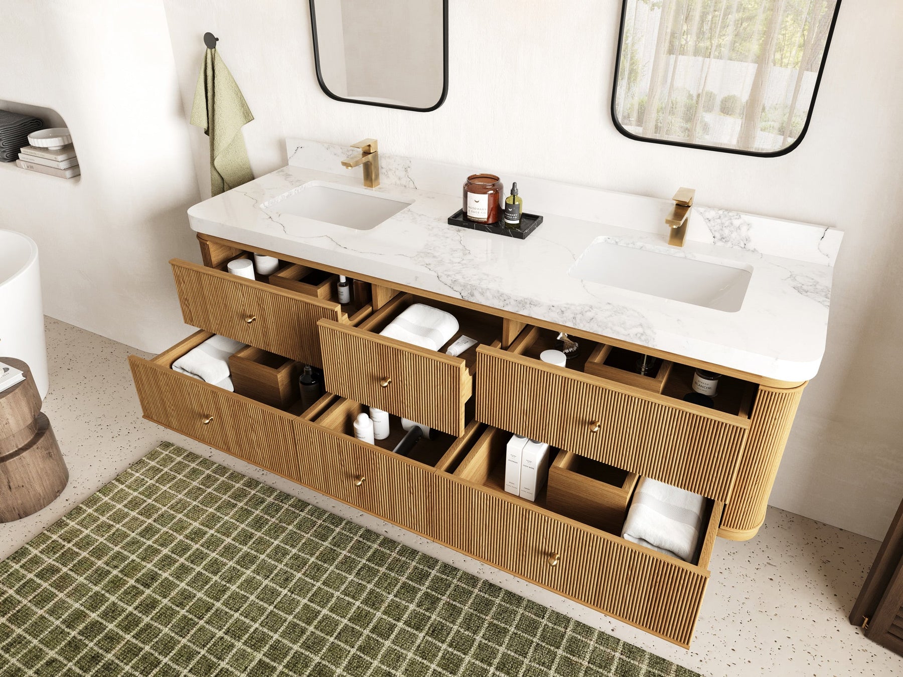 2. Soft-Close Storage Drawers A thoughtfully arranged system of soft-close drawers provides organized, generous storage for essentials, seamlessly combining utility with elegance.