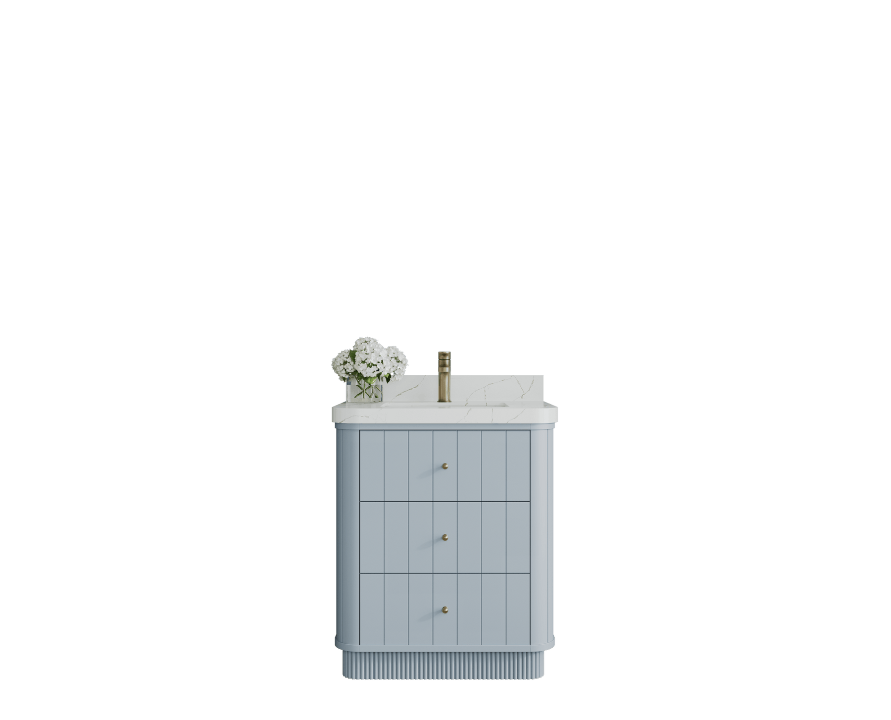 Fluted design – vertically grooved fronts create architectural depth and dimension.