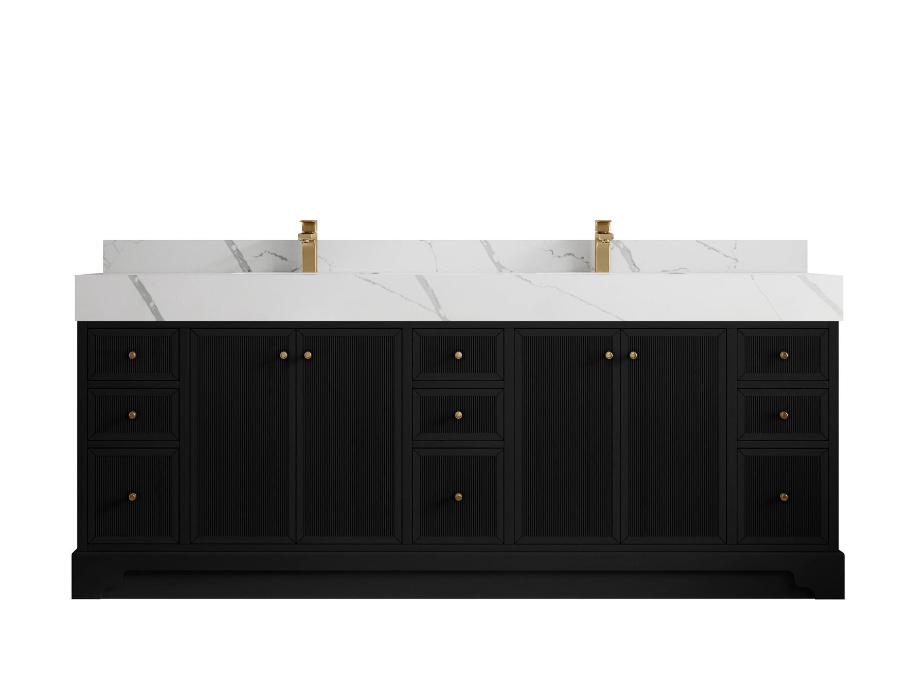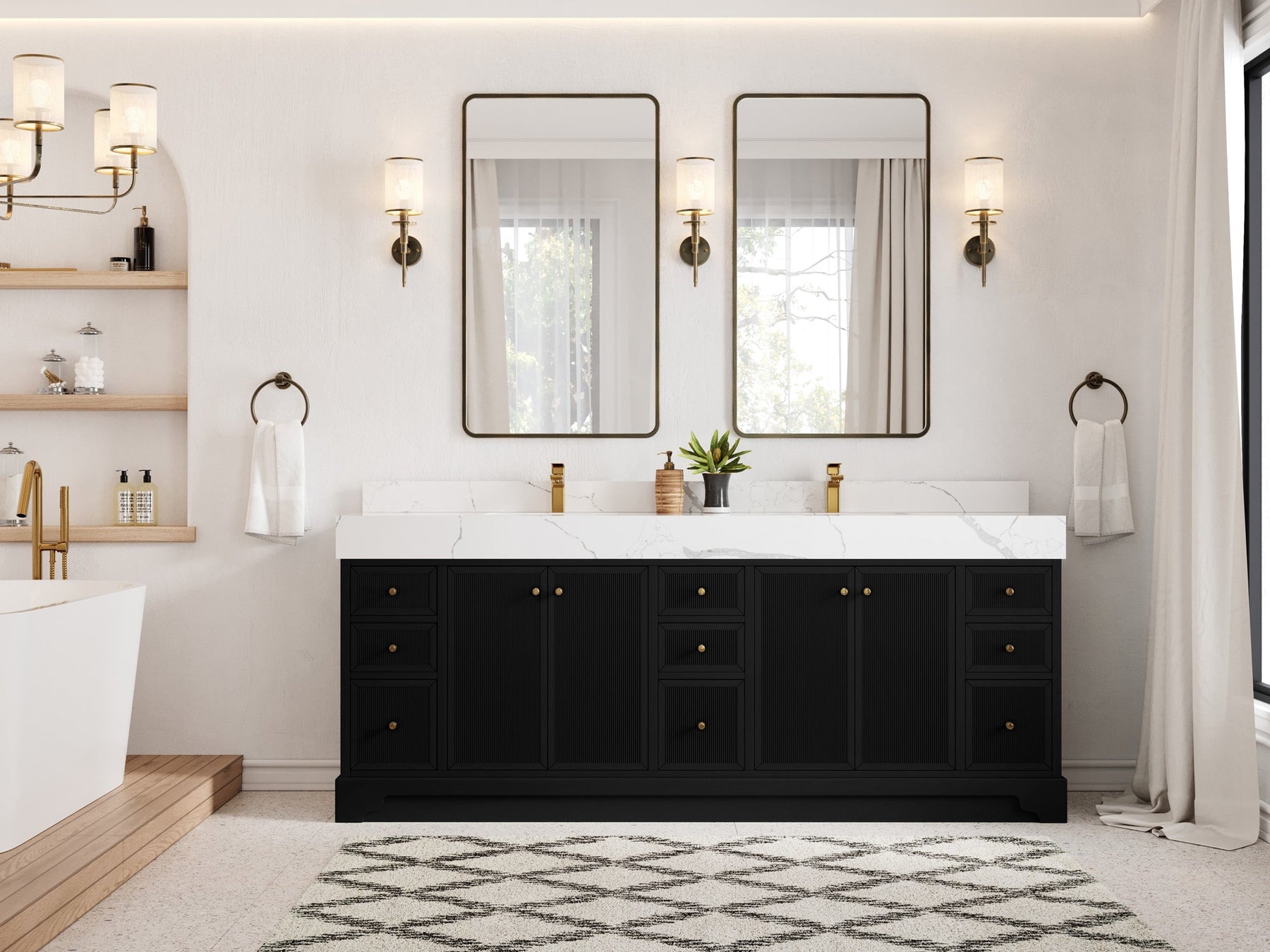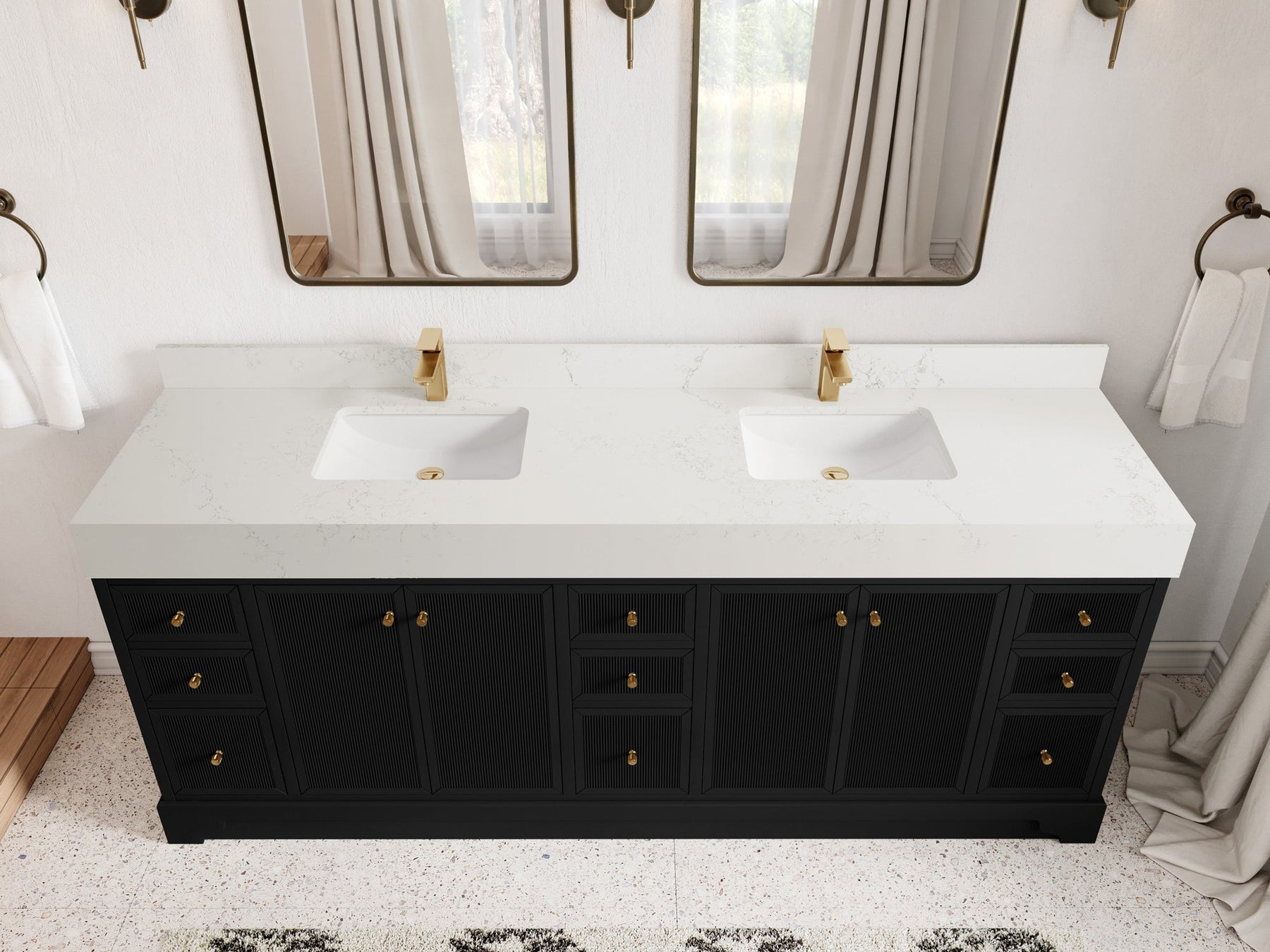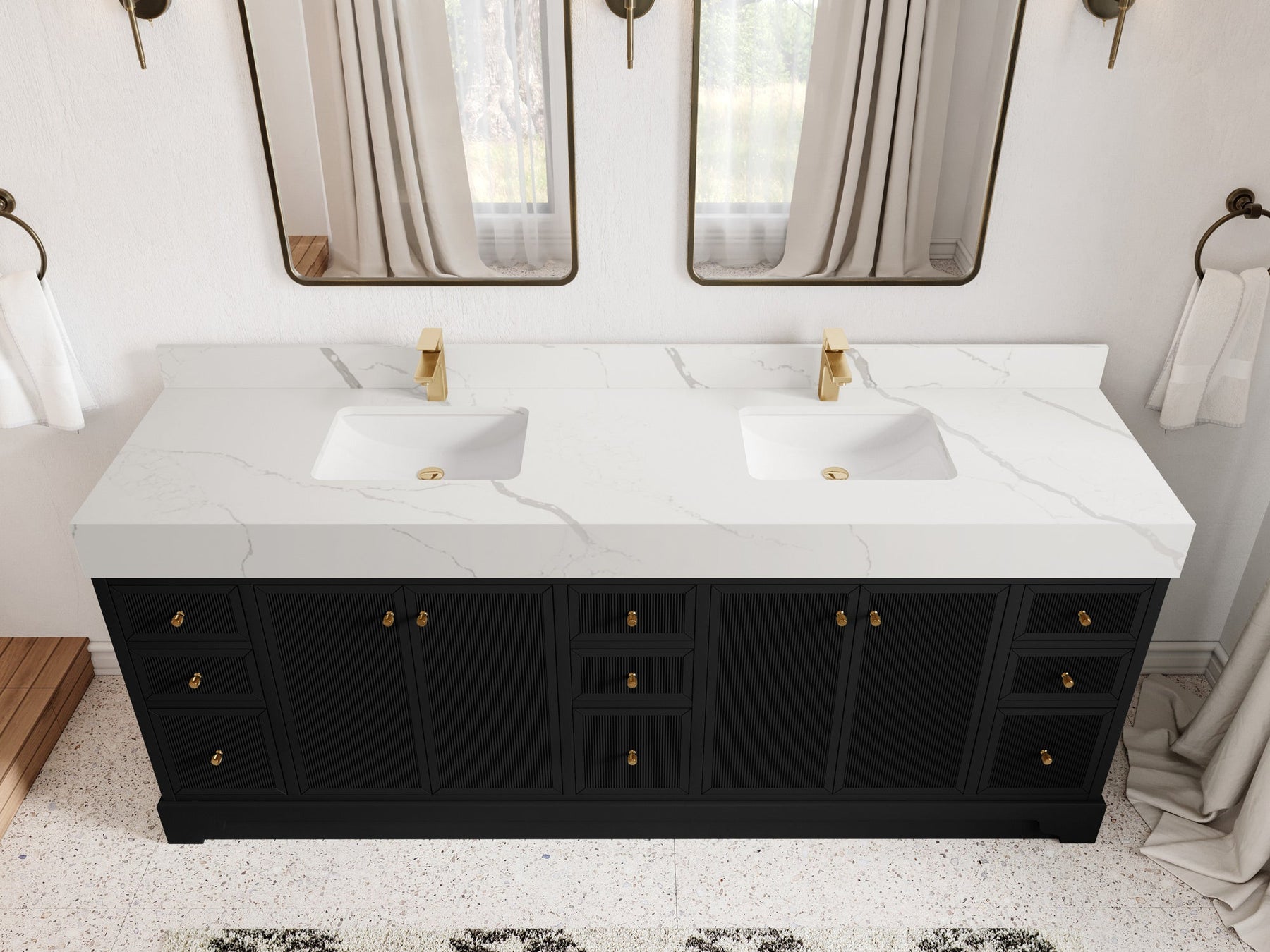 Vanity Countertops options: Straight edge (Calacatta Laza Quartz, Calacatta Nuvo Quartz, Arabescato Marble, Carrara Quartz, Empira White Quartz, Palissandro Quartz, White Quartz, Terrazzo Arctic Breeze, Terrazzo Golden Dusk)