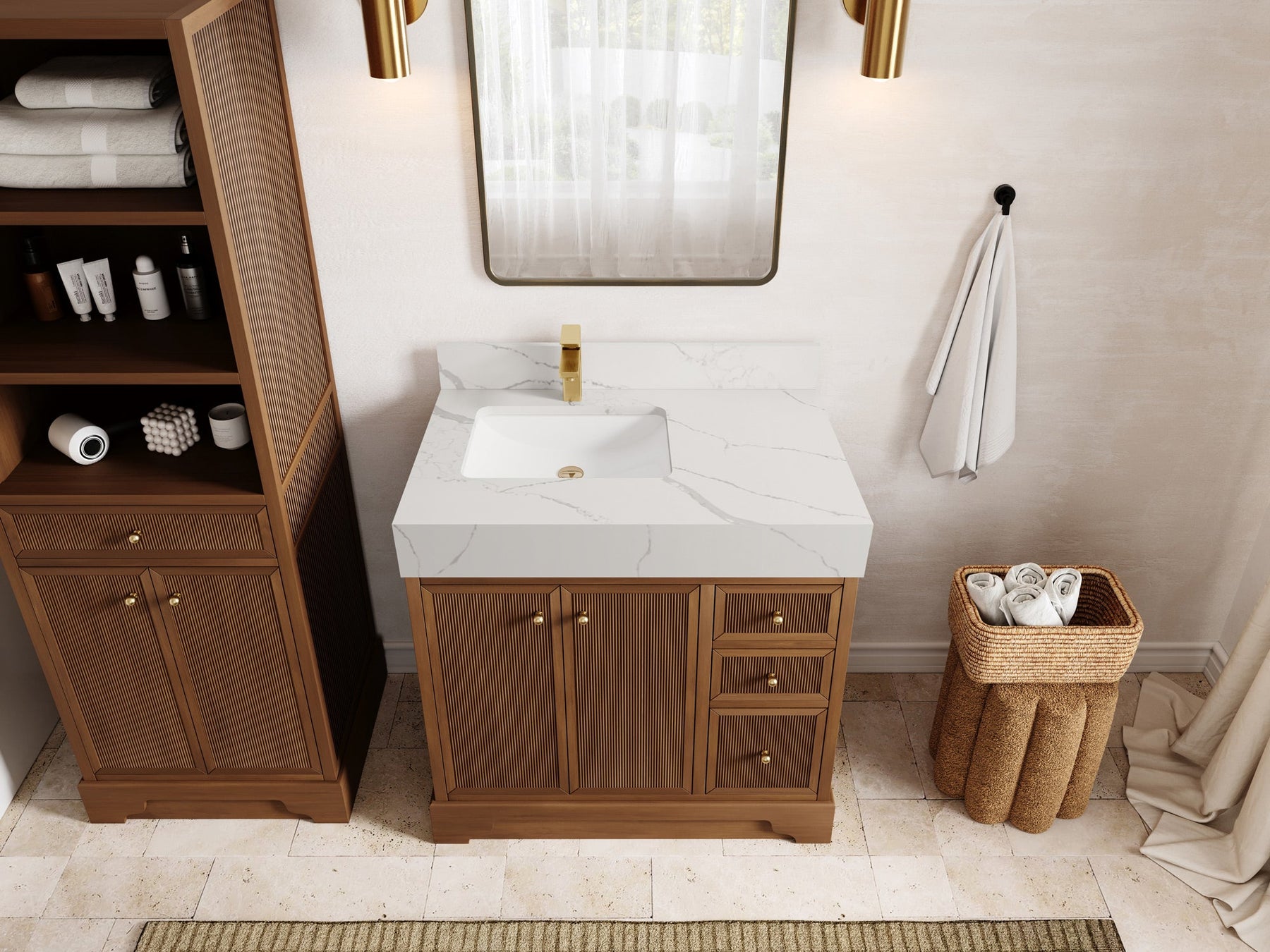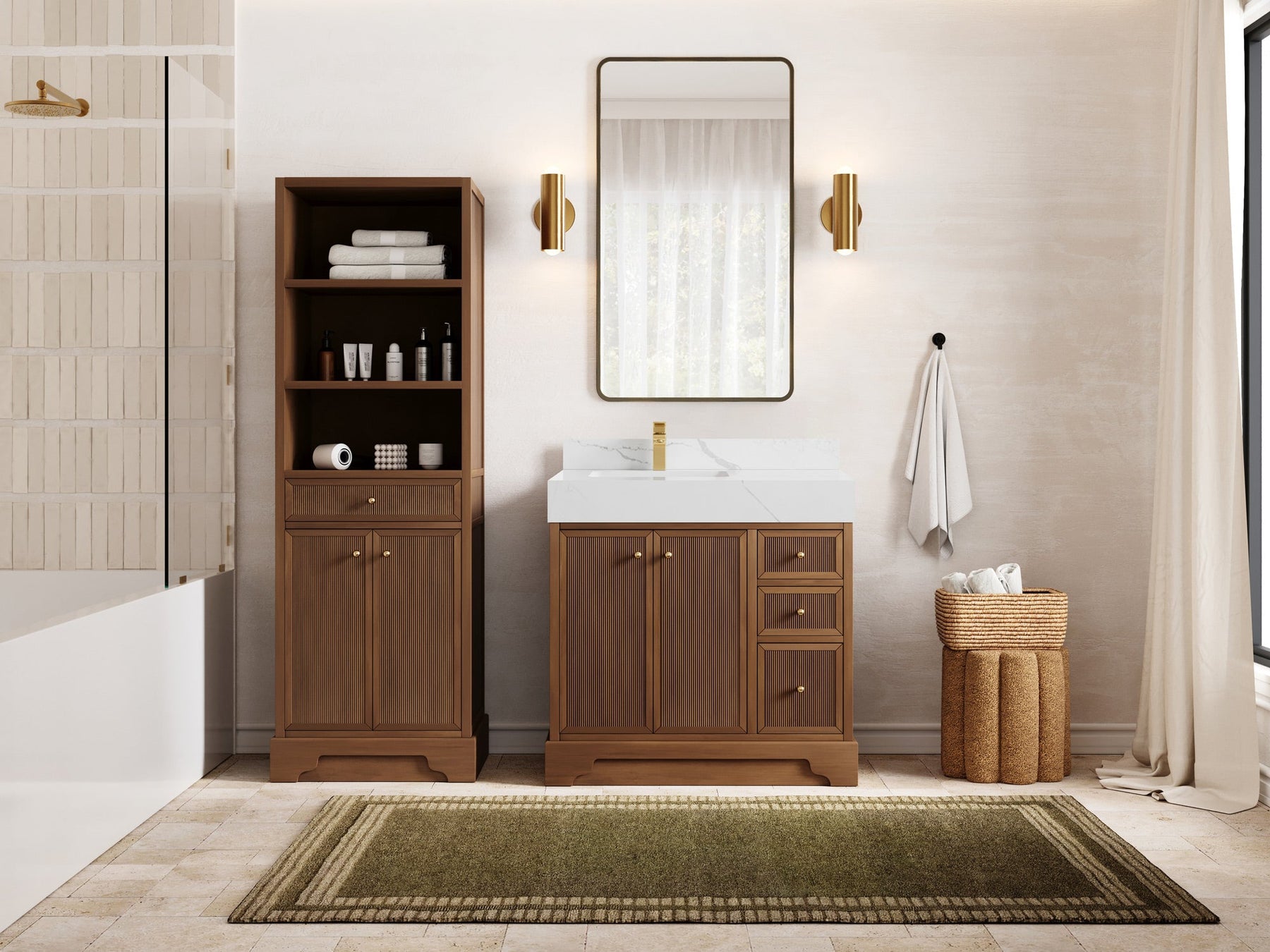 Vanity Countertops options: Calacatta Laza Quartz, Calacatta Nuvo Quartz, Carrara Quartz, Palissandro Quartz, Empira White Quartz, Pure White Quartz - Straight / Mitered Edge option.