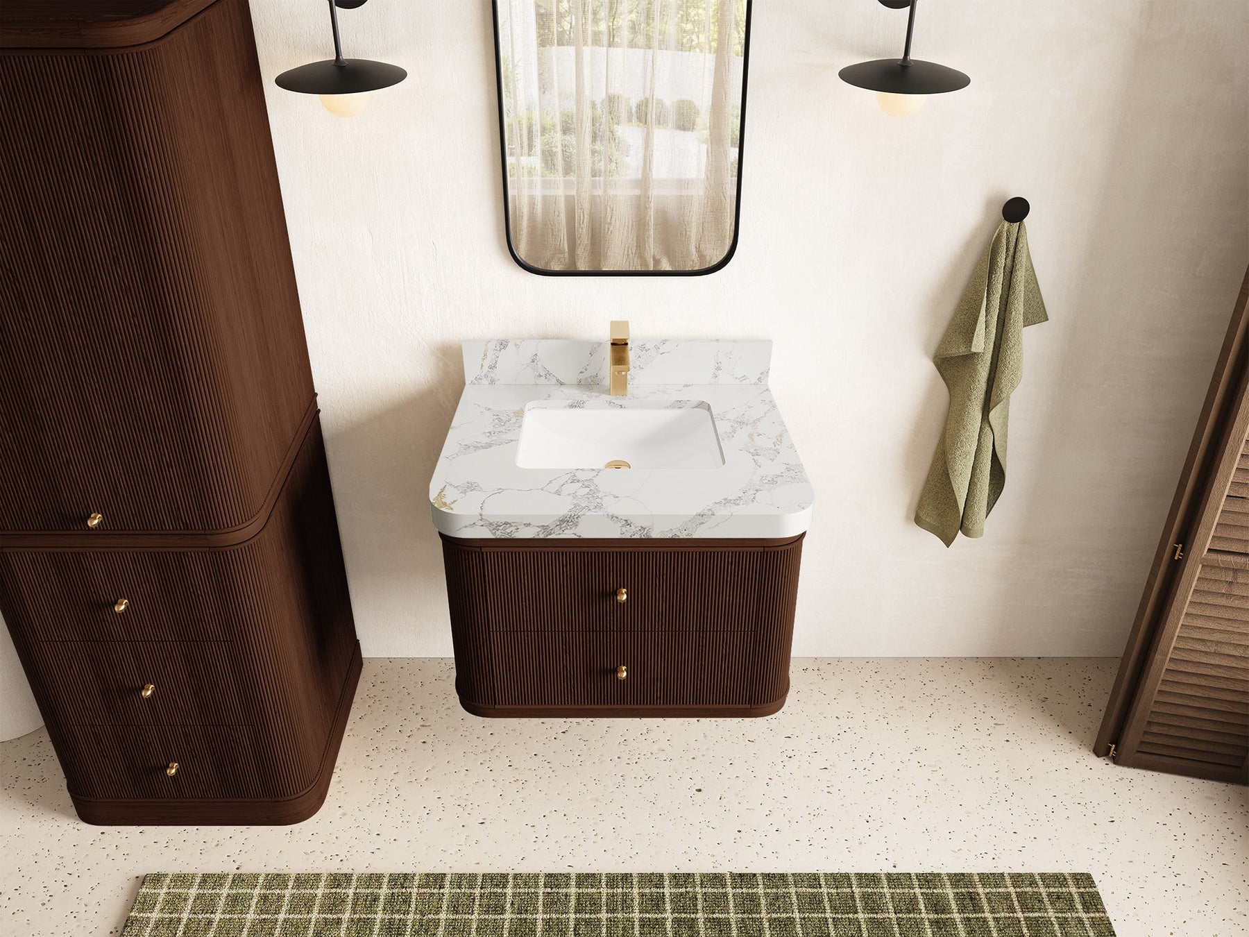 Faucet Hole(S): Comes with Single Faucet, 8 (in.) Widespread Faucet, Wall mount Faucets - Only Available for White Quartz and Carrara Quartz. (PLEASE ADD THIS CONFIGURATION UNDER COUNTERTOPS SECTION )