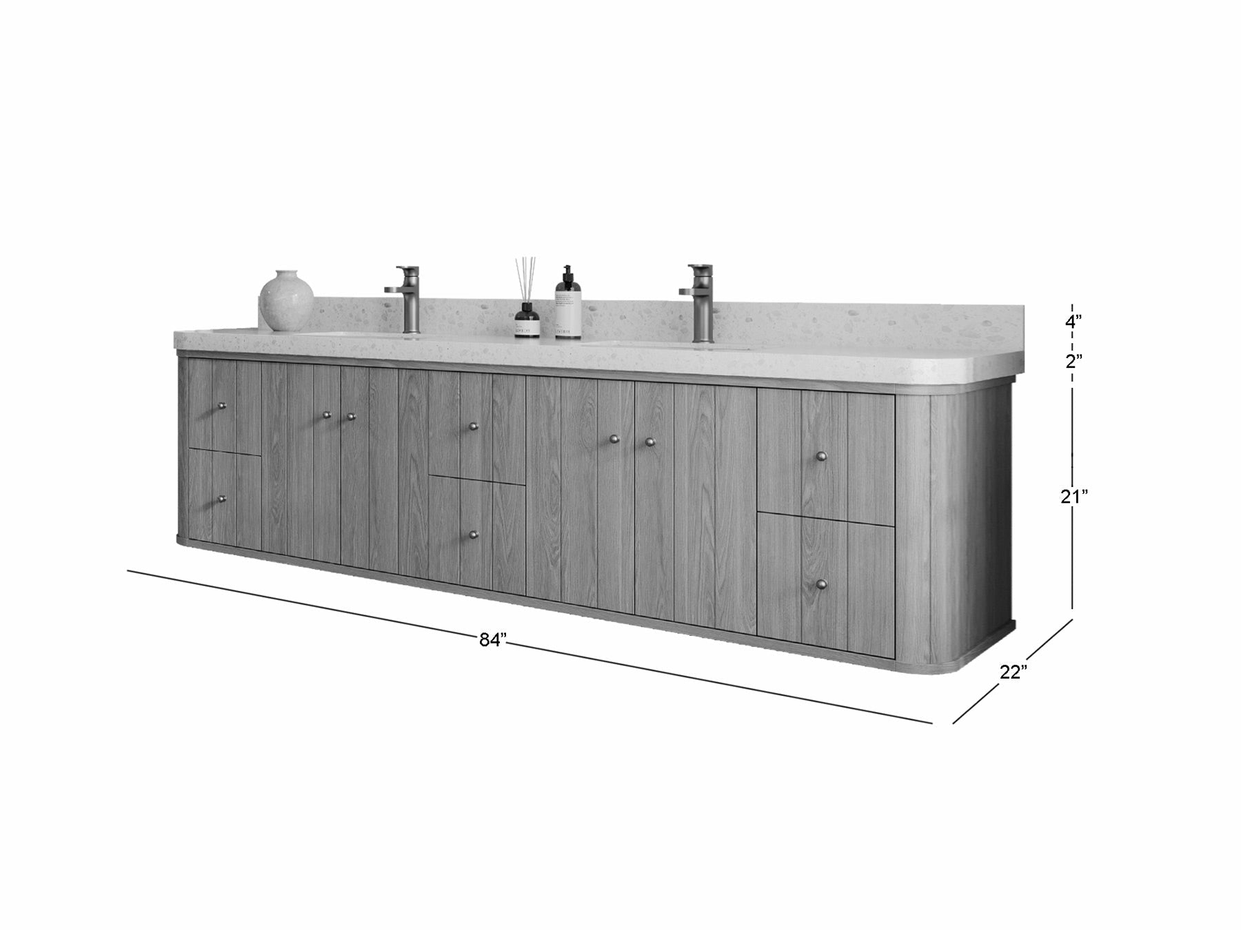 Houston White Oak 84 in. W x 22 in. D Curved Edge Double Sink Bathroom Vanity - Willow Bath and Vanity