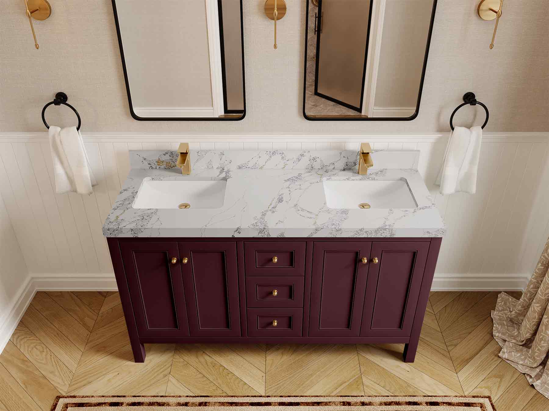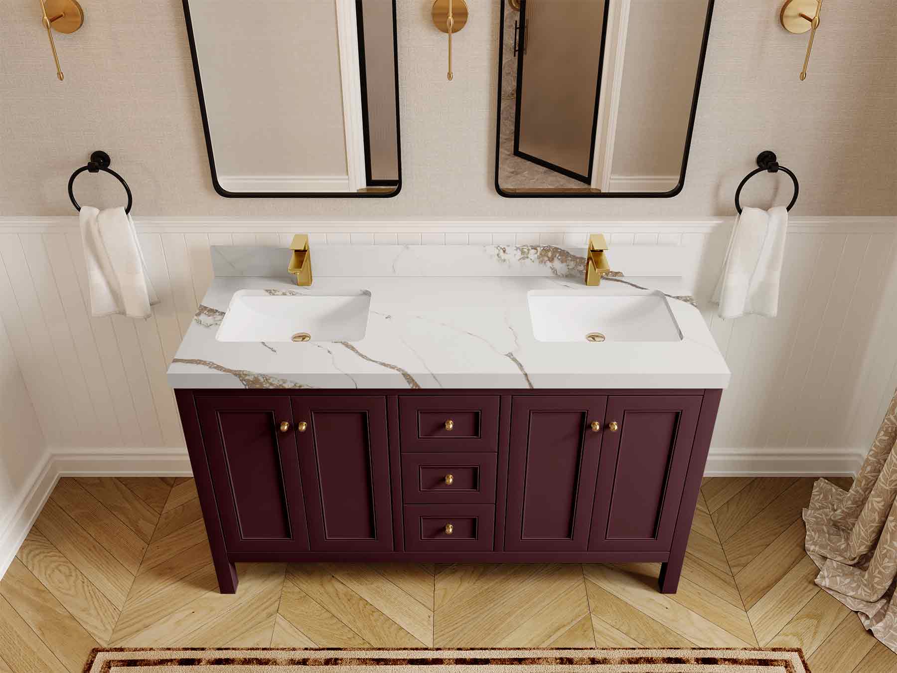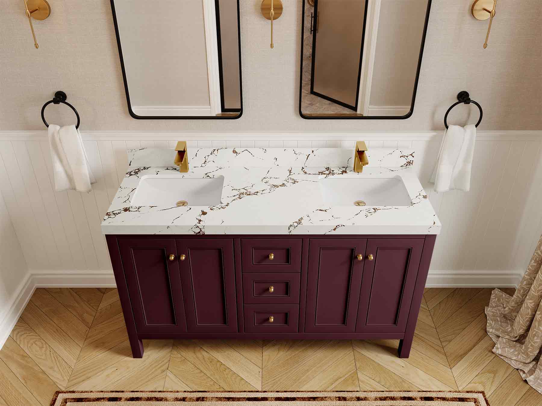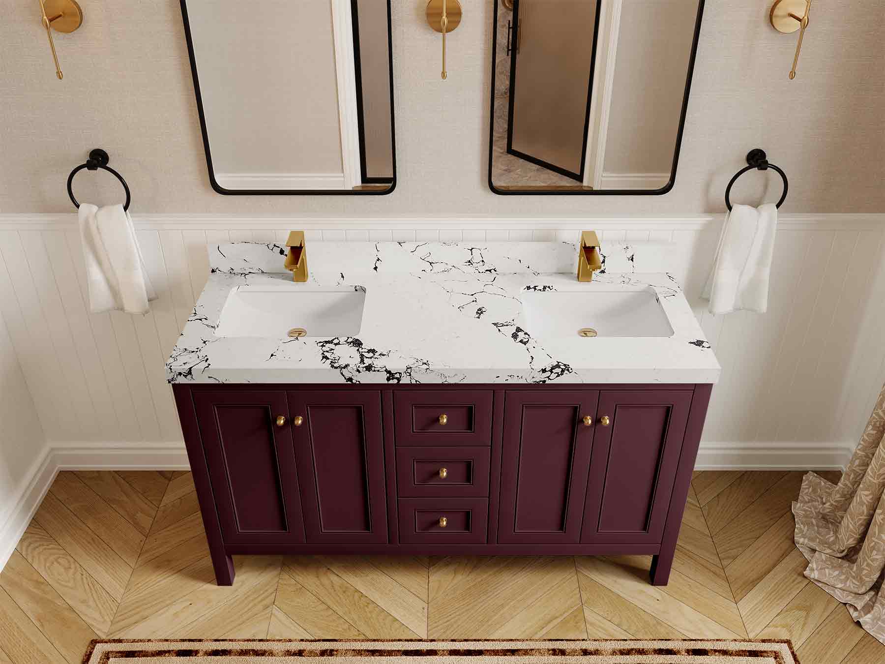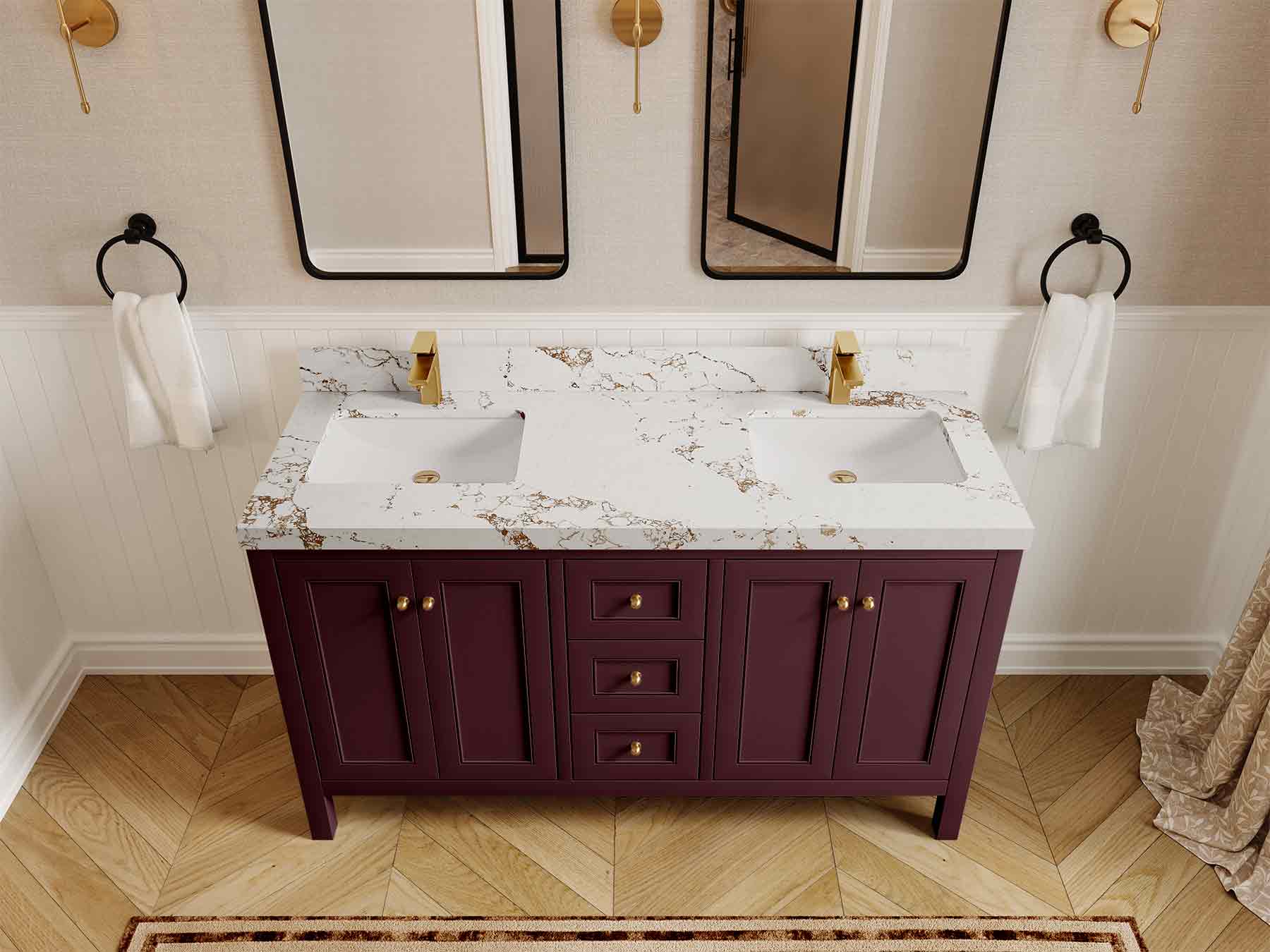 Vanity Countertops options: For Calacatta Laza Quartz, Empira White Quartz, Pure White Quartz, Palissandro Quartz we have 2 options Straight-Mitered Edge and Double Cove Edge; For Calacatta Nuvo Quartz, Carrara Marble, Carrara Quartz, Piatra Gray Quartz, Pearl Light Gray Quartz, Calacatta Black Quartz, Calacatta Gold Quartz, Calacatta Sienna Quartz, Calacatta Poanazzo Quartz, Venatino Quartz, Viola Brown Quartz, Viola Gold Quartz, Viola Night Quartz, Viola Biagio Quartz, Berkshire Brass Quartz, Frosty Carrara Quartz, Onyx Quartz we have Straight - Mitered Edge option.