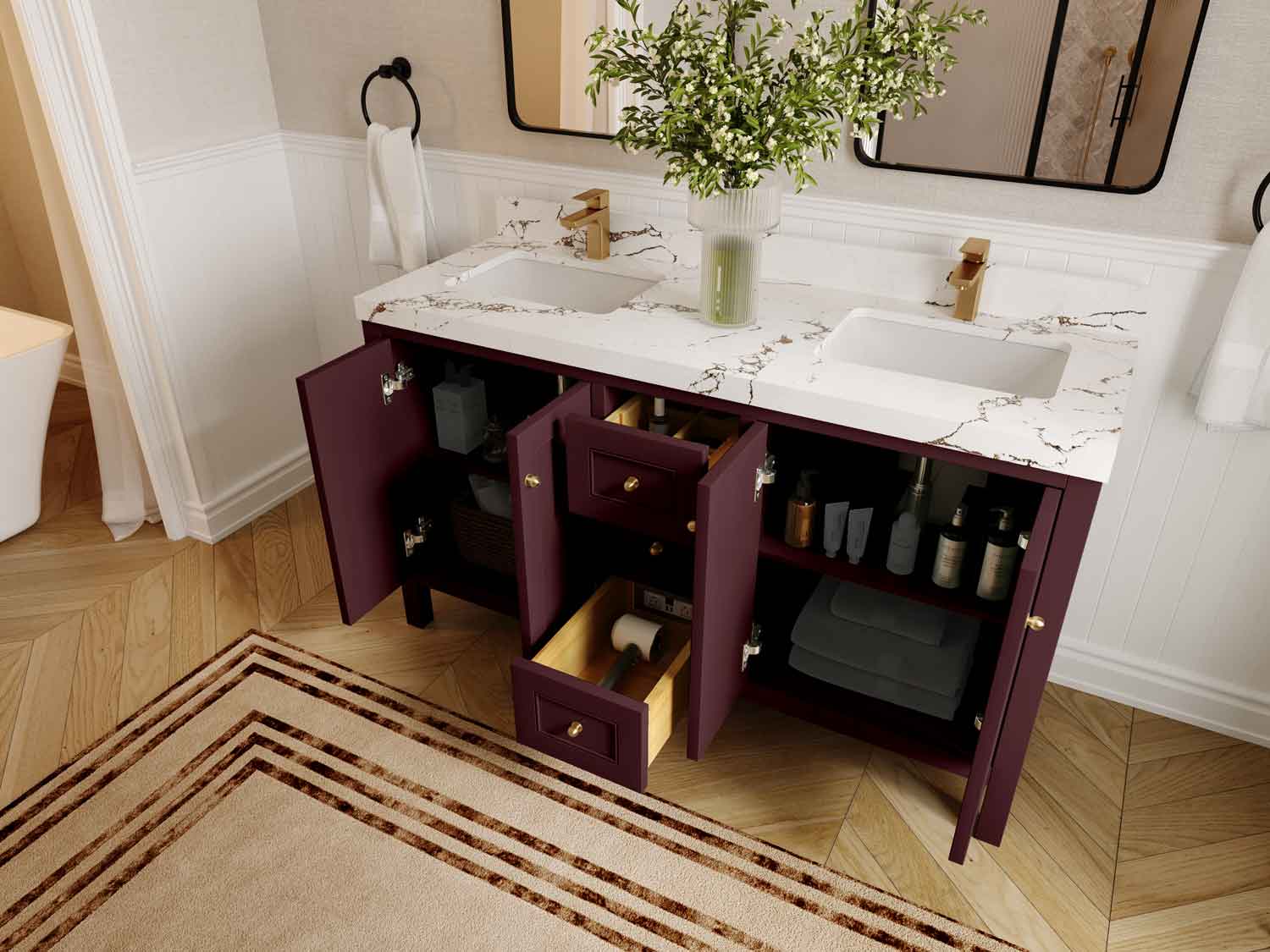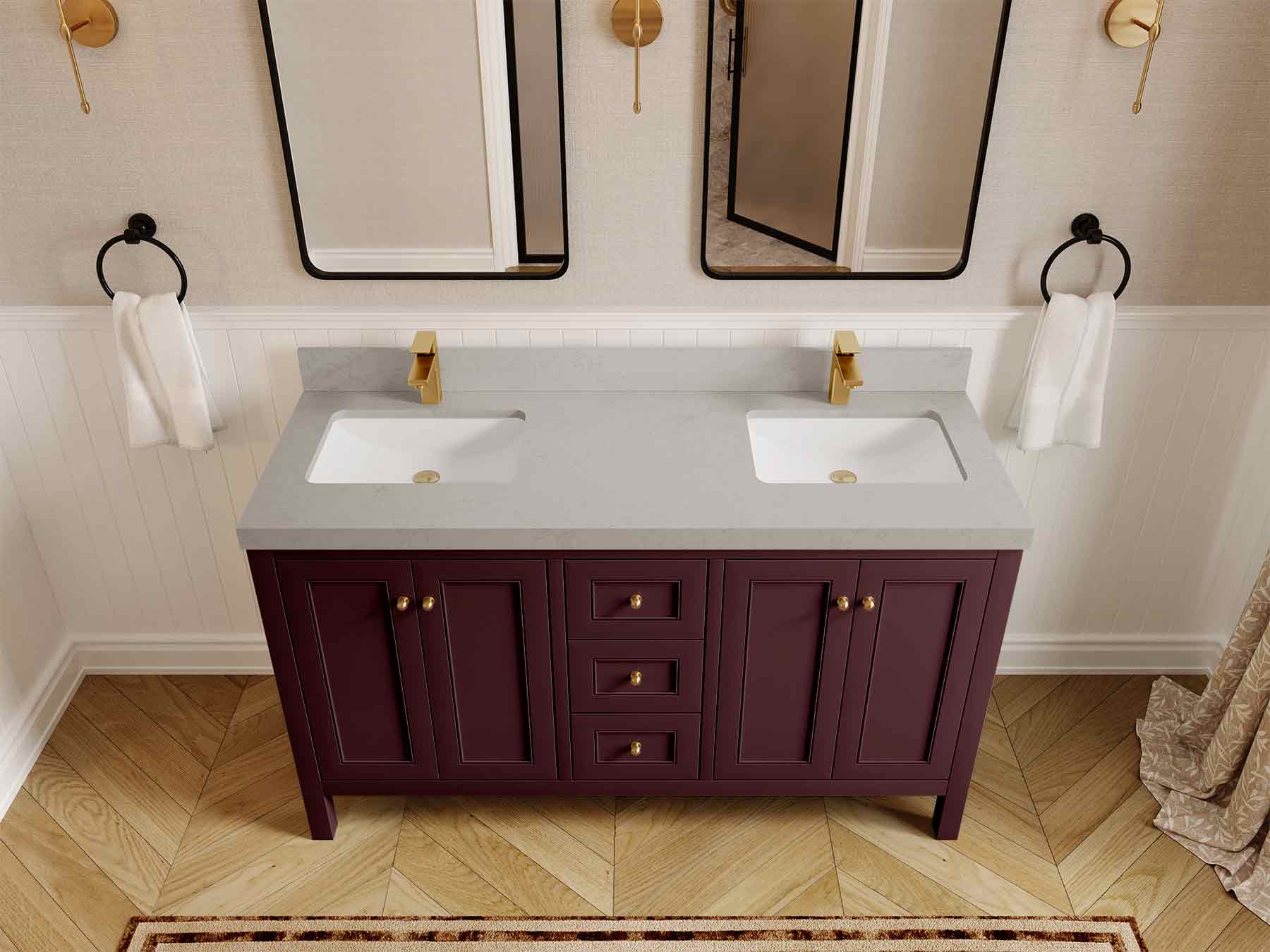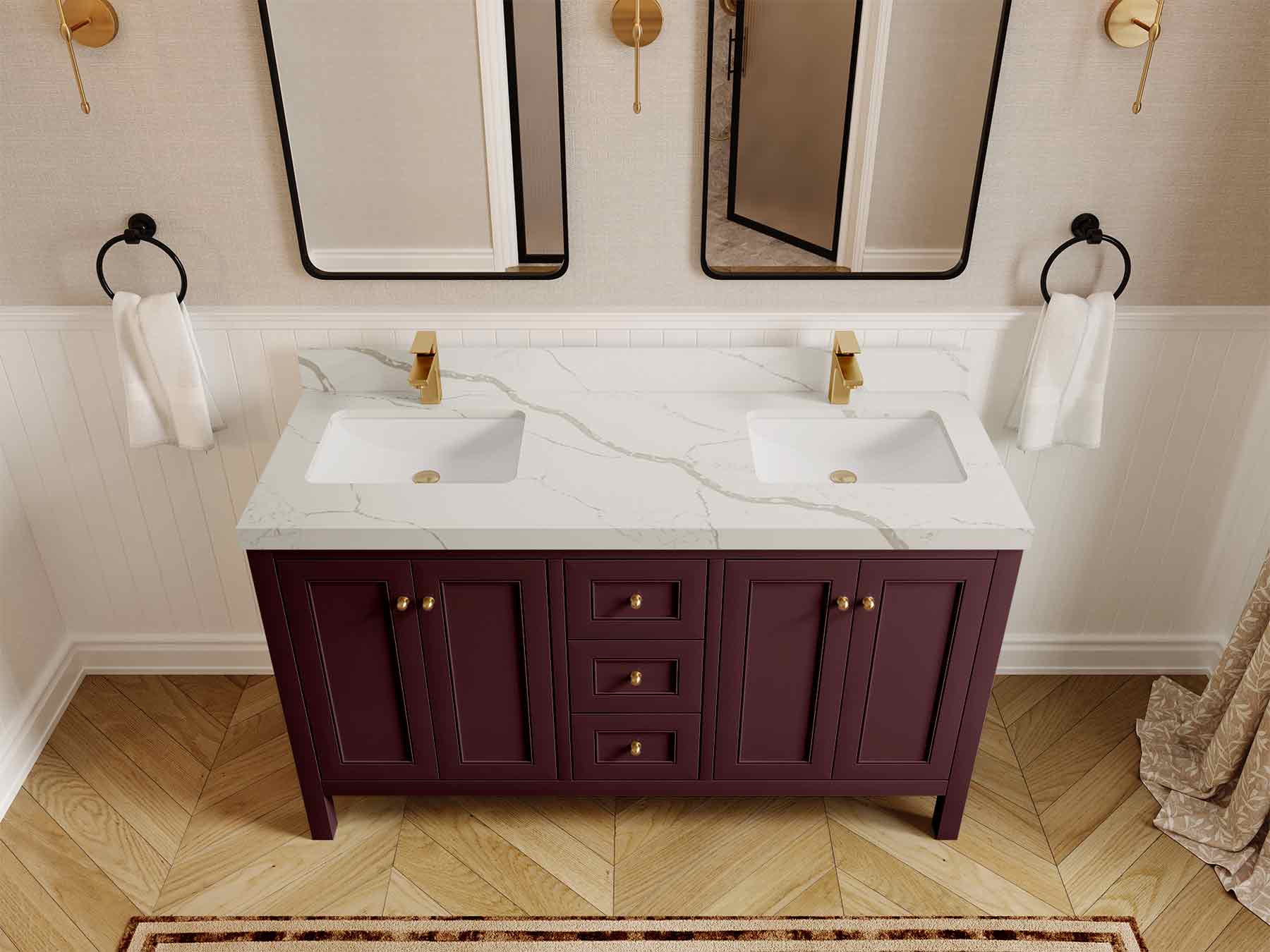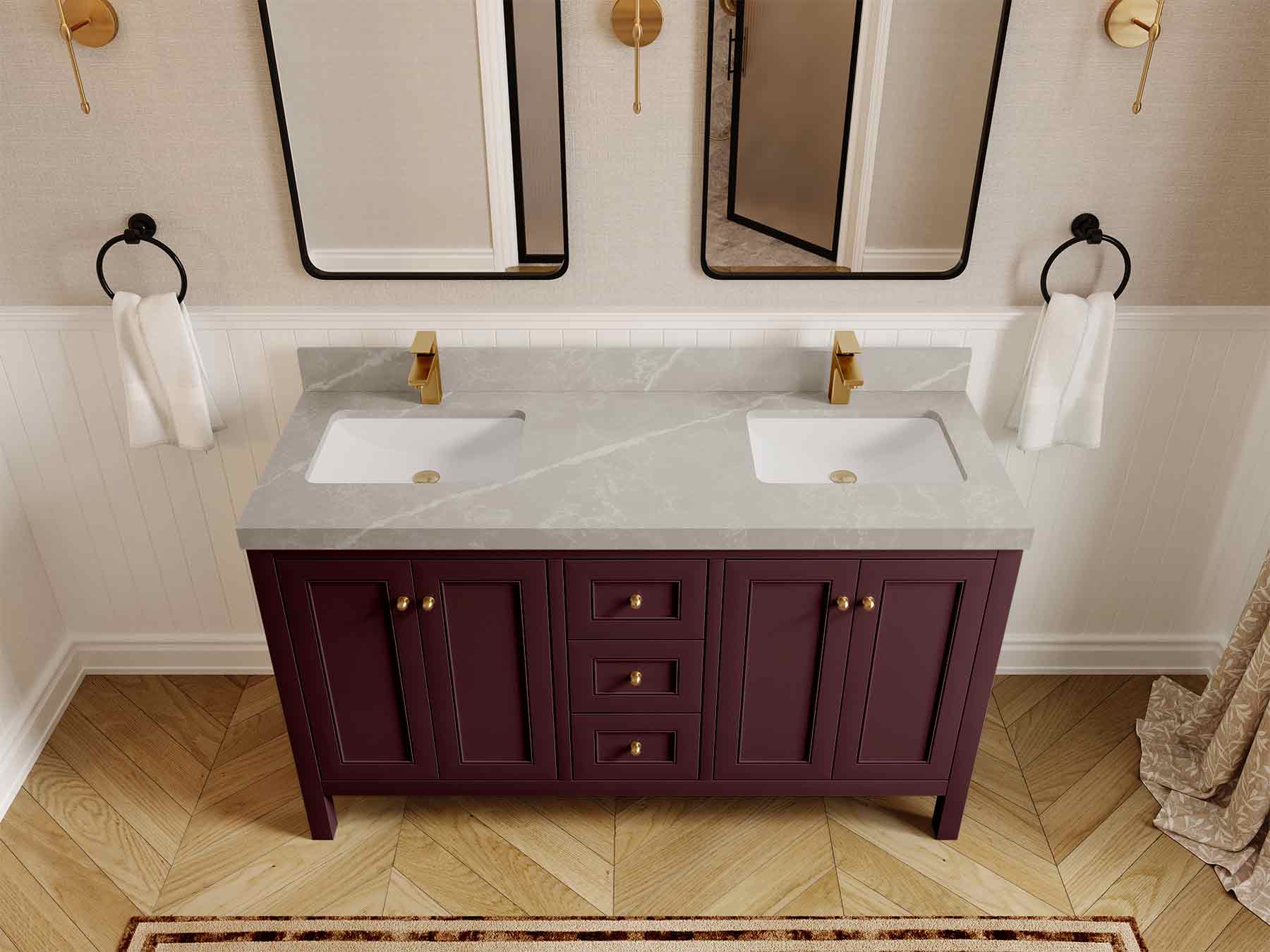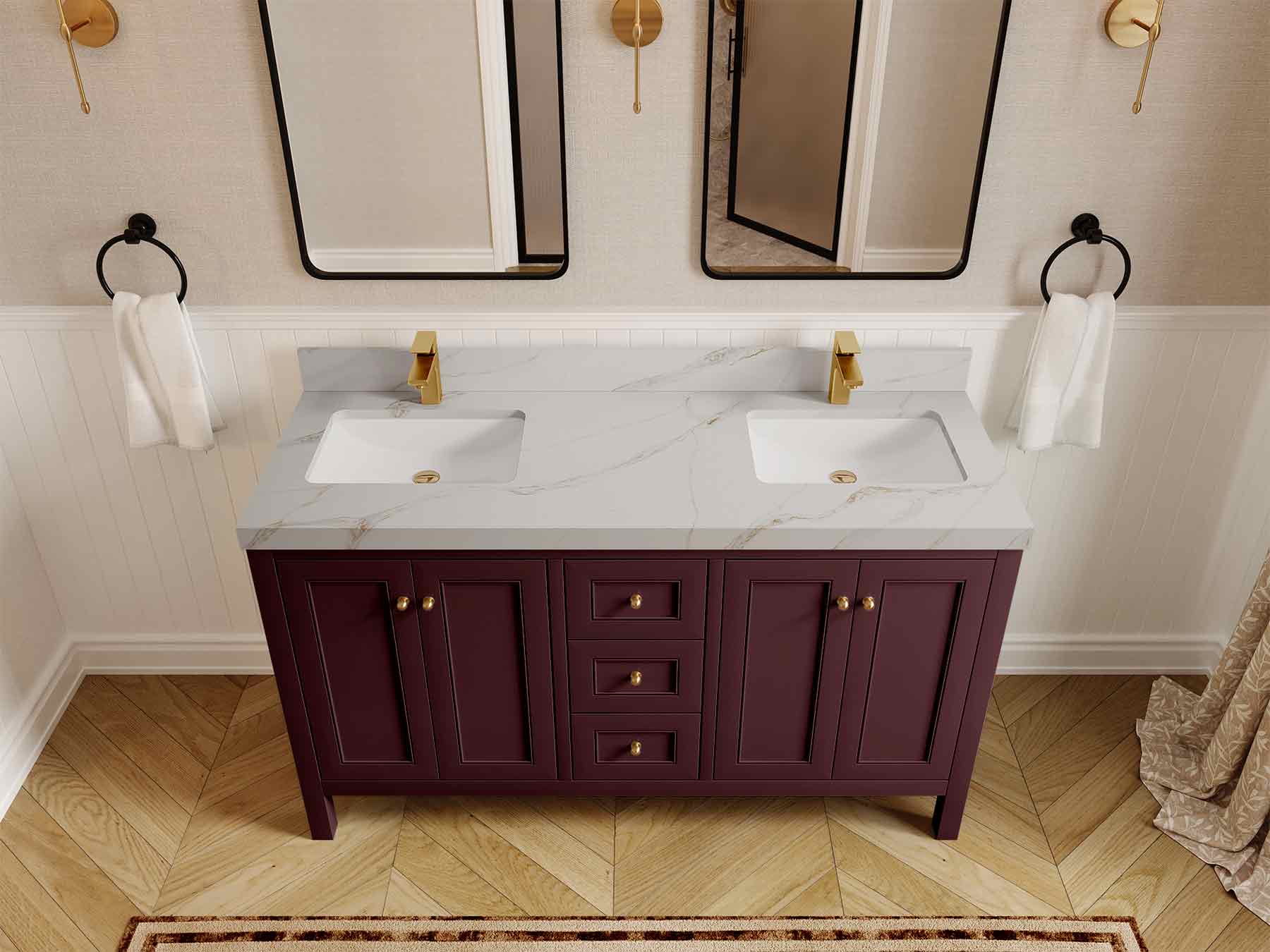 Vanity Countertops options: For Calacatta Laza Quartz, Empira White Quartz, Pure White Quartz, Palissandro Quartz we have 2 options Straight-Mitered Edge and Double Cove Edge; For Calacatta Nuvo Quartz, Carrara Marble, Carrara Quartz, Piatra Gray Quartz, Pearl Light Gray Quartz, Calacatta Black Quartz, Calacatta Gold Quartz, Calacatta Sienna Quartz, Calacatta Poanazzo Quartz, Venatino Quartz, Viola Brown Quartz, Viola Gold Quartz, Viola Night Quartz, Viola Biagio Quartz, Berkshire Brass Quartz, Frosty Carrara Quartz, Onyx Quartz we have Straight - Mitered Edge option.