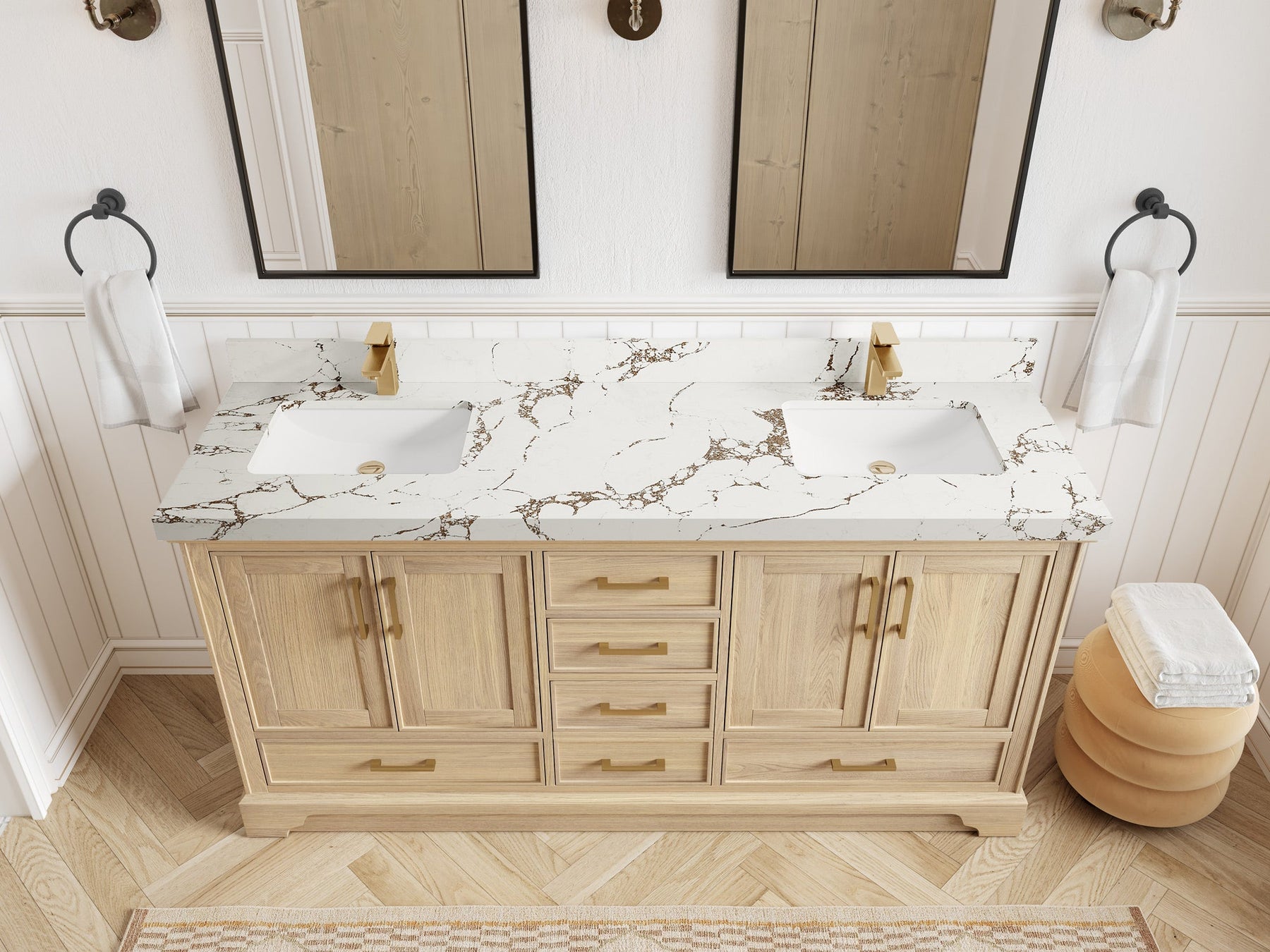 Vanity Countertops options: For Calacatta Laza Quartz, Empira White Quartz, Pure White Quartz we have 2 options Straight-Mitered Edge and Double Cove Edge; For Calacatta Nuvo Quartz, Carrara Marble, Carrara Quartz, Piatra Gray Quartz, Calacatta Black, Calacatta Gold, Venatino Quartz, Pearl Light Gray, Viola Brown, Viola Gold, Viola Night, Viola Biagio, Calacatta Sienna, Calacatta Poanazzo we only have Straight - Mitered Edge option.
