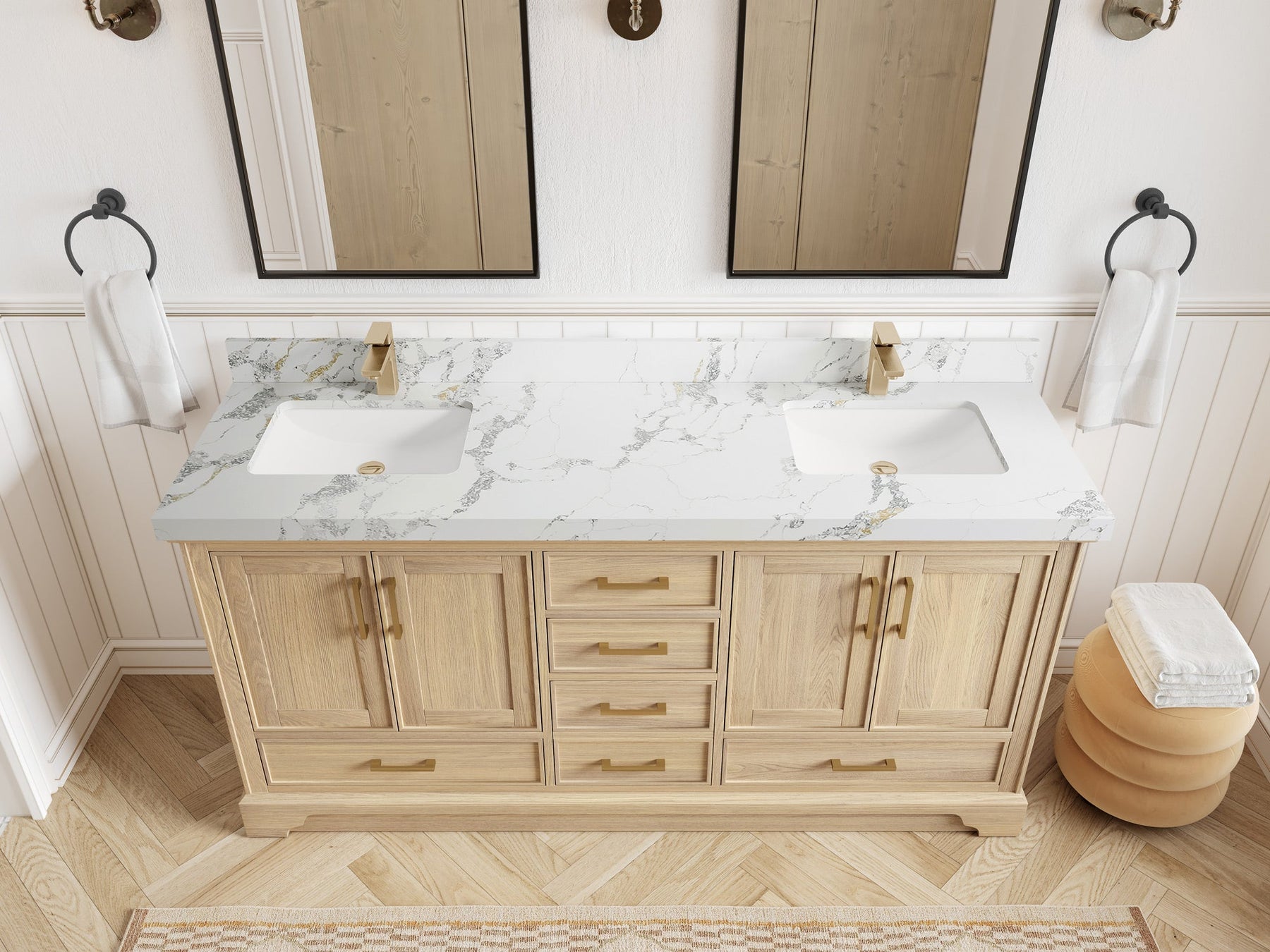 Faucet Hole(S): Comes with Single Faucet, 8 (in.) Widespread Faucet, Wall mount Faucets - Only Available for White Quartz and Carrara Quartz. (PLEASE ADD THIS CONFIGURATION UNDER COUNTERTOPS SECTION )