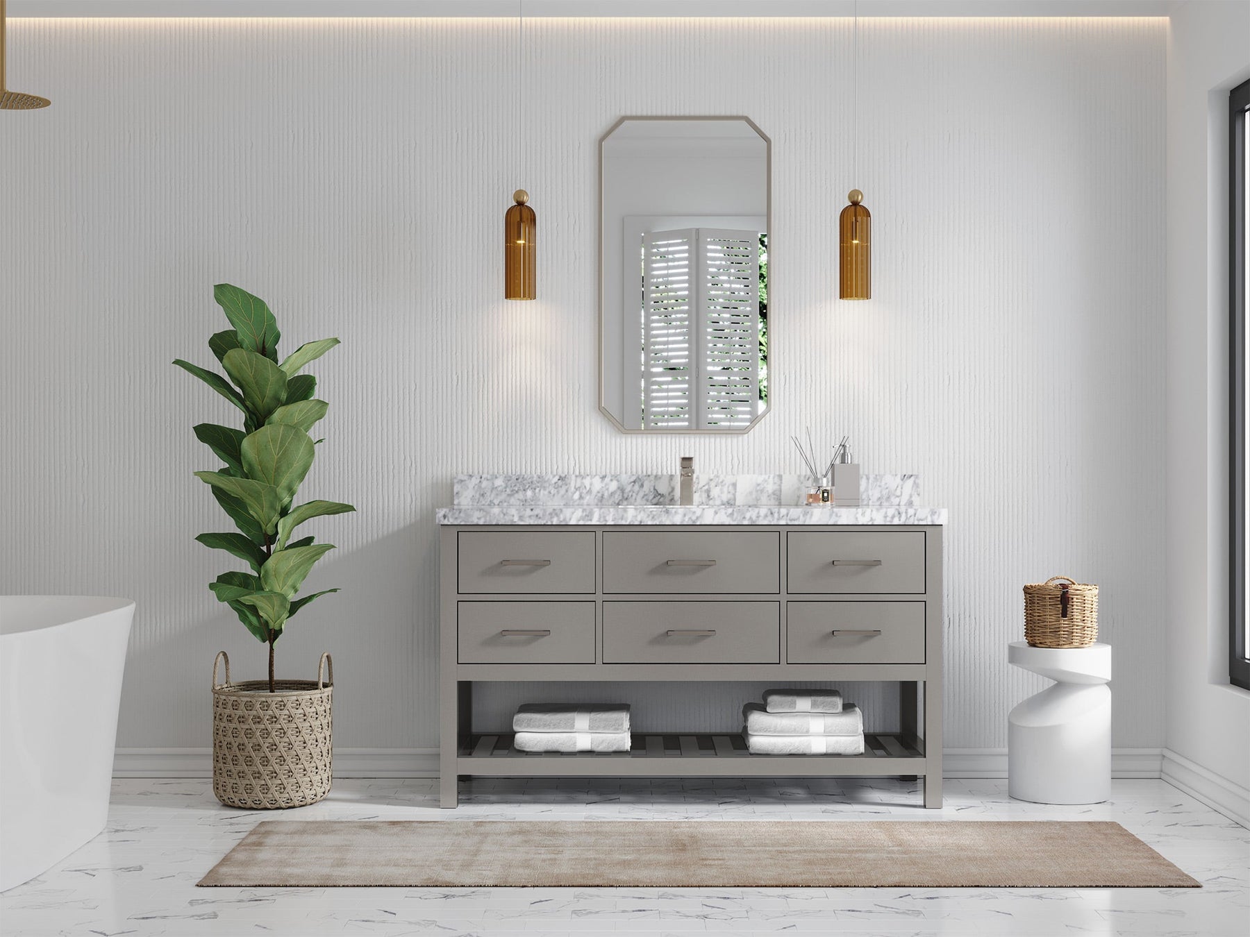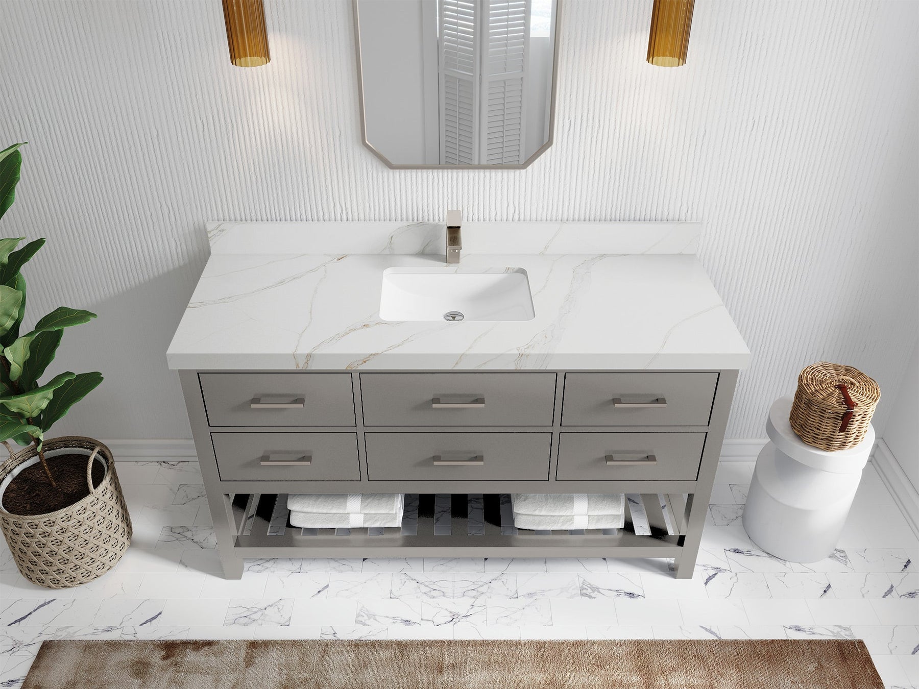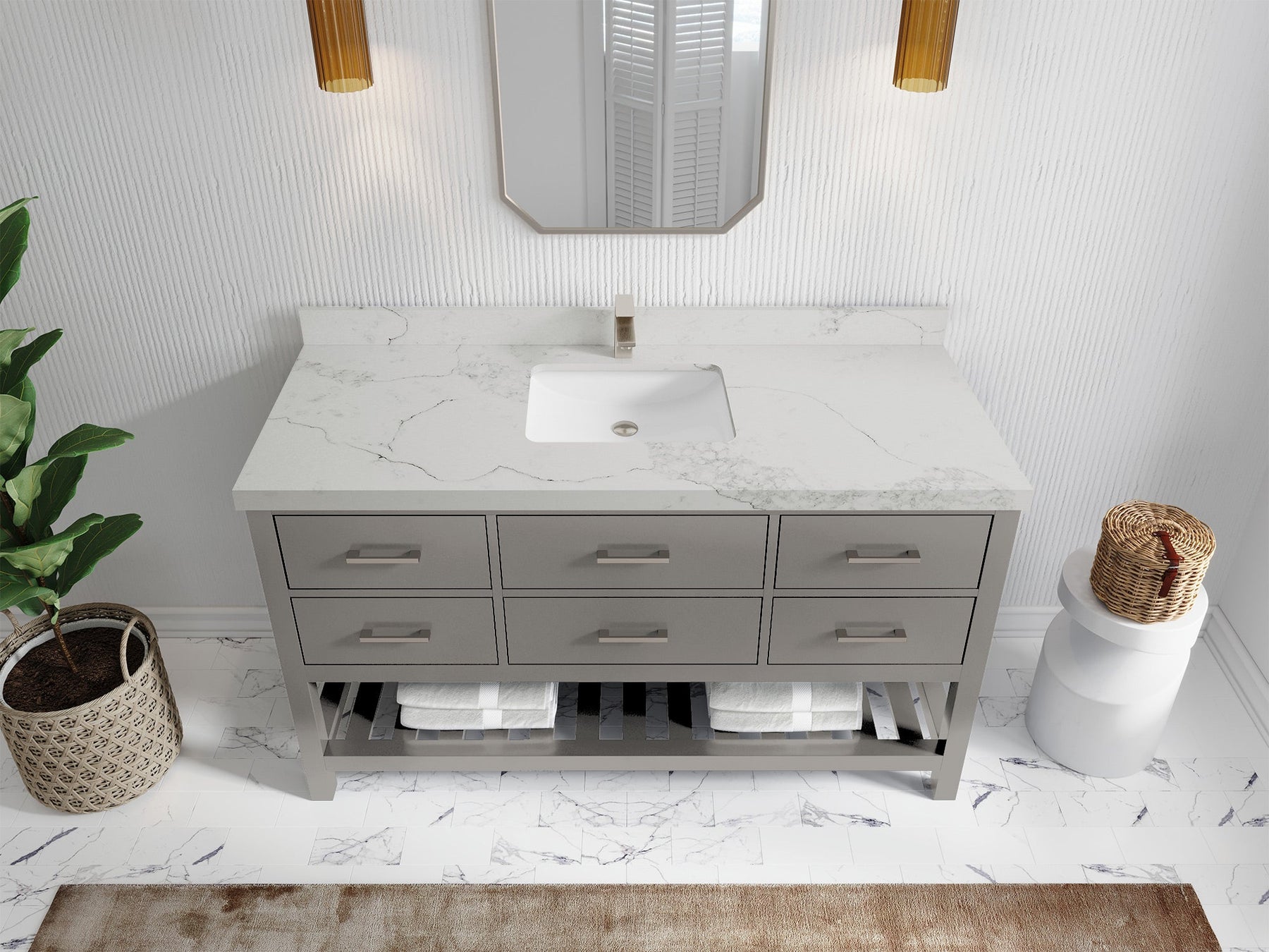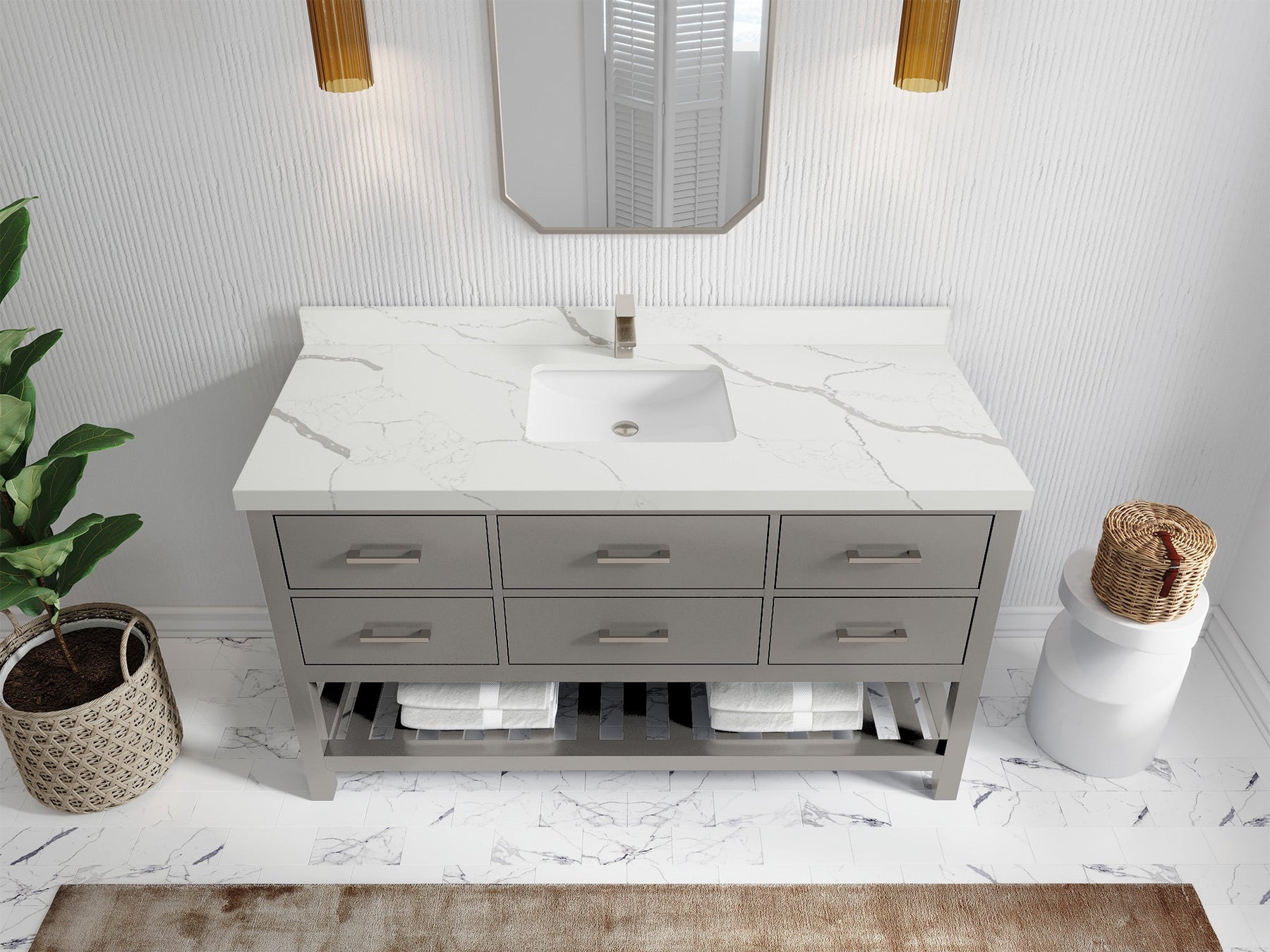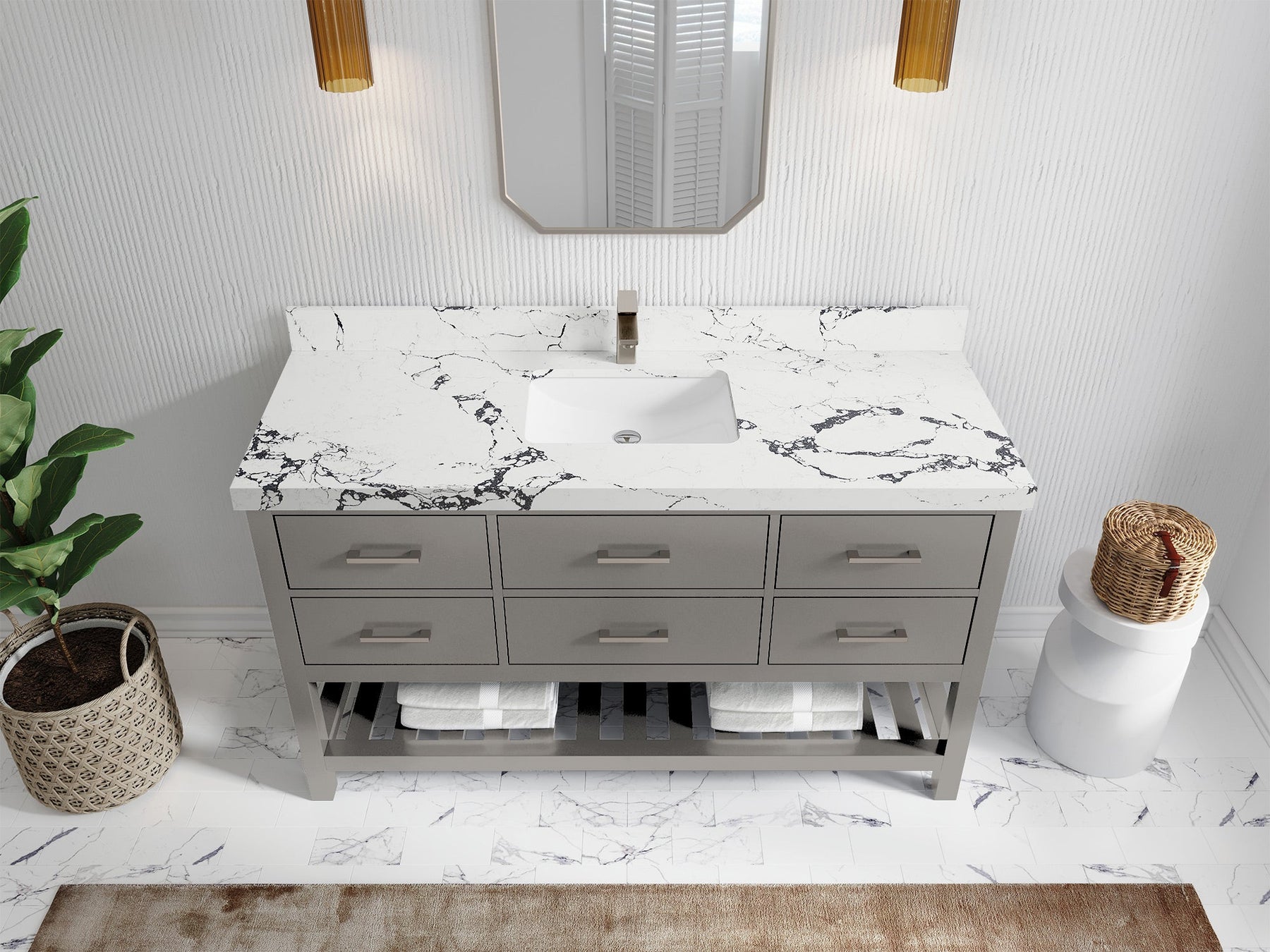 Faucet Hole(S): Comes with Single Faucet, 8 (in.) Widespread Faucet, Wall mount Faucets - Only Available for White Quartz and Carrara Quartz. (PLEASE ADD THIS CONFIGURATION UNDER COUNTERTOPS SECTION )
