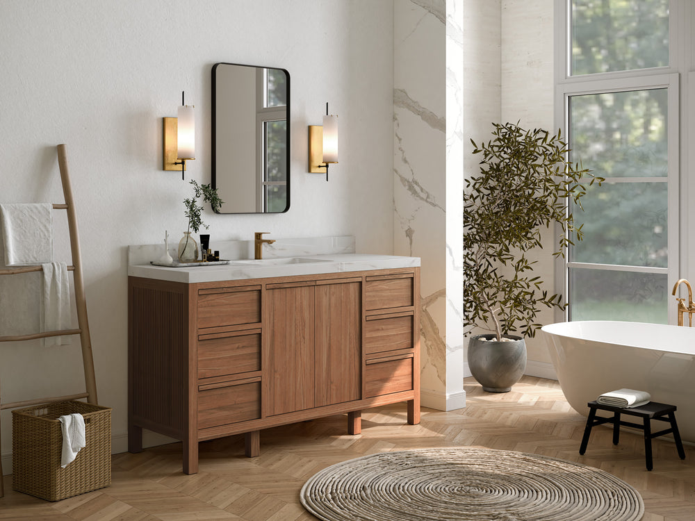 Catalina Teak 48 in W x 22 in D Free Standing Reeded Single Sink Bathroom Vanity