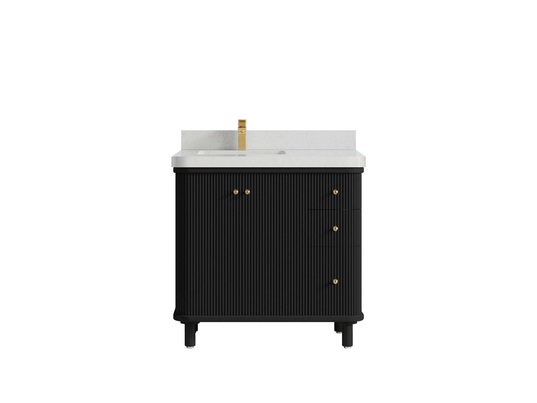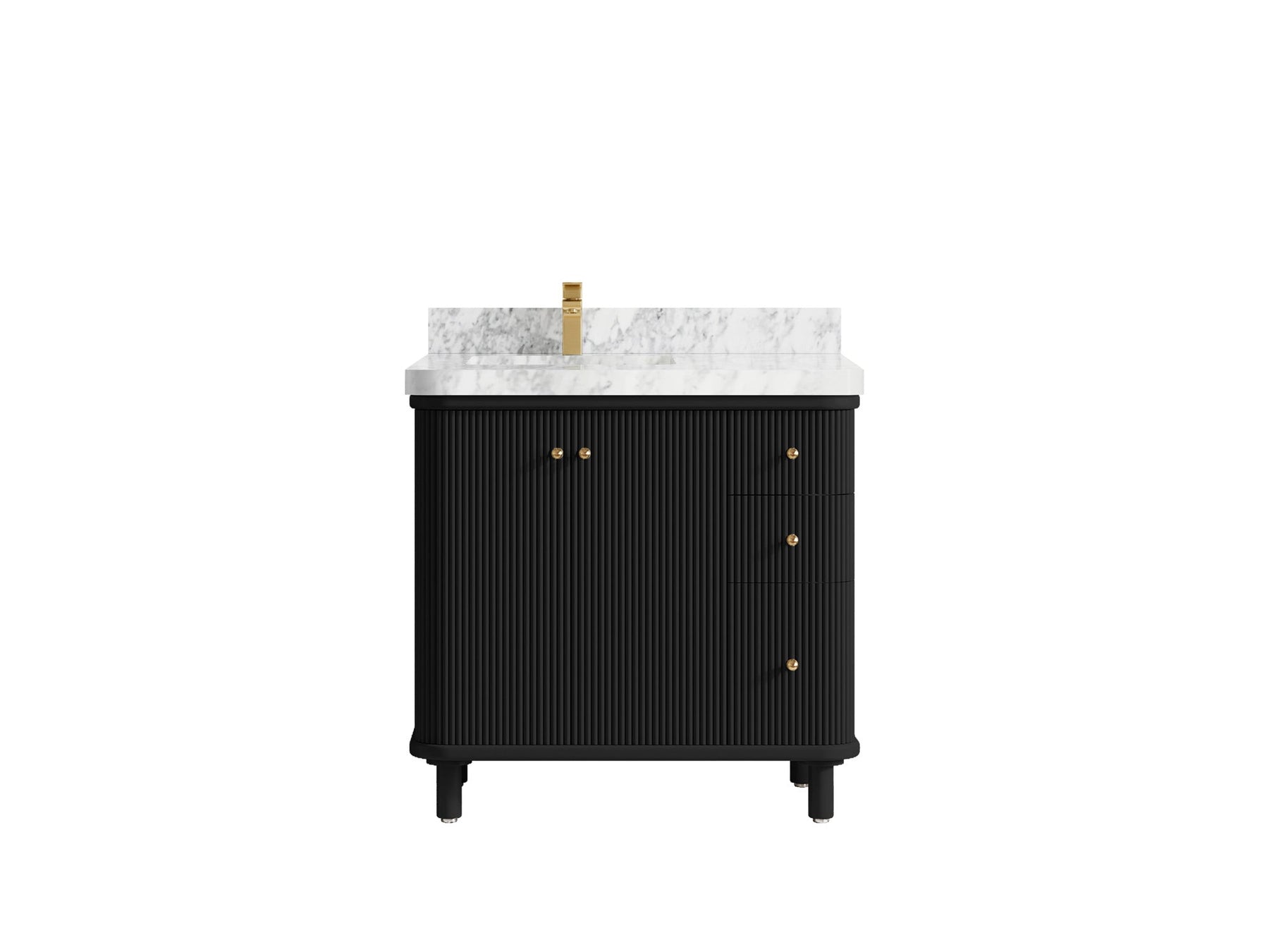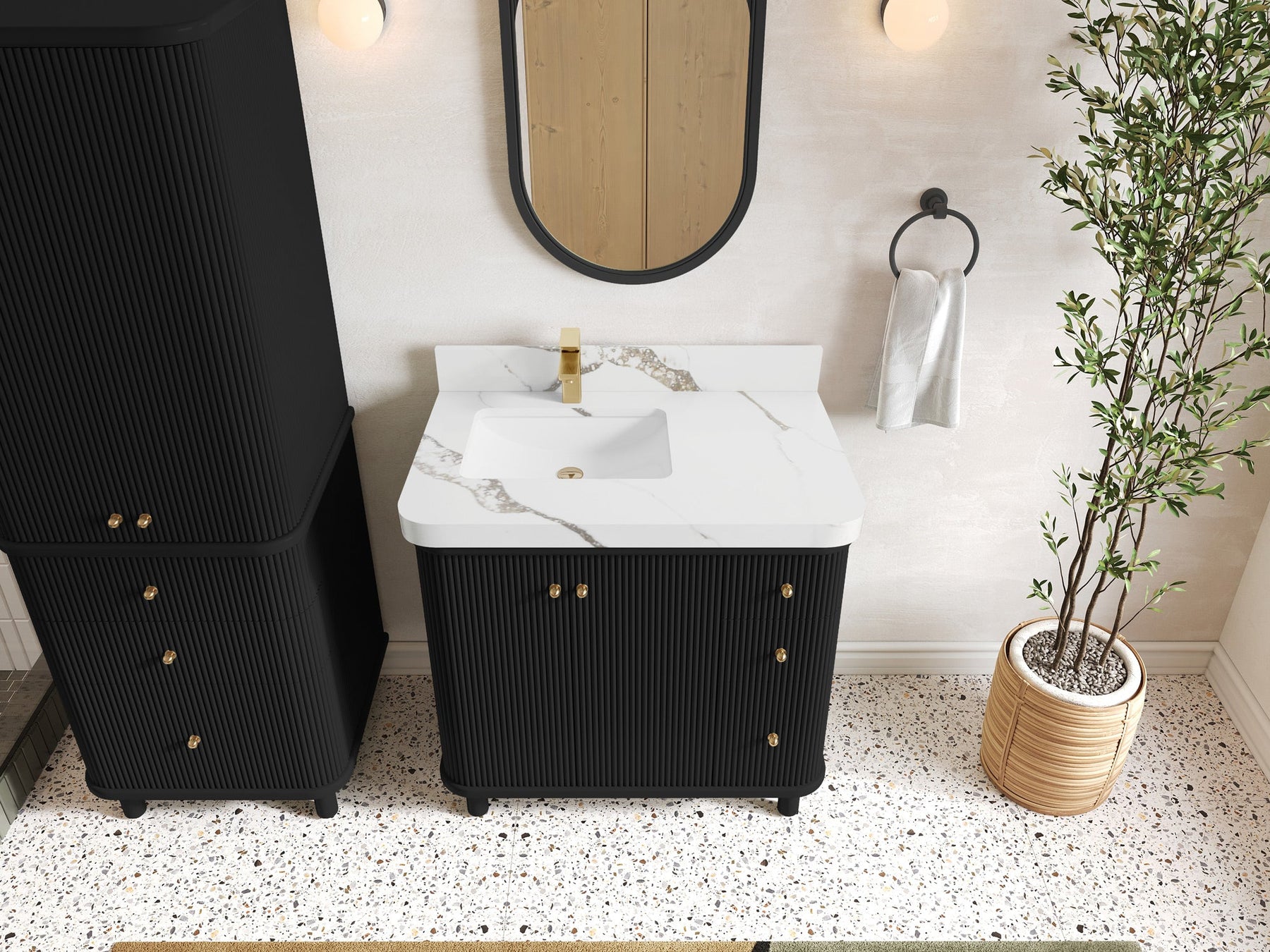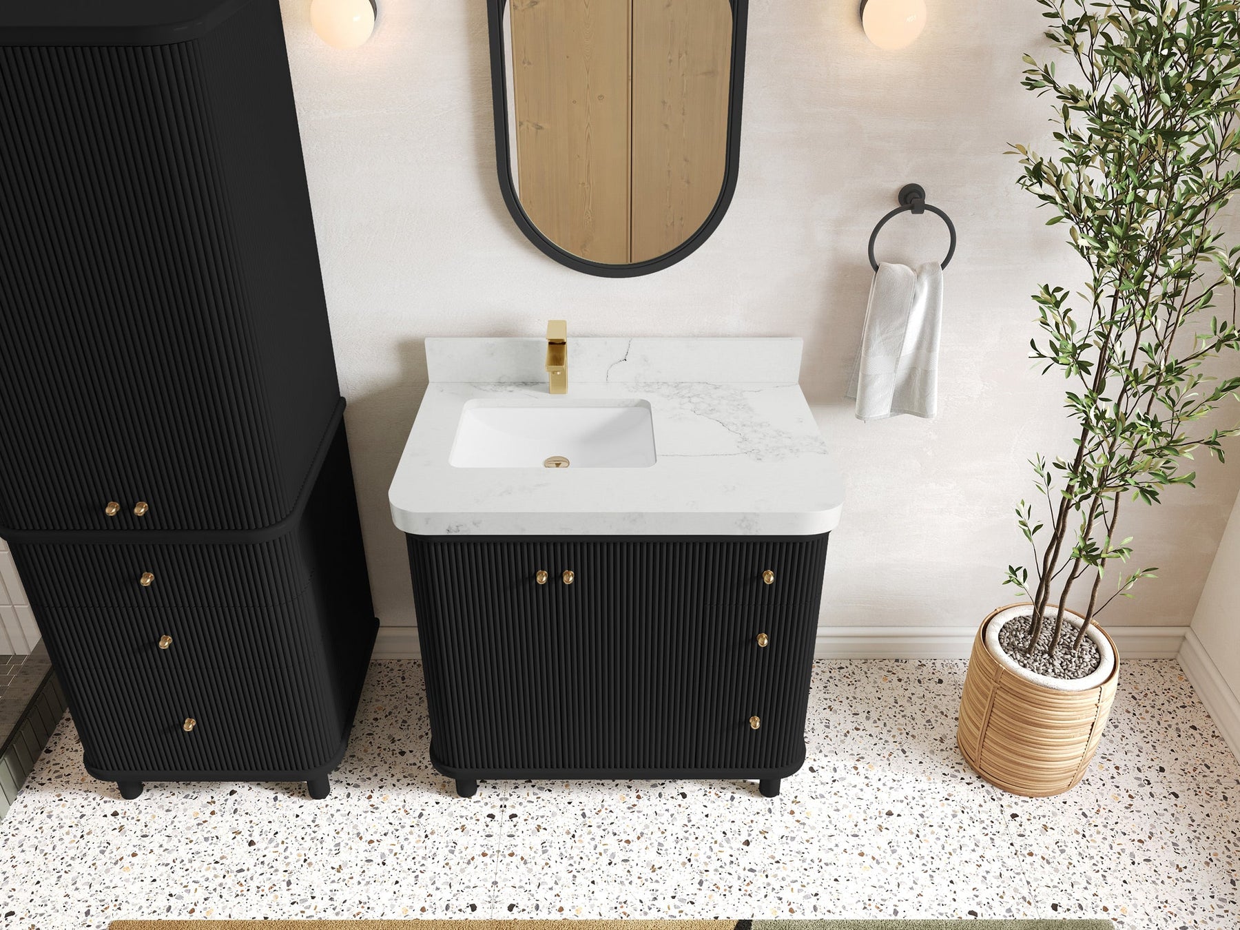 Vanity Countertops options: For Calacatta Laza Quartz, Empira White Quartz, Pure White Quartz, Palissandro Quartz, Calacatta Nuvo Quartz, Carrara Quartz, Carrara Marble, Calacatta Gold Quartz, Calacatta Sienna Quartz we have Straight - Mitered Edge option.
