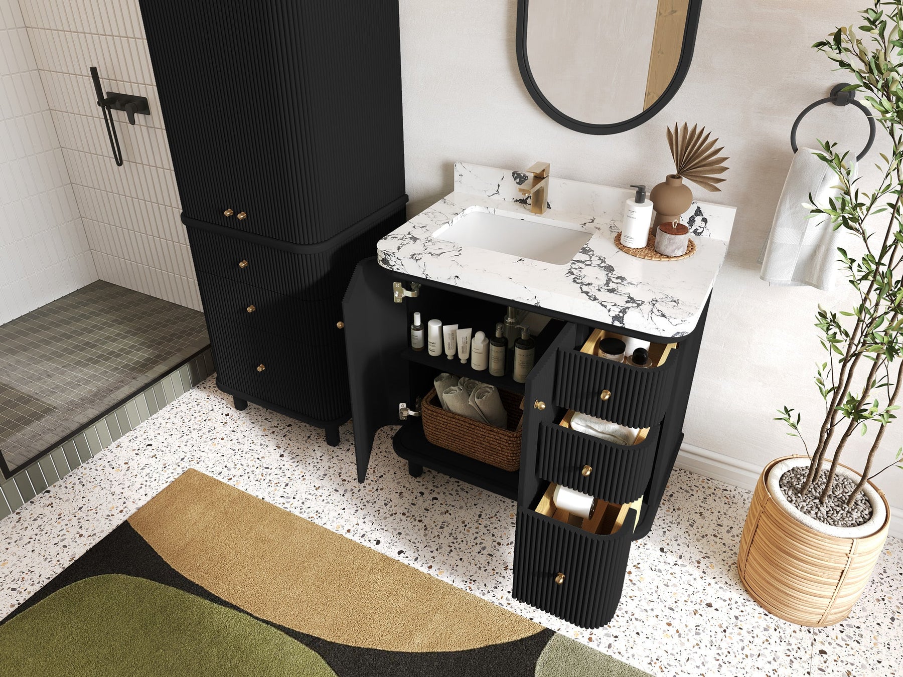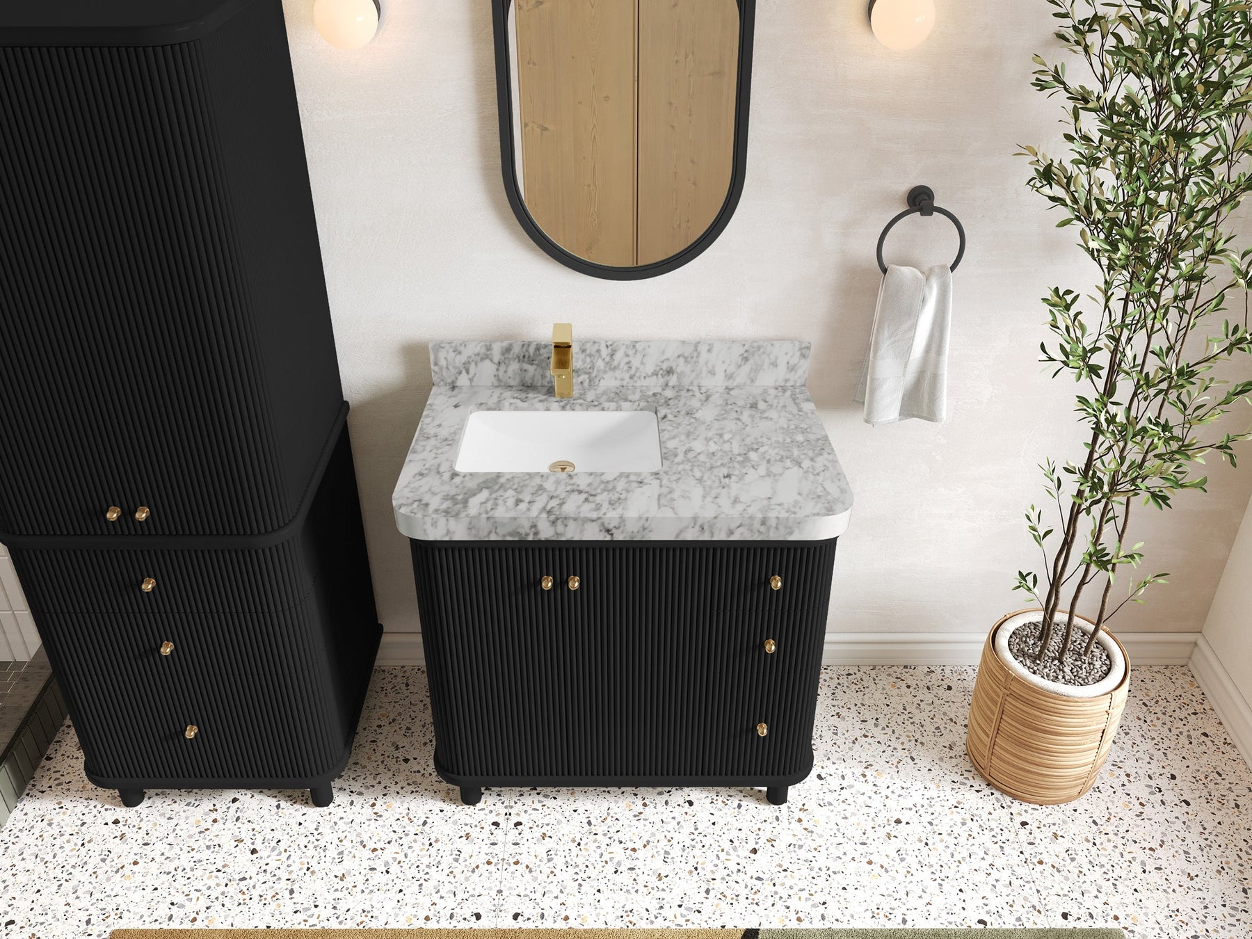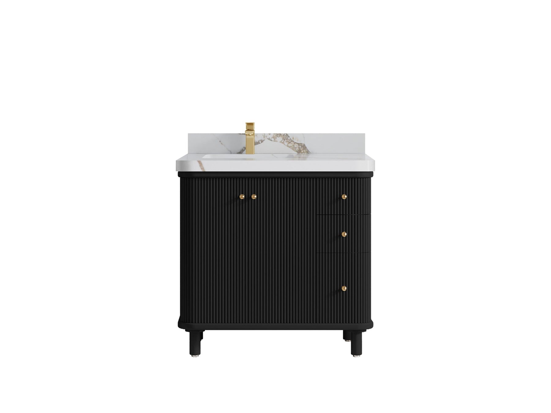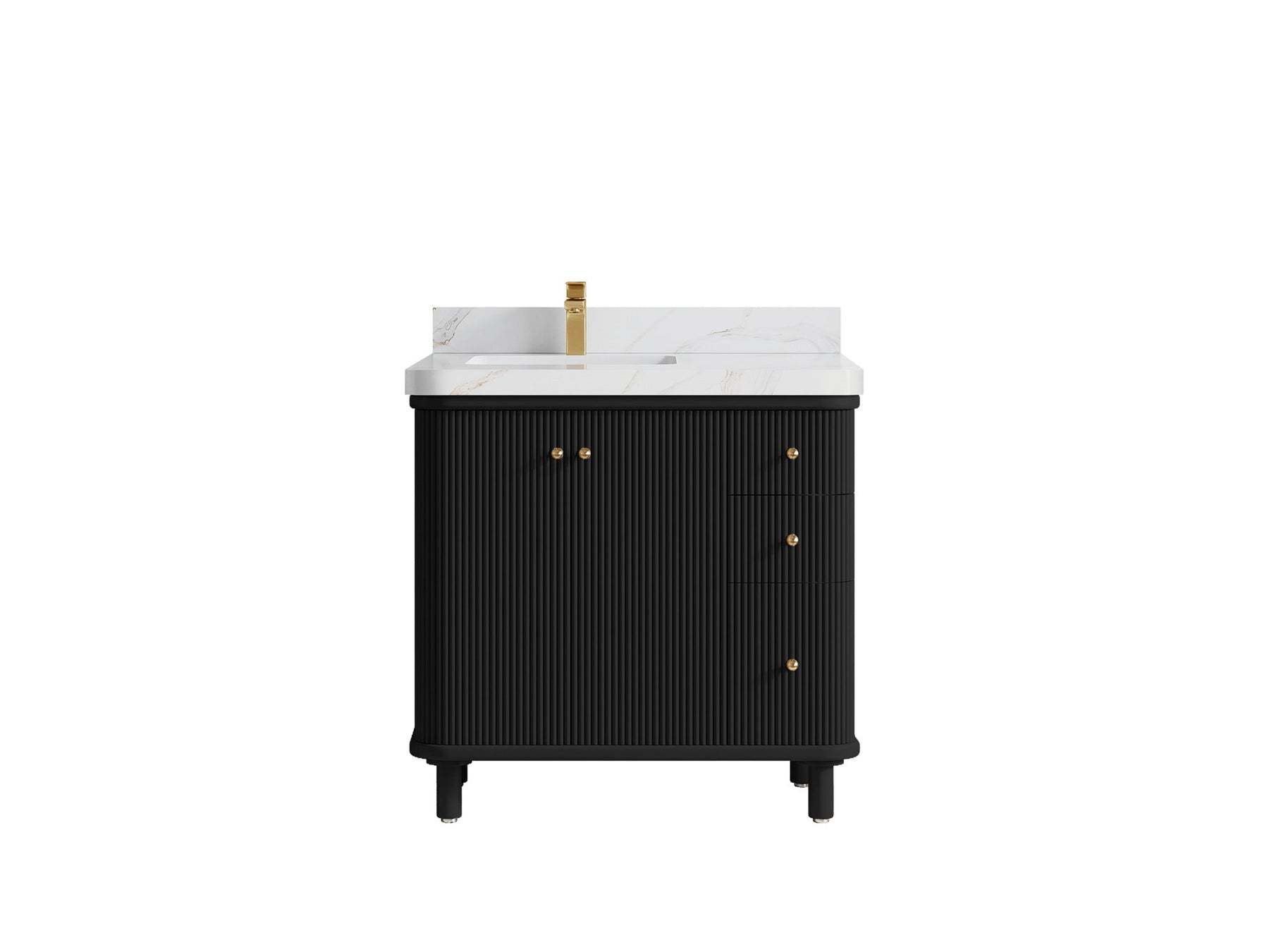 Vanity Countertops options: For Calacatta Laza Quartz, Empira White Quartz, Pure White Quartz, Palissandro Quartz, Calacatta Nuvo Quartz, Carrara Quartz, Carrara Marble, Calacatta Gold Quartz, Calacatta Sienna Quartz we have Straight - Mitered Edge option.