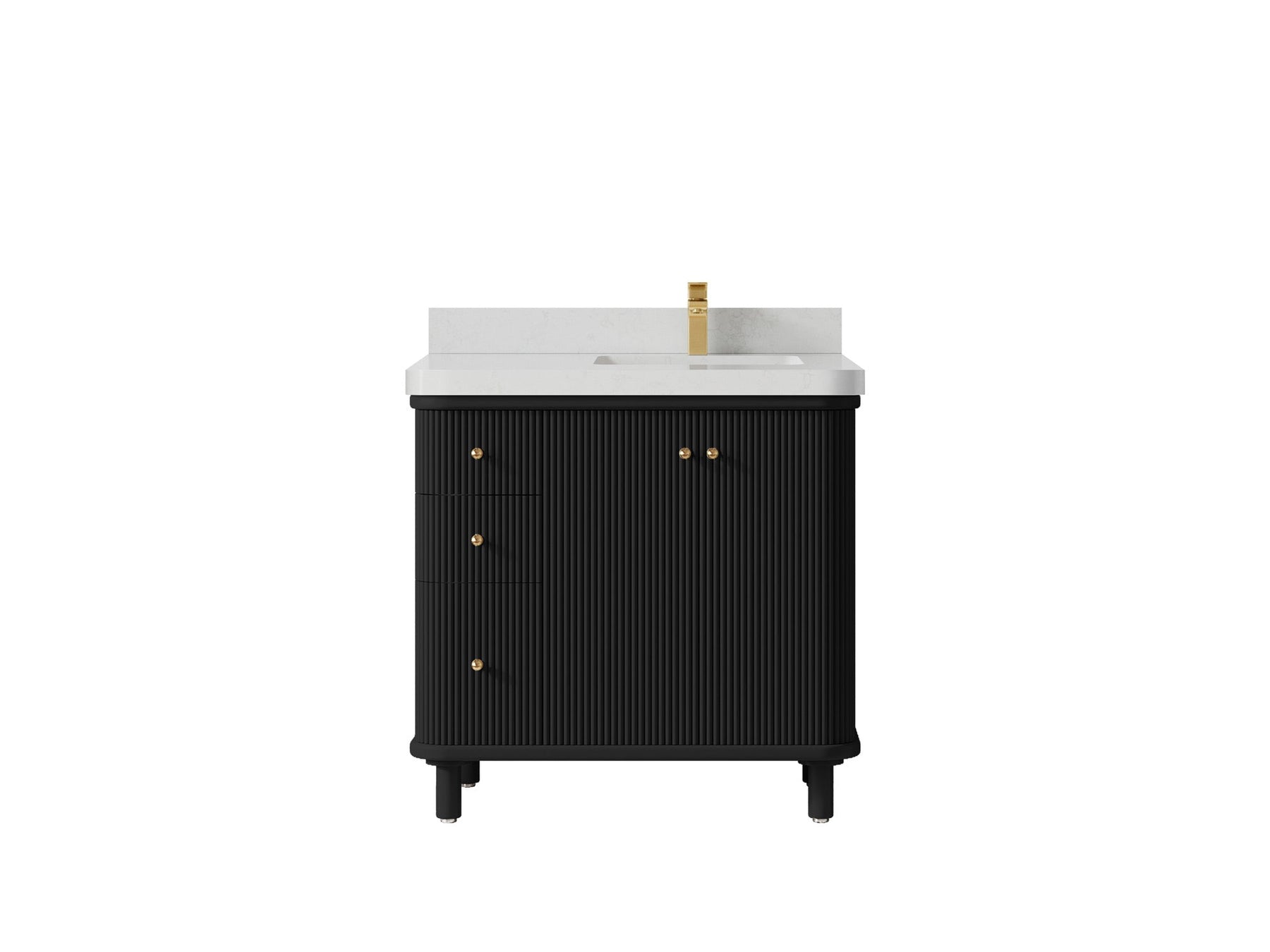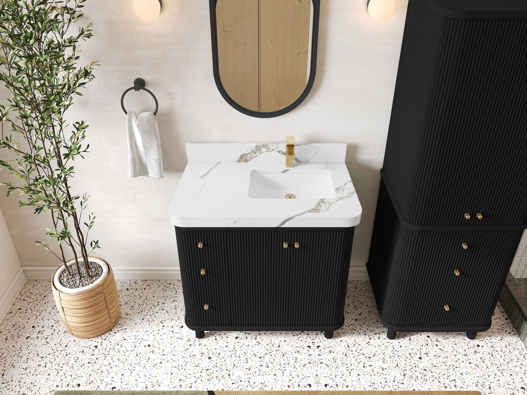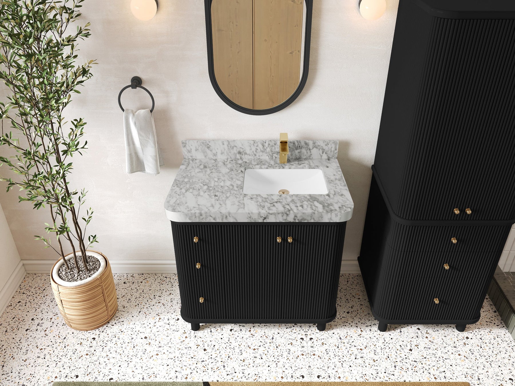 Vanity Countertops options: For Calacatta Laza Quartz, Empira White Quartz, Pure White Quartz, Palissandro Quartz, Calacatta Nuvo Quartz, Carrara Quartz, Carrara Marble, Calacatta Gold Quartz, Calacatta Sienna Quartz we have Straight - Mitered Edge option.