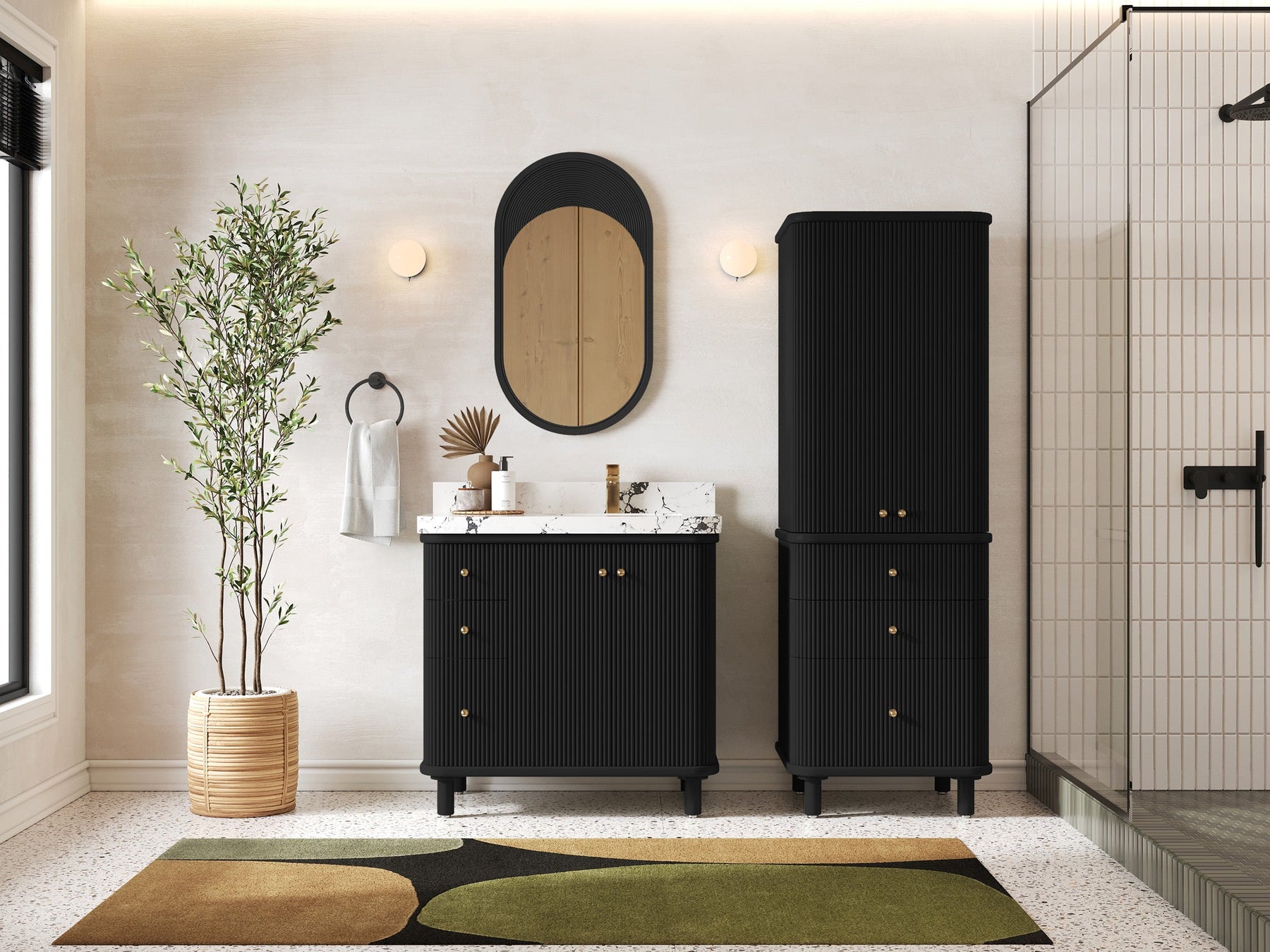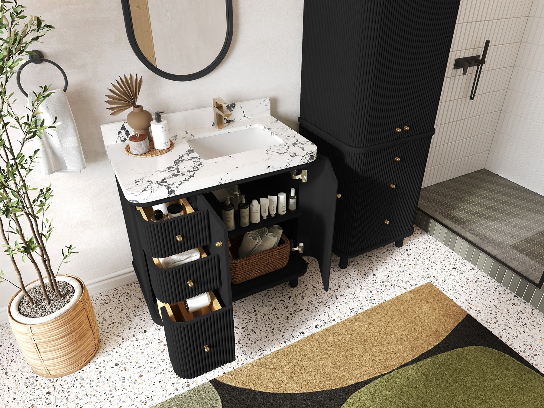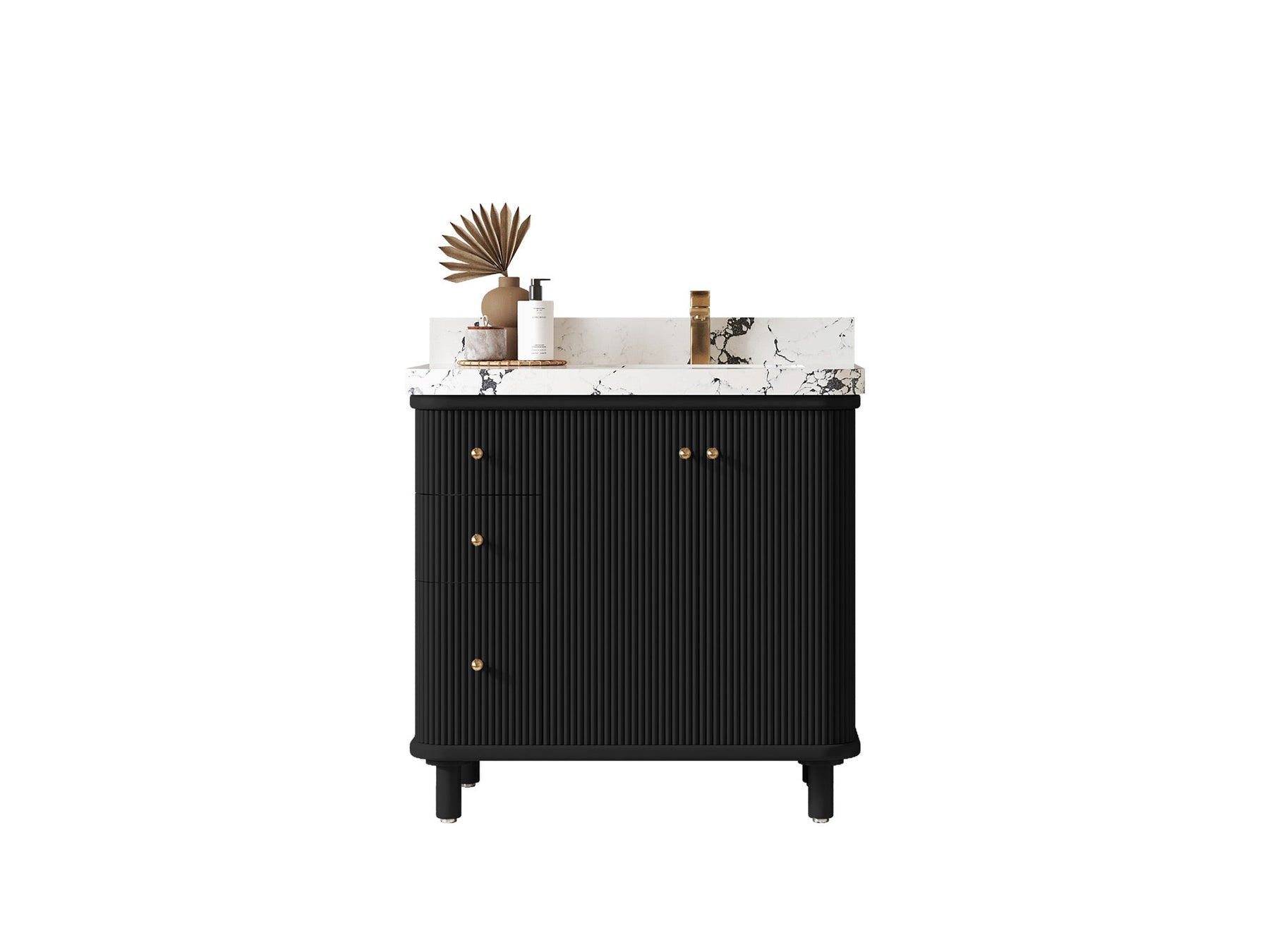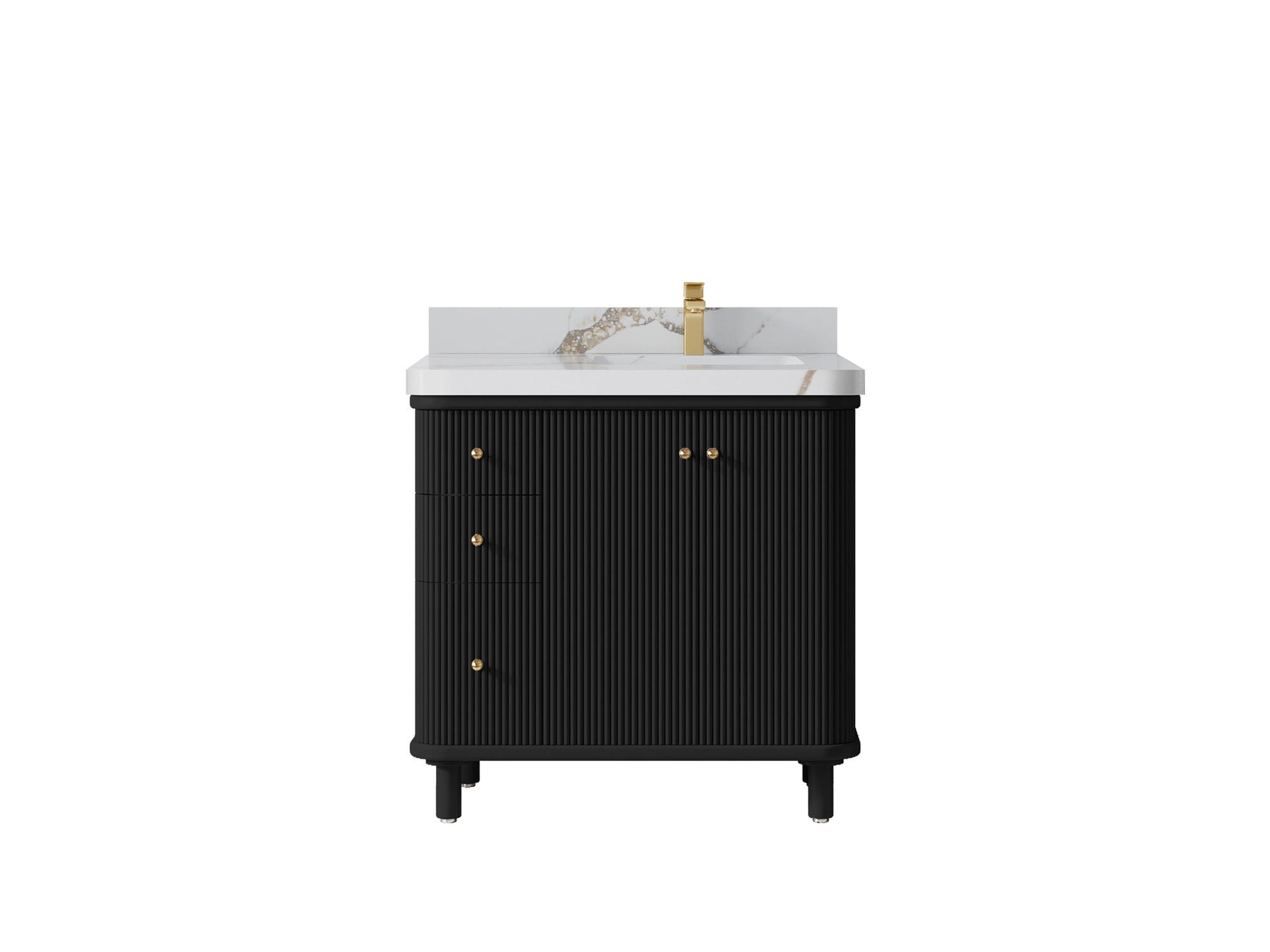 Vanity Countertops options: For Calacatta Laza Quartz, Empira White Quartz, Pure White Quartz, Palissandro Quartz, Calacatta Nuvo Quartz, Carrara Quartz, Carrara Marble, Calacatta Gold Quartz, Calacatta Sienna Quartz we have Straight - Mitered Edge option.