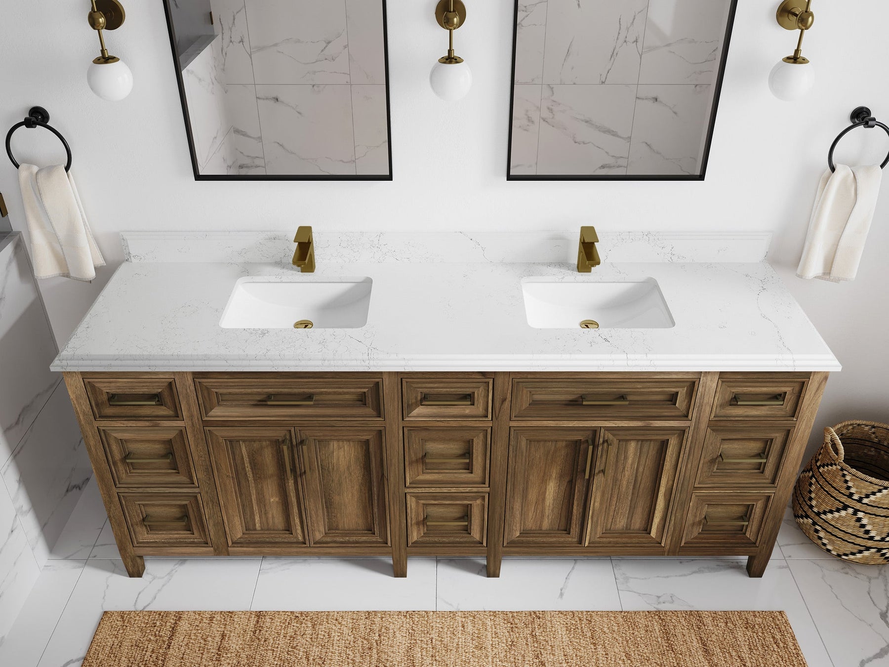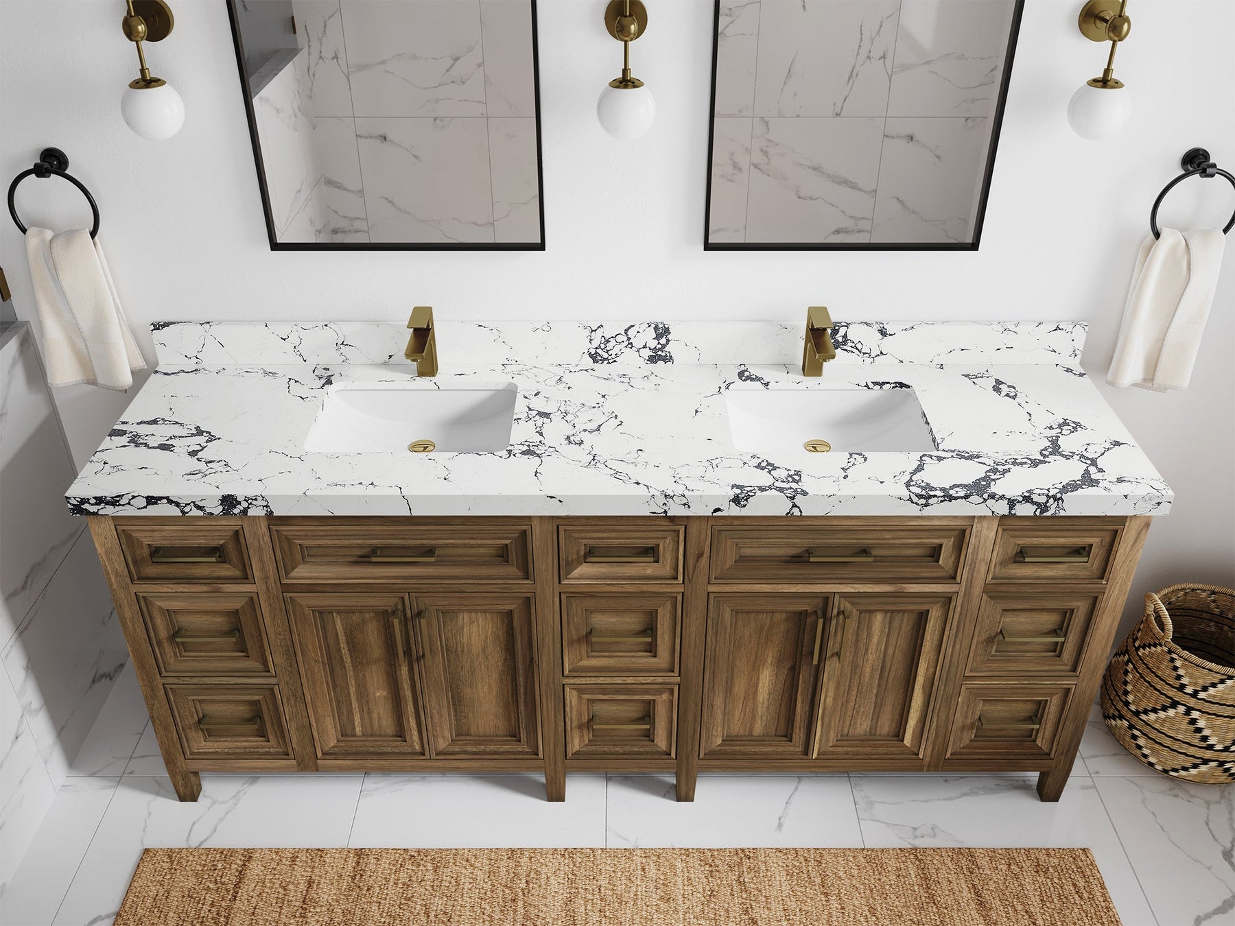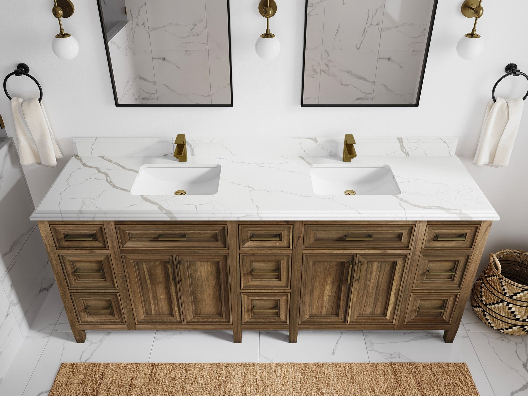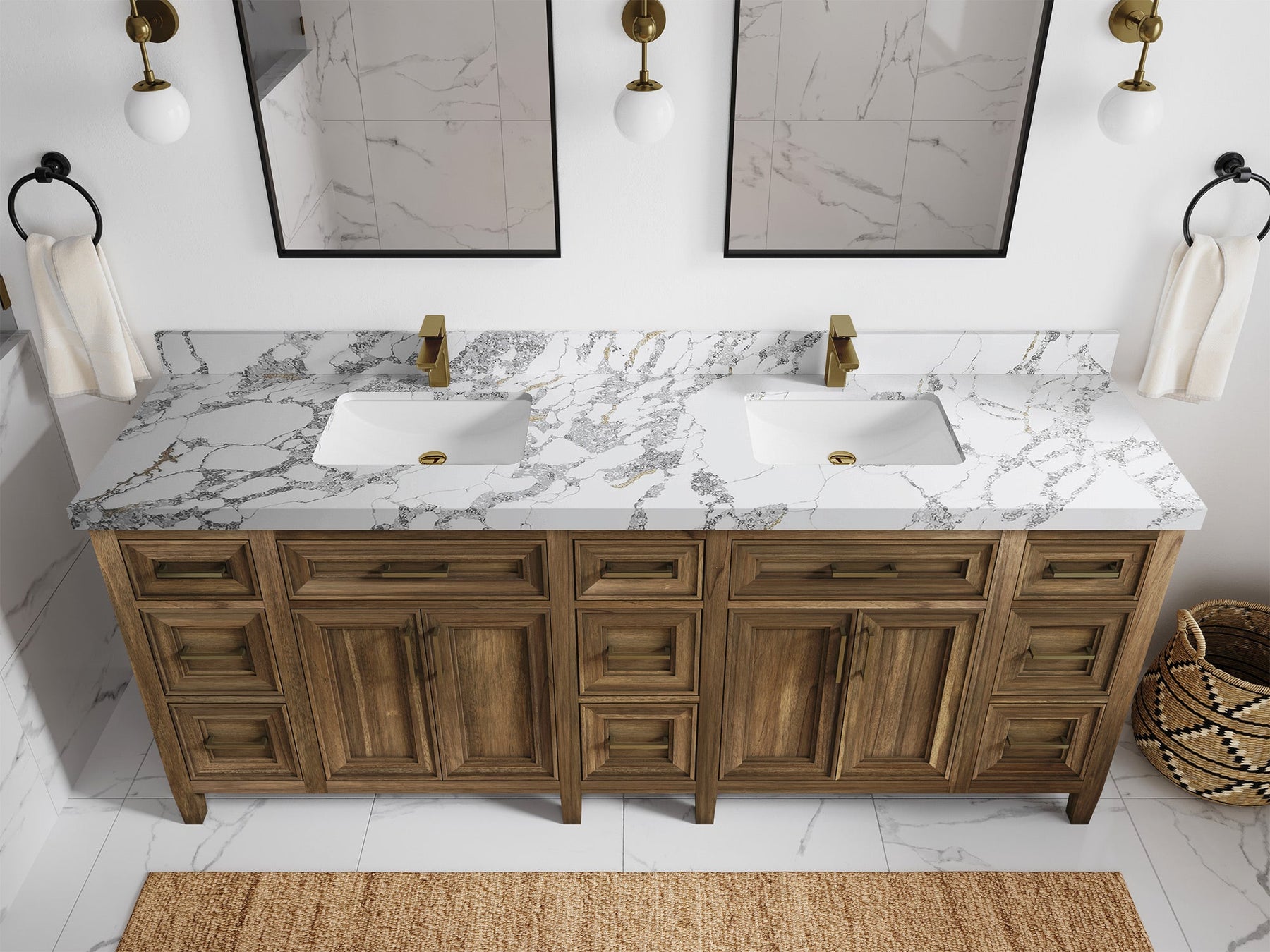 Vanity Countertops options: For Calacatta Laza Quartz, Empira White Quartz, Pure White Quartz we have 2 options Straight-Mitered Edge & Double Cove Edge, For Calacatta Black Quartz, Calacatta Gold Quartz, Calacatta Nuvo Quartz, Carrara Marble, Carrara Quartz, Pearl Light Gray Quartz, Piatra Gray Quartz, Venatino Quartz, and Light Concrete Gray Quartz we only have Straight - Mitered Edge option.
